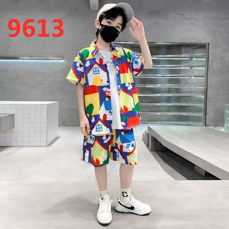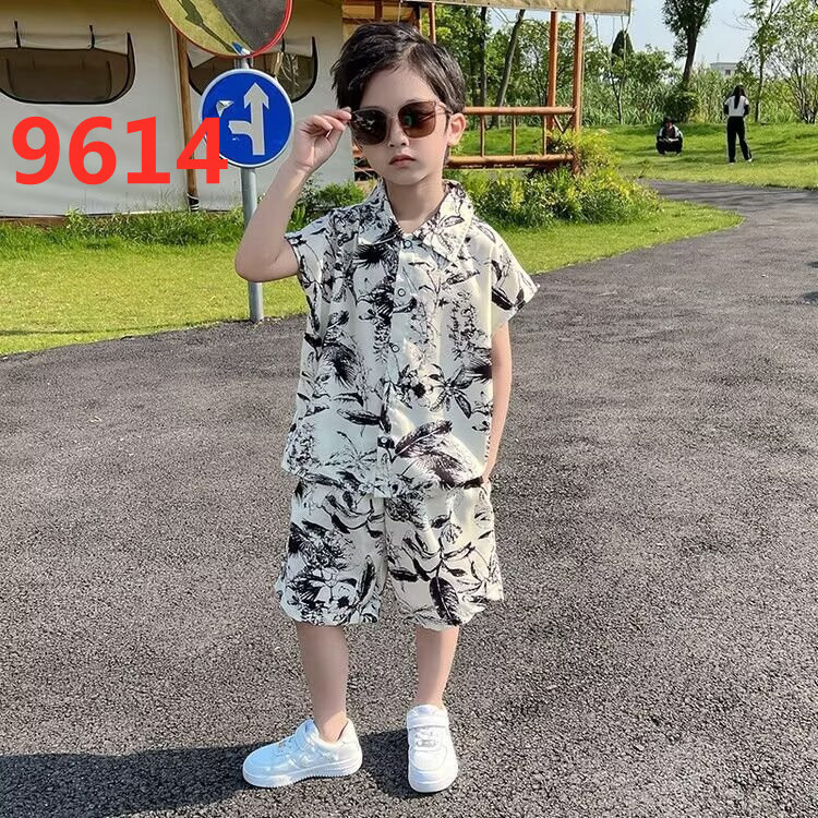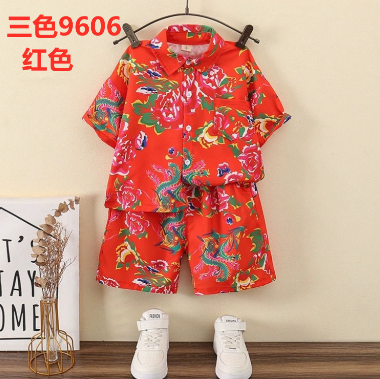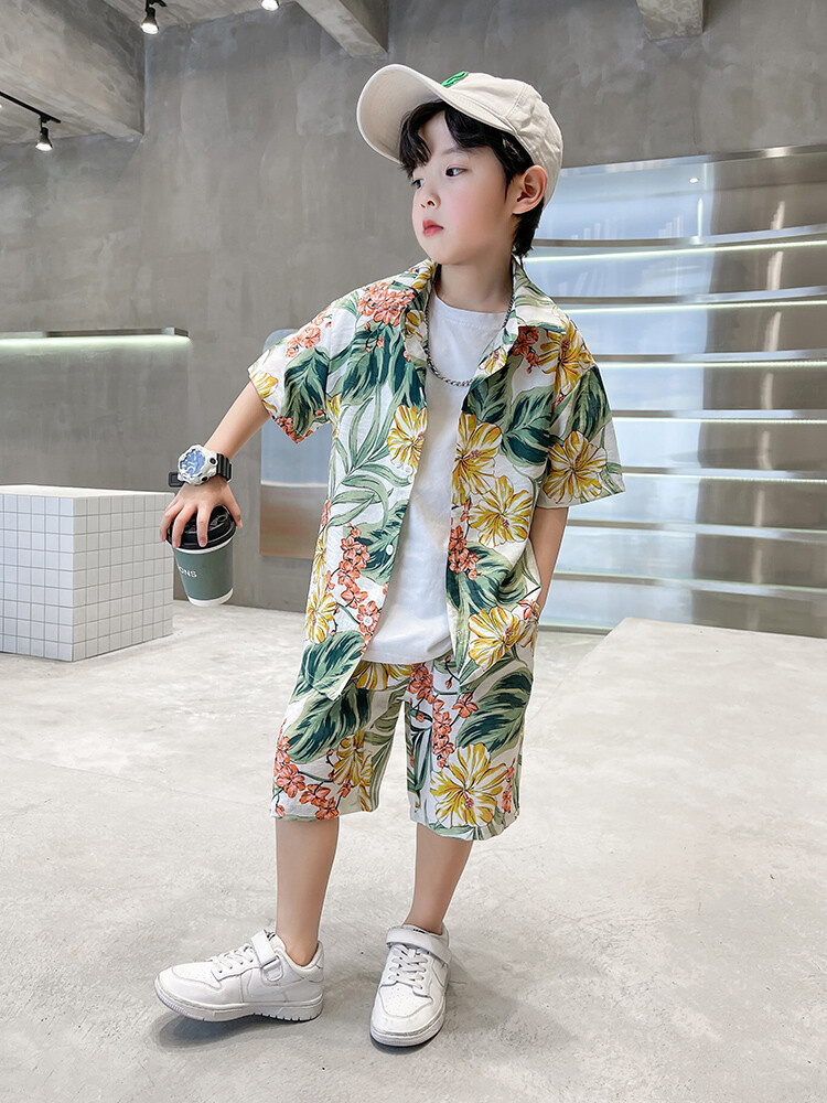 남아 정장, 하와이안 꽃무늬 셔츠, 해변 휴가 스타일 베이비 슈트, 핸섬 셔츠, 아동용 산야섬 의류스토어 가기