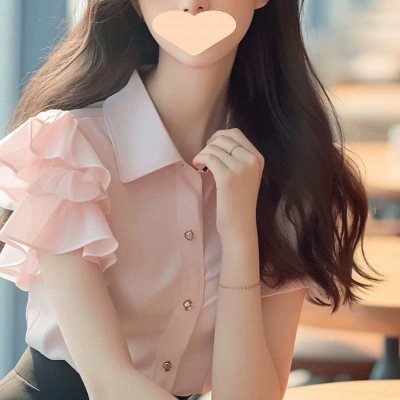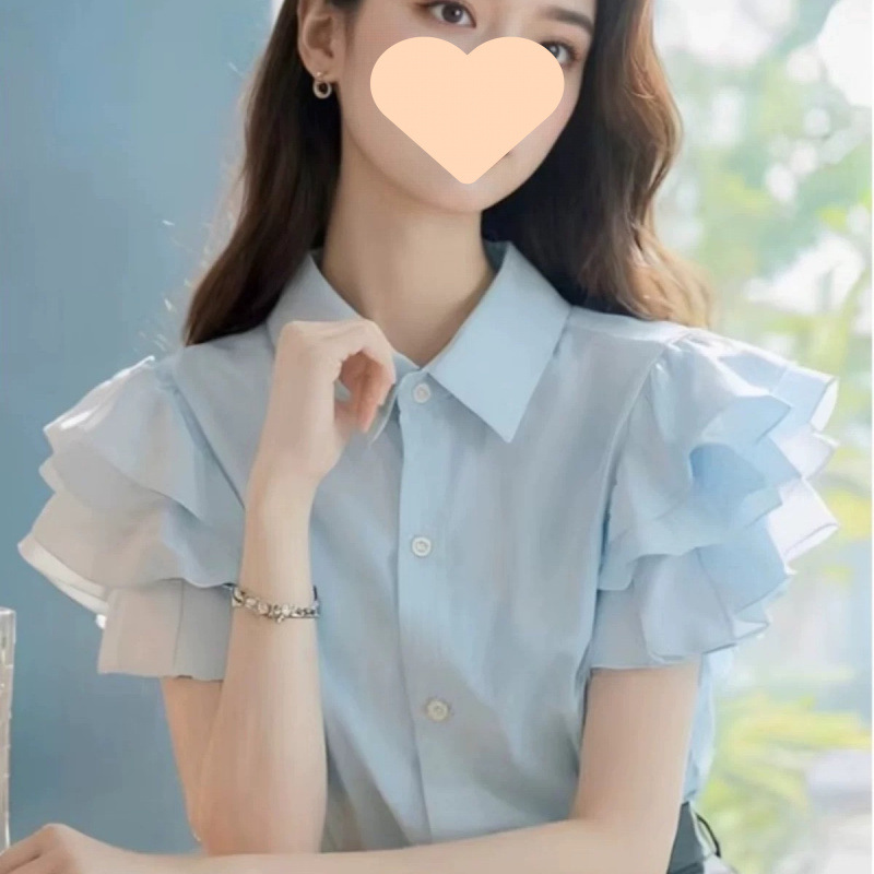 여름 여성을 위한 가벼운 럭셔리 하이엔드 절묘한 셔츠, 독특하고 시크한 틈새 시장, 달콤하고 아름다운 러플 탑스토어 가기