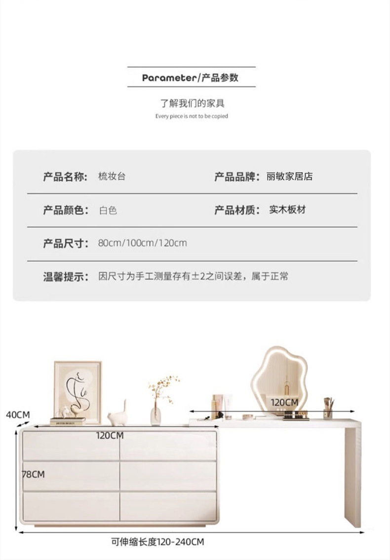 • 서랍장 120cm + 화장대 80cm + 거울 + 아크릴 의자