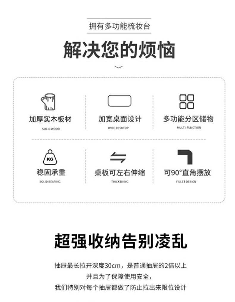 단단한 나무 화장대, 서랍장, 일체형 침대 옆 수납장, 화장대, 침실, 모던하고 심플한 가벼운 럭셔리 단단한 나무 화장대스토어 가기