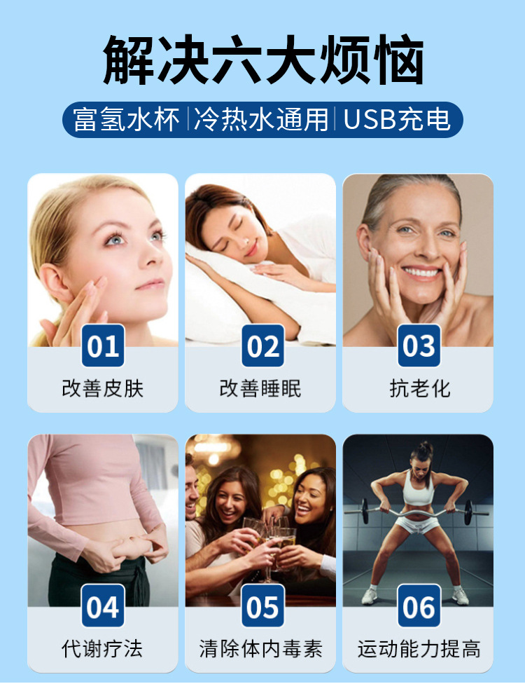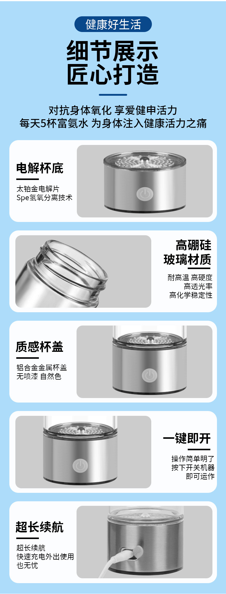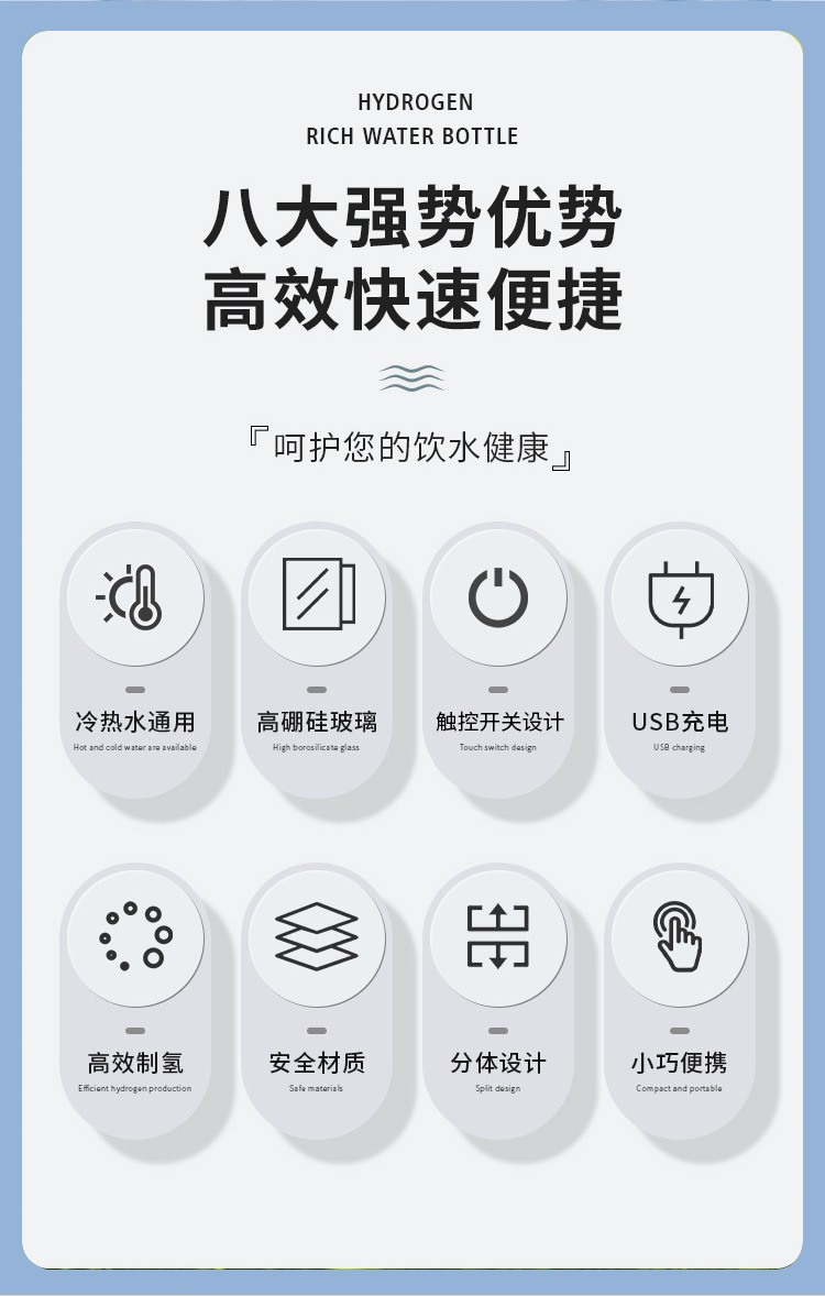 고농도 수소가 풍부한 물컵, 수소 및 산소 분리 전해수소 컵, 3가지 용도의 흡입 가능한 수소 건강 컵을 공장에서 직접 공급합니다.스토어 가기