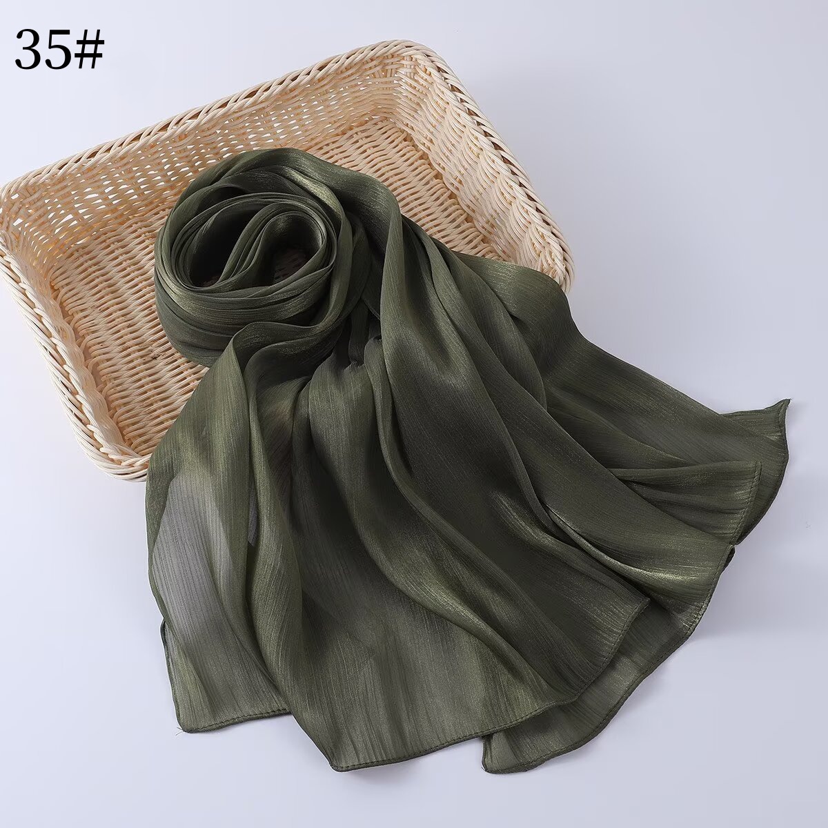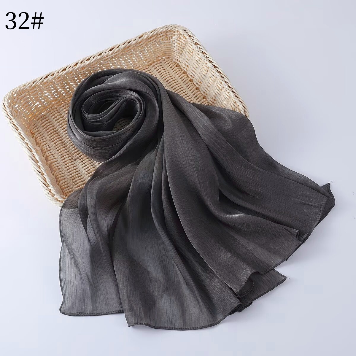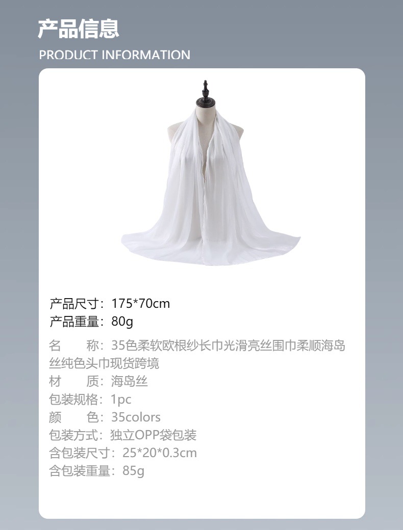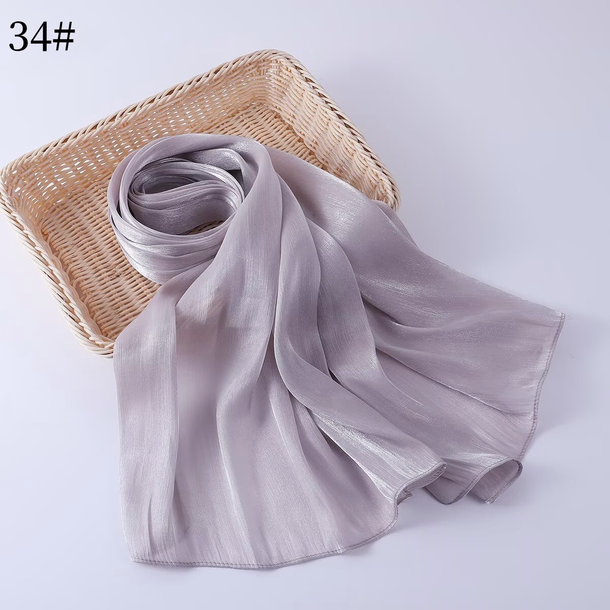 35색 부드러운 오간자 롱 스카프, 부드럽고 반짝이는 실크 스카프, 부드러운 아일랜드 실크 솔리드 컬러 스카프, 크로스보더 재고 있음스토어 가기