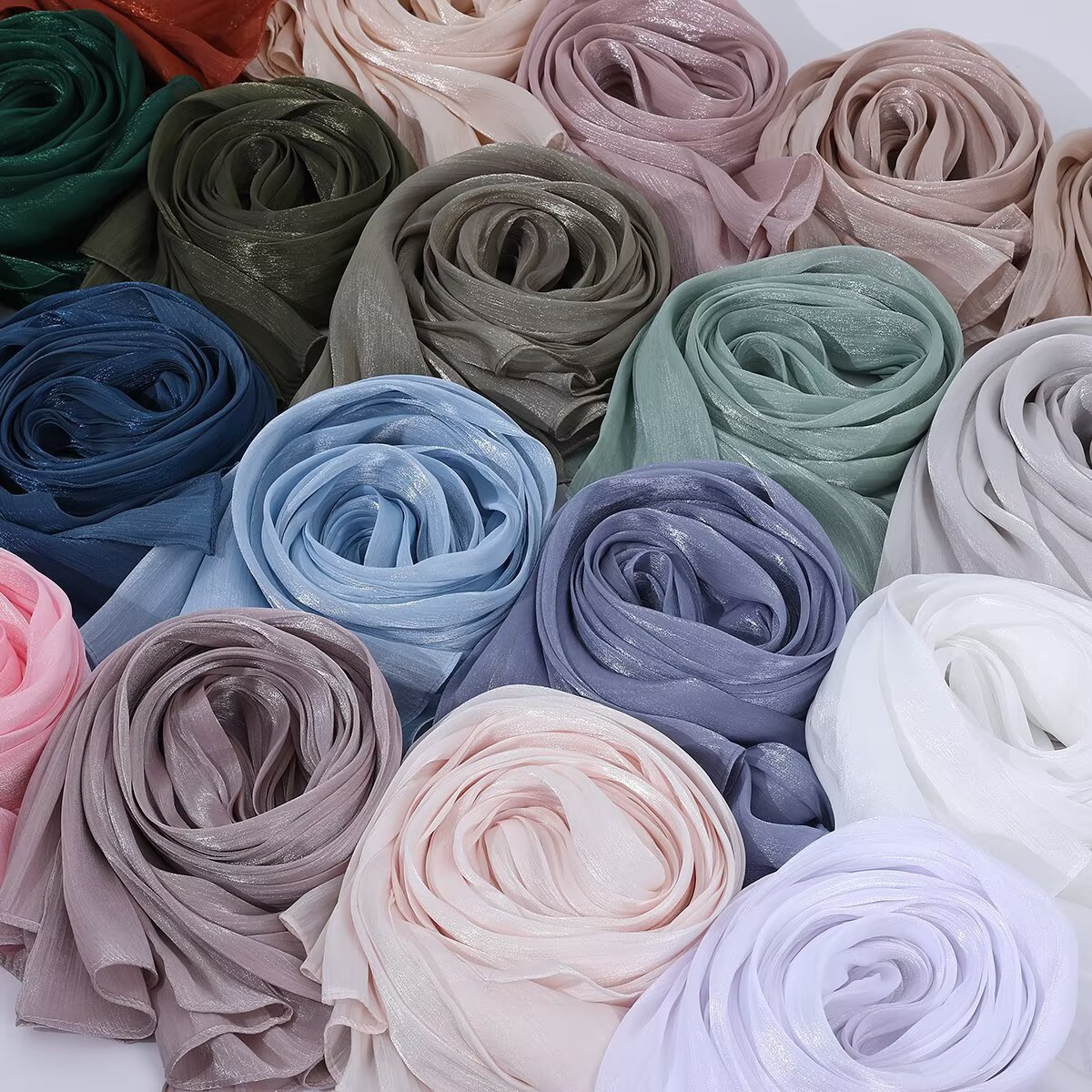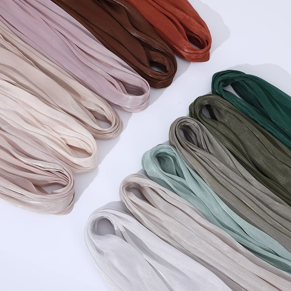 35색 부드러운 오간자 롱 스카프, 부드럽고 반짝이는 실크 스카프, 부드러운 아일랜드 실크 솔리드 컬러 스카프, 크로스보더 재고 있음