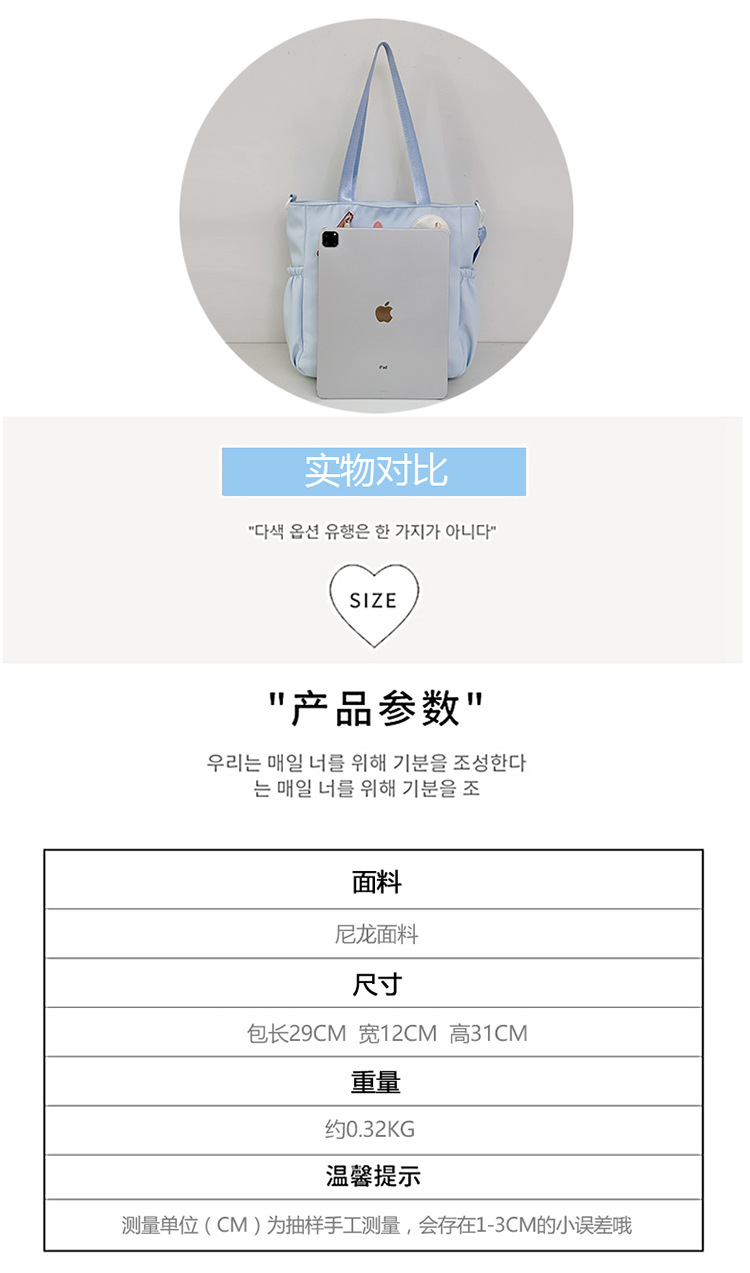 대학 스타일 2025 새로운 스타일 숄더백 통근 대용량 토트 백 귀여운 작은 신선한 학생 수업 과외 가방스토어 가기