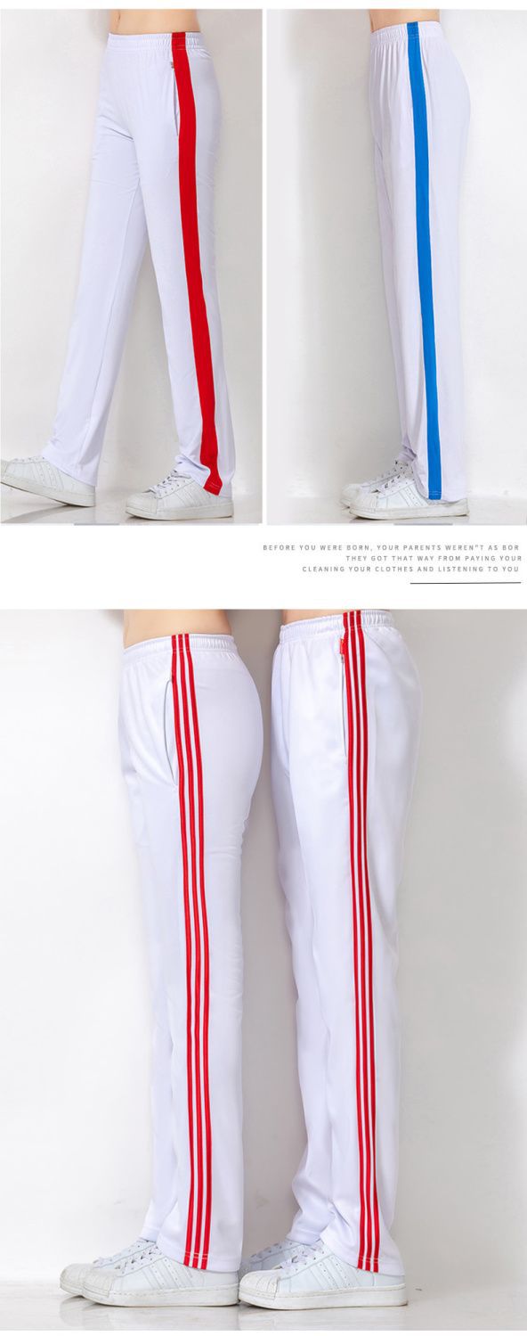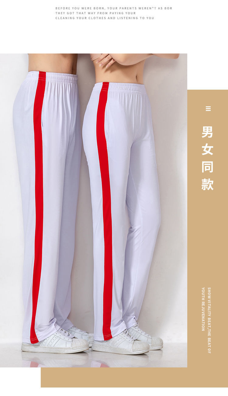 스포츠 바지 흰색 봄 가을 두꺼운 스타일 광장 댄스 단체구매 운동회 체조 팀복 남녀 학교 바지 여름 도매