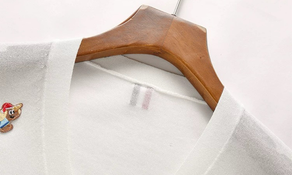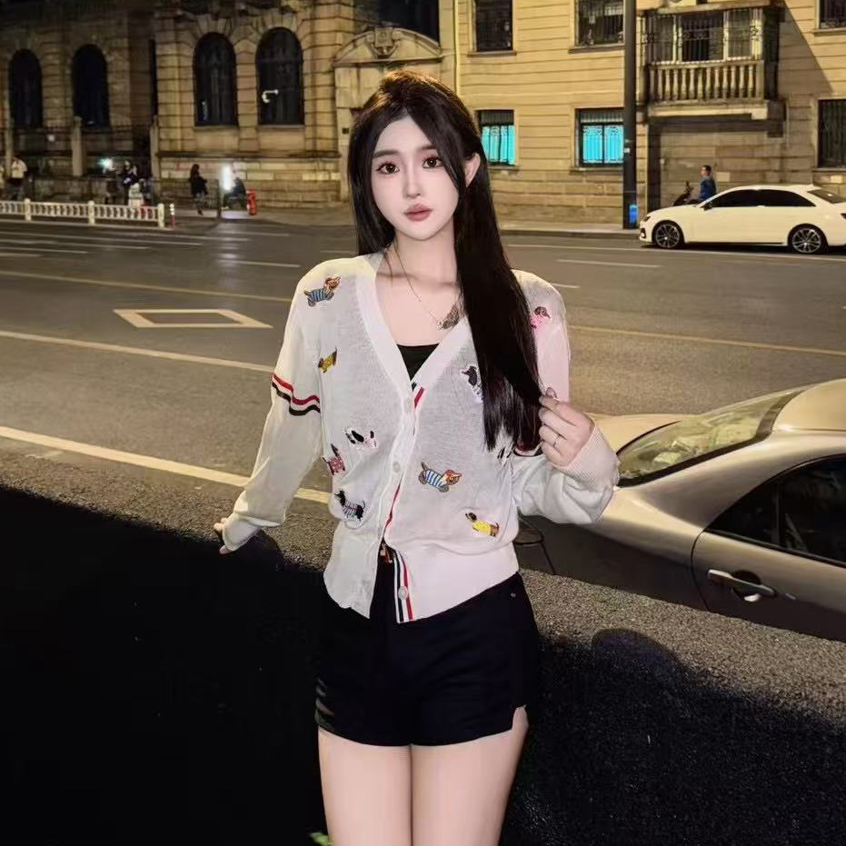 노란색 카디건 tb 대학 스타일 강아지 라벨 장식 더블 슬리브 컬러 스트립 v 넥 니트 카디건 여성 자켓 유행스토어 가기