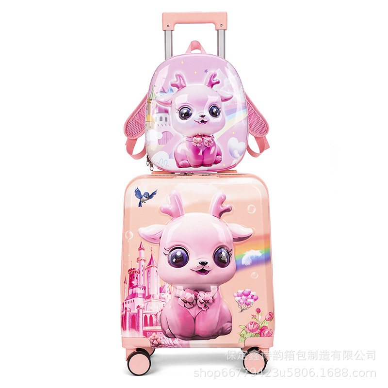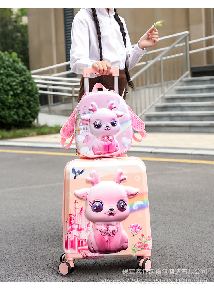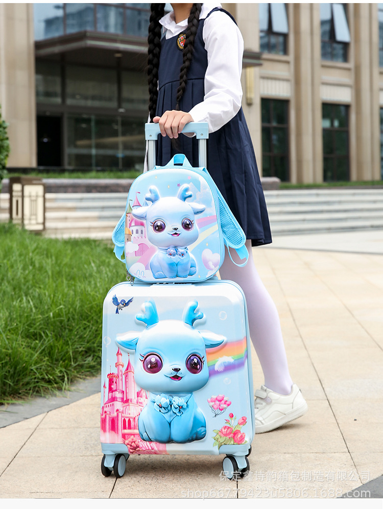 어린이용 대용량 만화 캐릭터 여행가방 세트, 수납 가능한 회전 바퀴 여행가방, 배낭, 휴대용, 기내 반입 가능스토어 가기