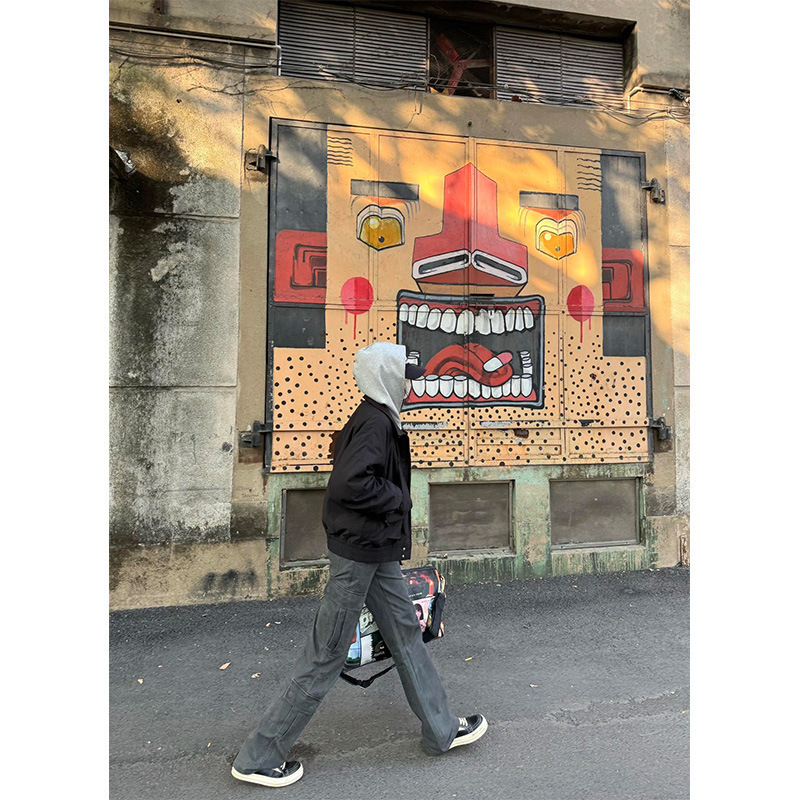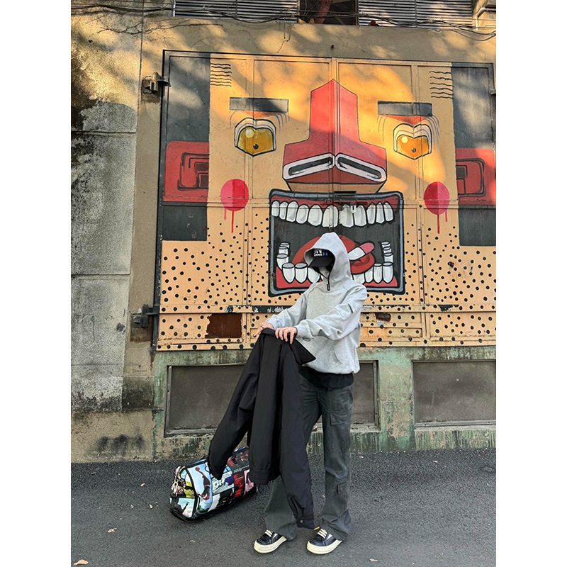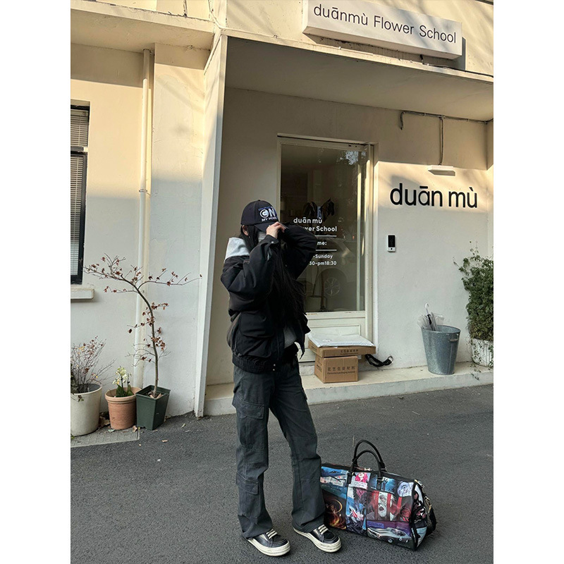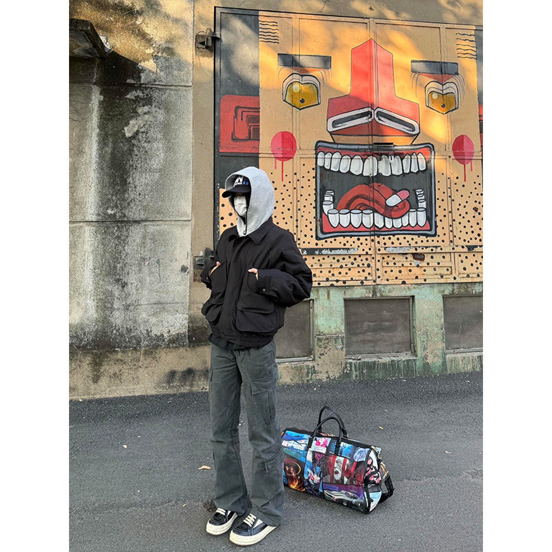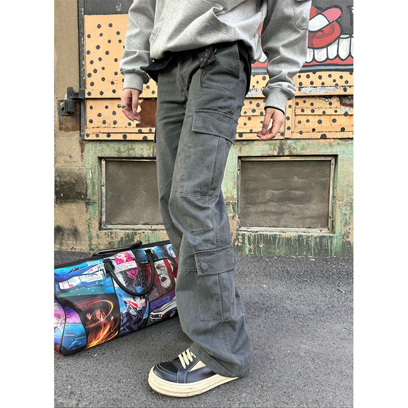 봄, 가을 남성용 하이 스트리트 멀티 포켓 워싱 스트레이트 청바지 아메리칸 레트로 루즈 캐주얼 디스트레스드 오버올스토어 가기