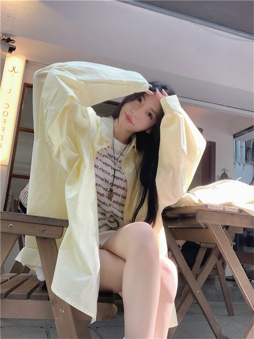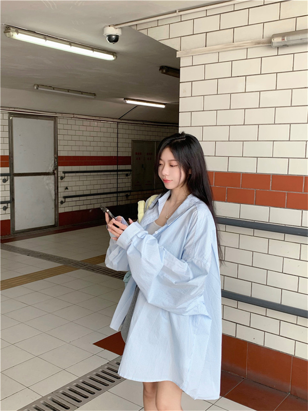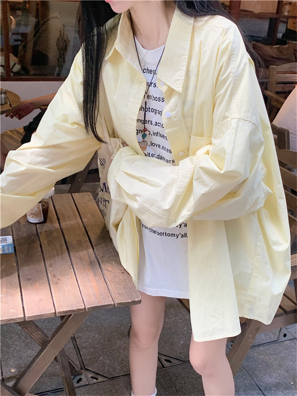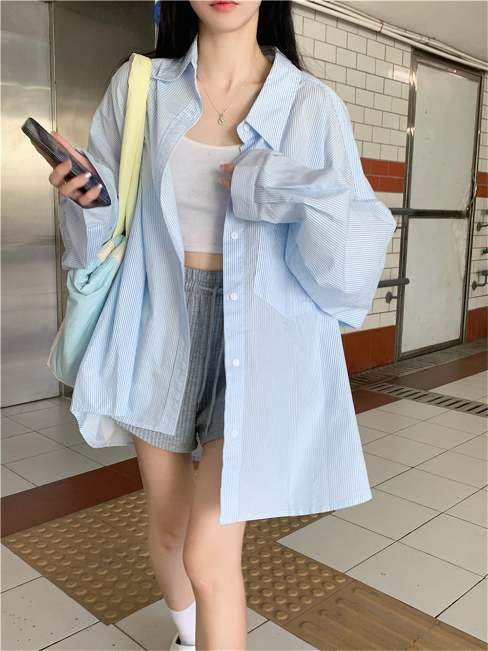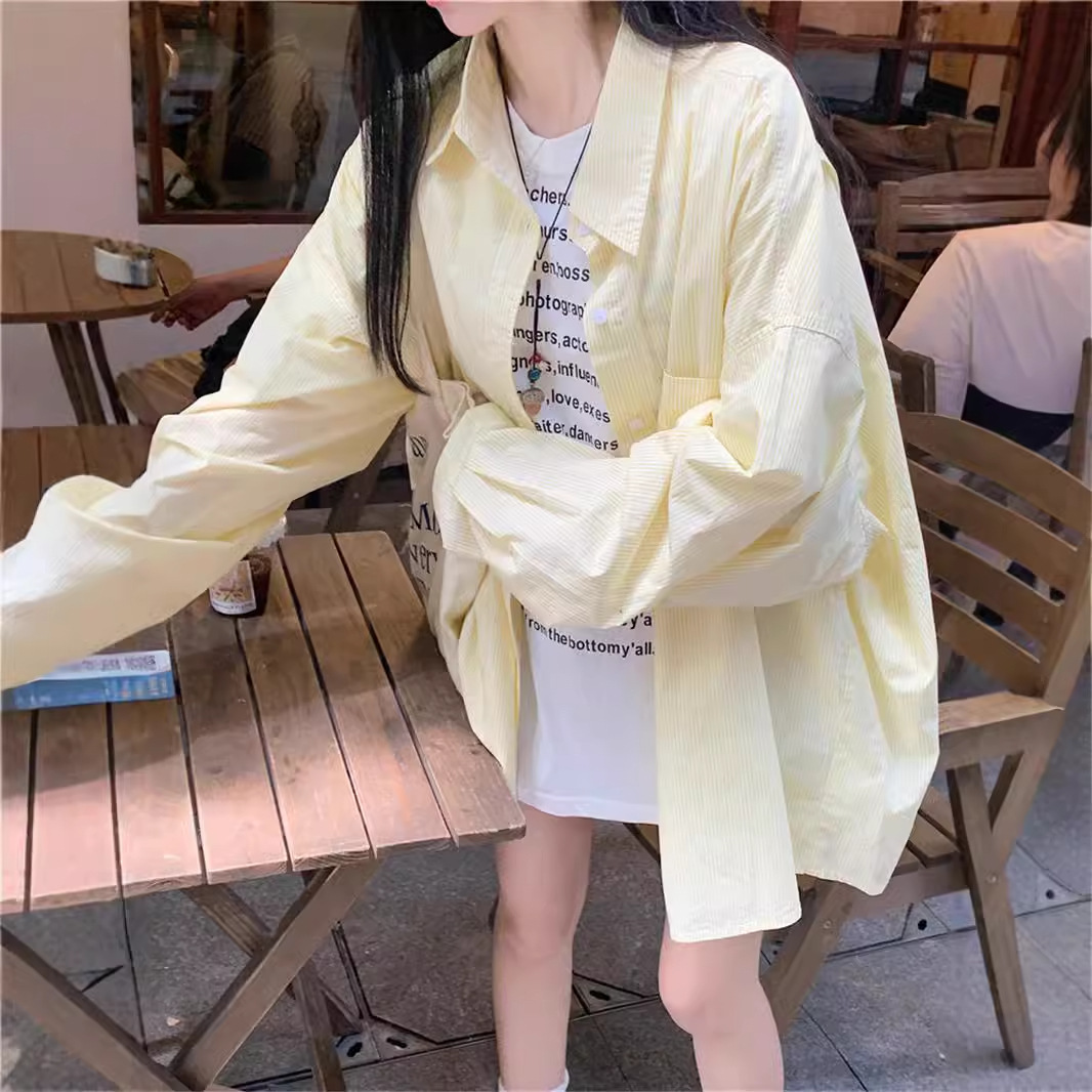 여성용 레이지 스타일 스트라이프 폴로 칼라 셔츠 재킷 여름 자외선 차단 셔츠 루즈 캐주얼 카디건 중간 길이 탑스토어 가기