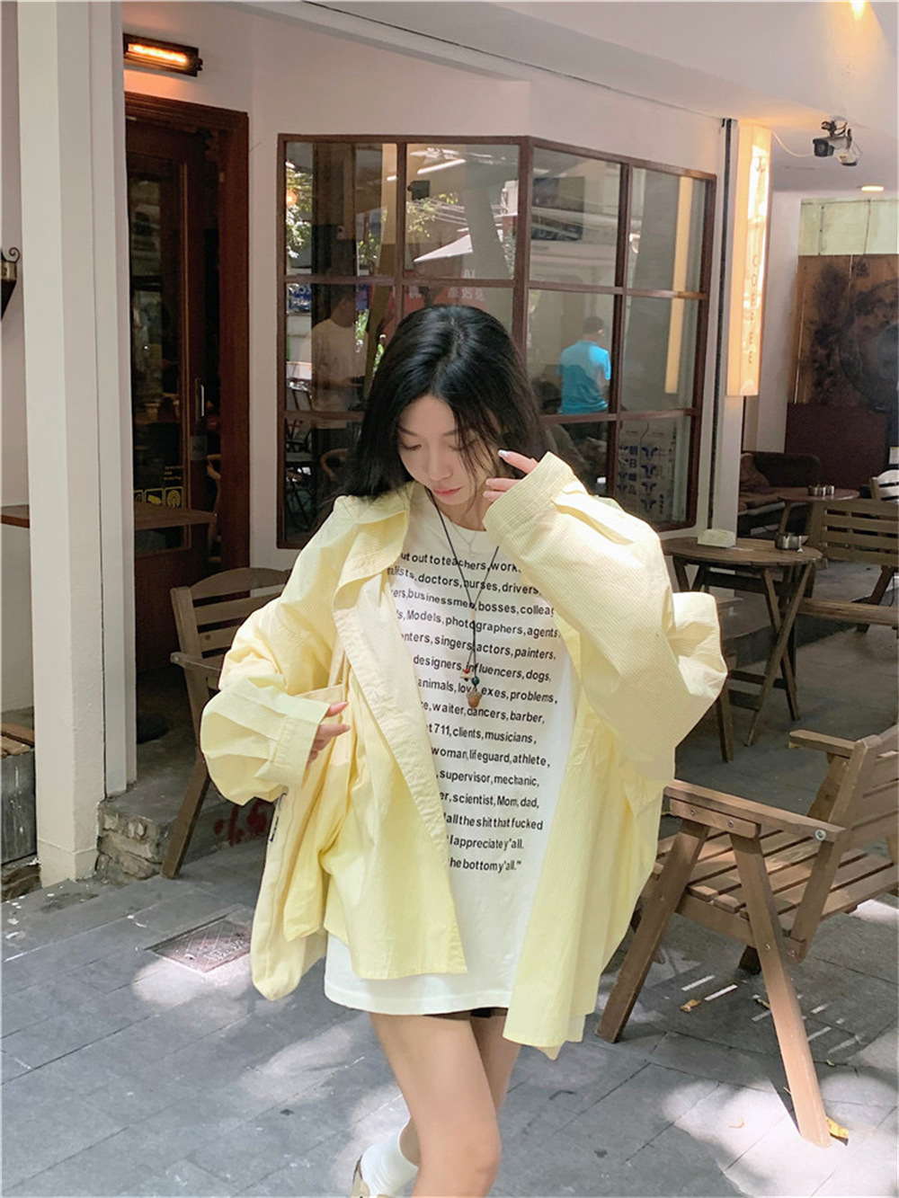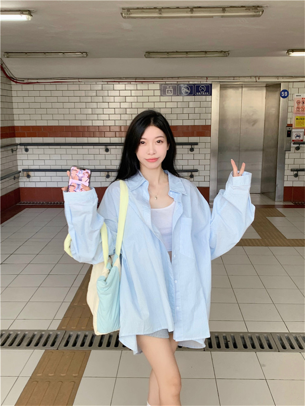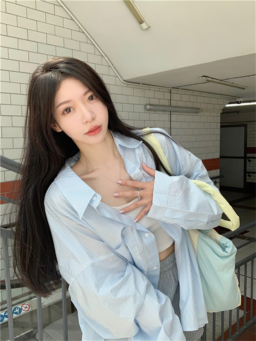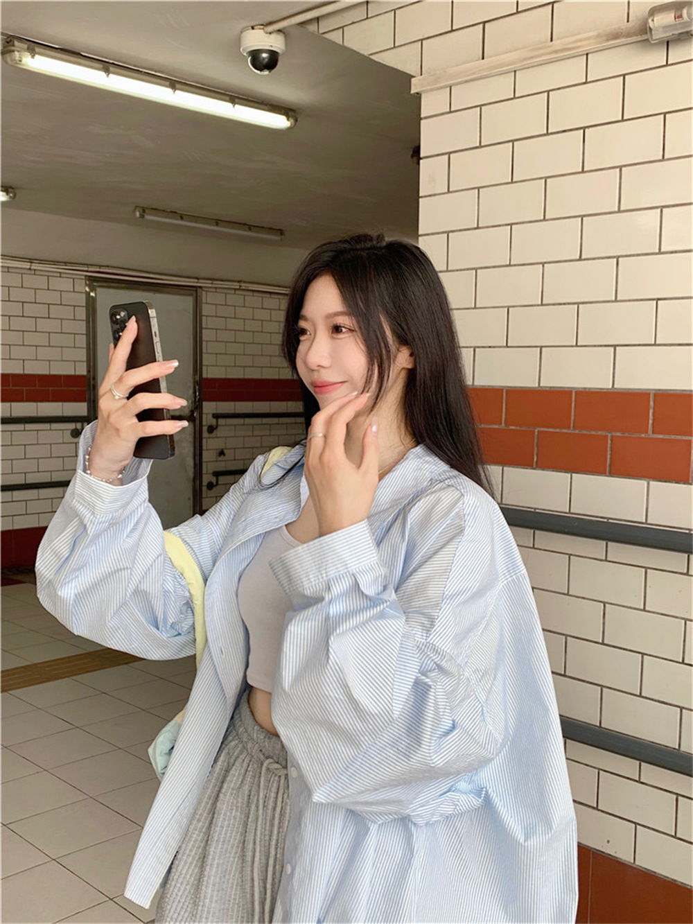 여성용 레이지 스타일 스트라이프 폴로 칼라 셔츠 재킷 여름 자외선 차단 셔츠 루즈 캐주얼 카디건 중간 길이 탑스토어 가기