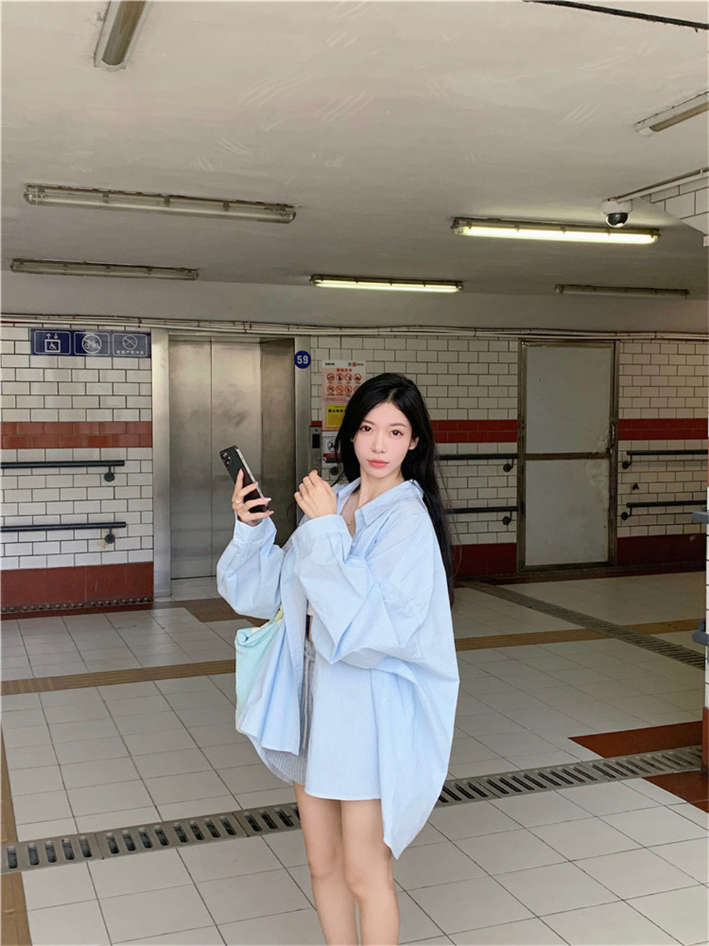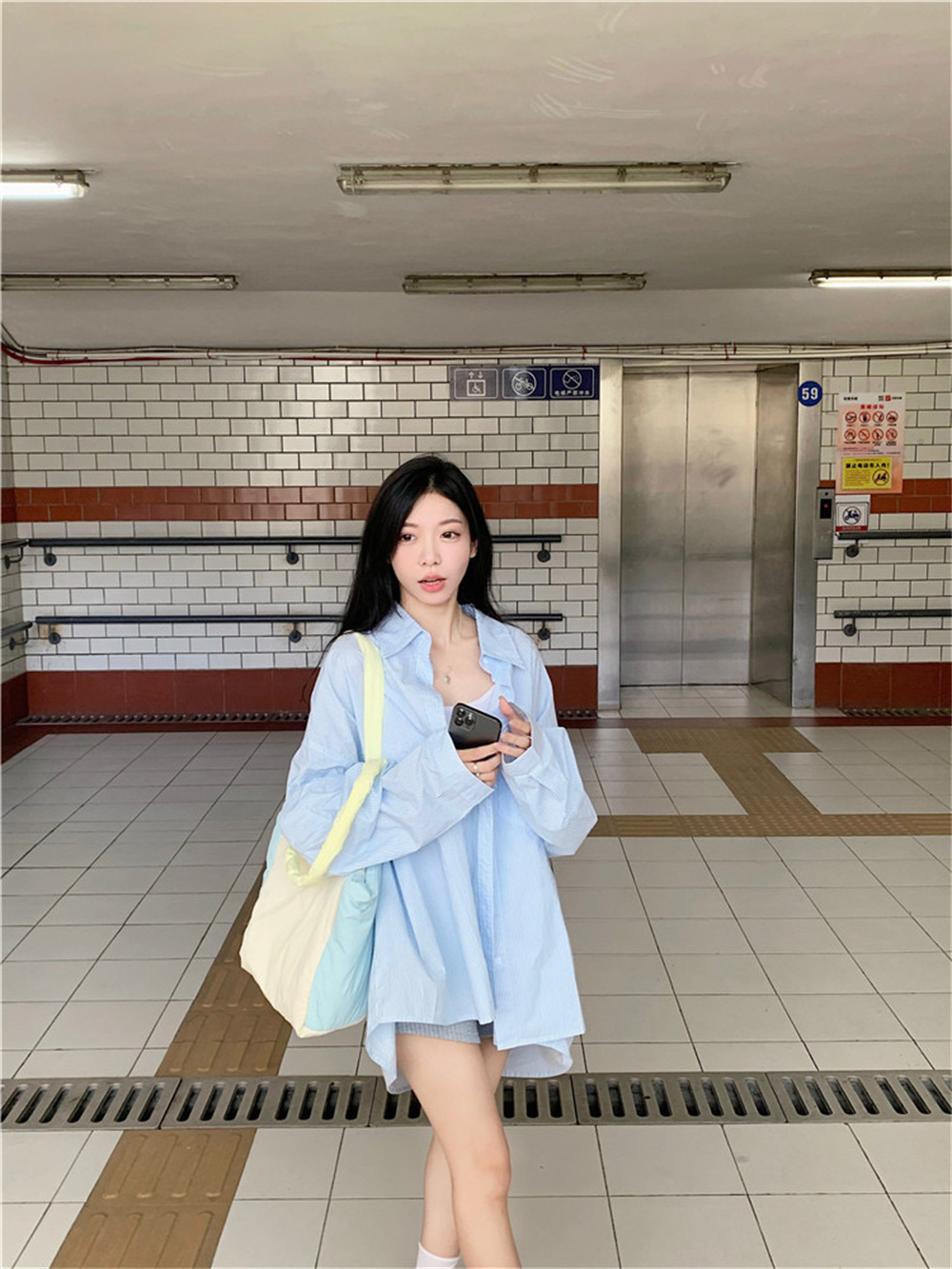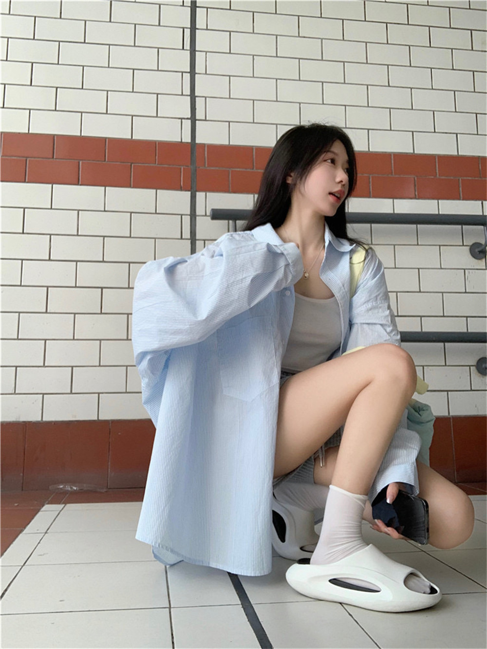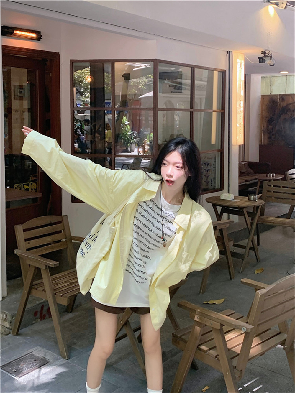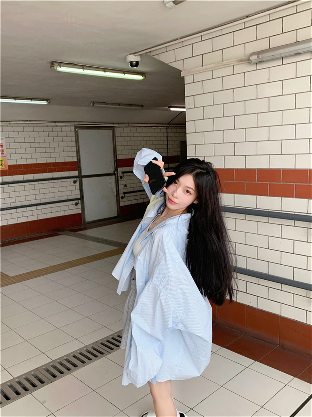 여성용 레이지 스타일 스트라이프 폴로 칼라 셔츠 재킷 여름 자외선 차단 셔츠 루즈 캐주얼 카디건 중간 길이 탑스토어 가기
