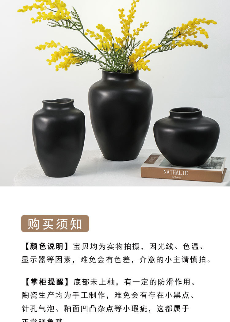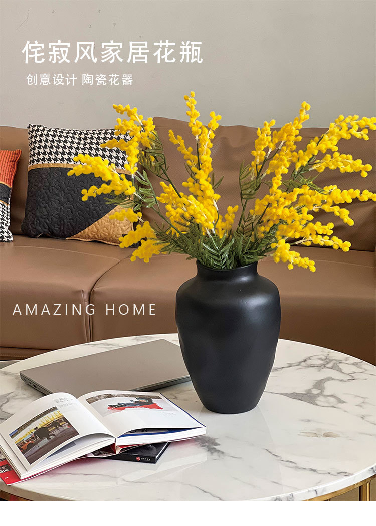 세라믹 검은 대형 꽃병 복고풍 와비사비 스타일 꽃꽂이 B&B 거실 조명 럭셔리 하이 엔드 홈 드라이 플라워 장식품스토어 가기