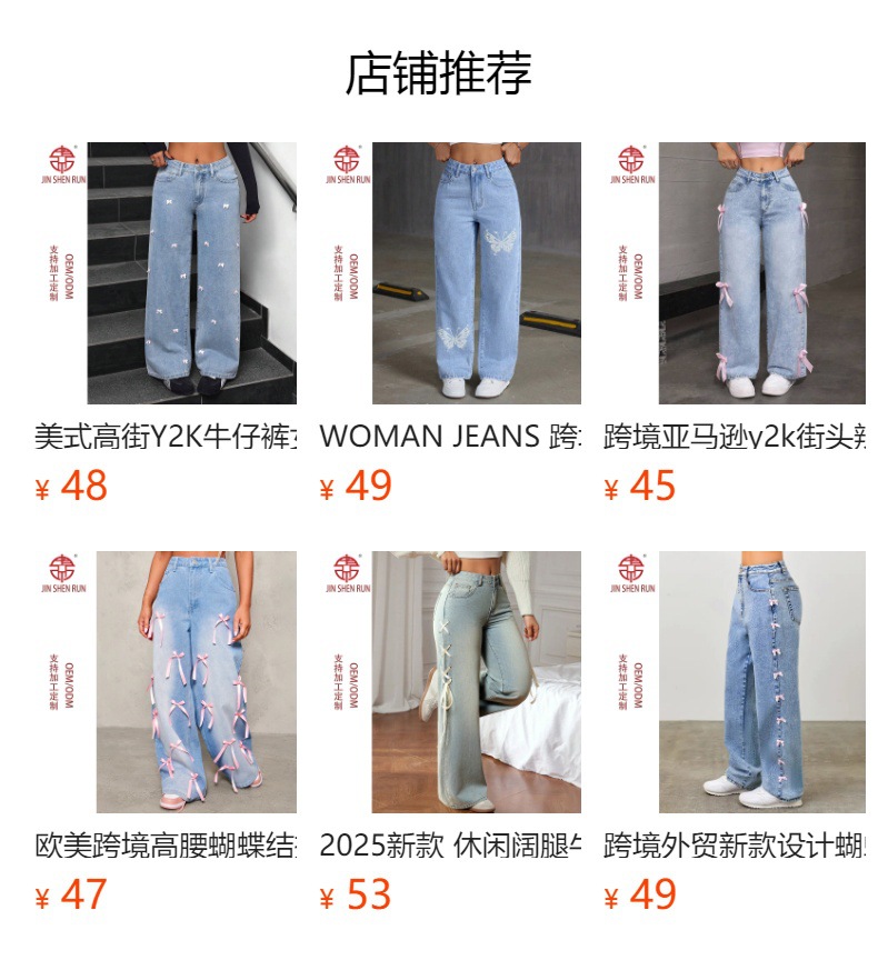여성용 아메리칸 하이 스트리트 Y2K 청바지 2025 봄 신상 하이 웨이스트 워시 보우 와이드 팬츠 트렌디 JEANS스토어 가기