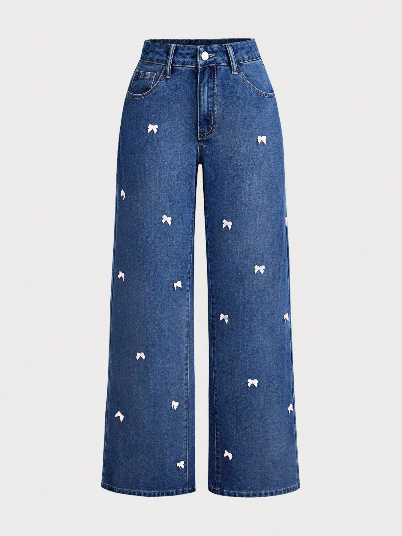 여성용 아메리칸 하이 스트리트 Y2K 청바지 2025 봄 신상 하이 웨이스트 워시 보우 와이드 팬츠 트렌디 JEANS