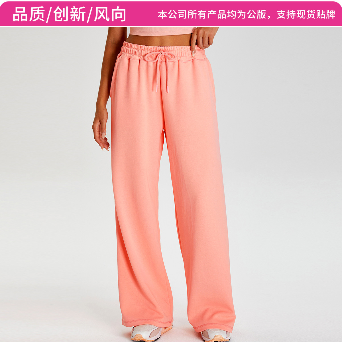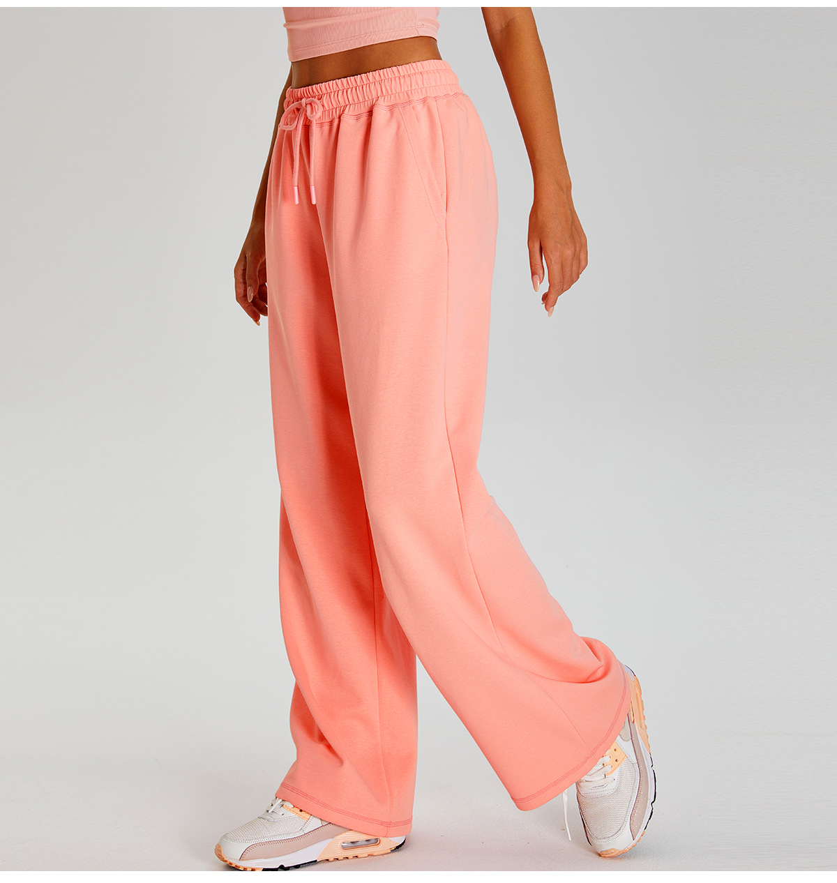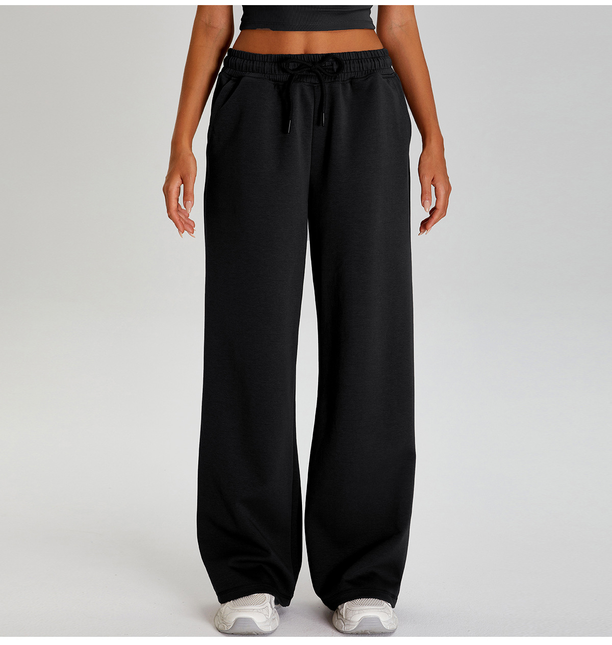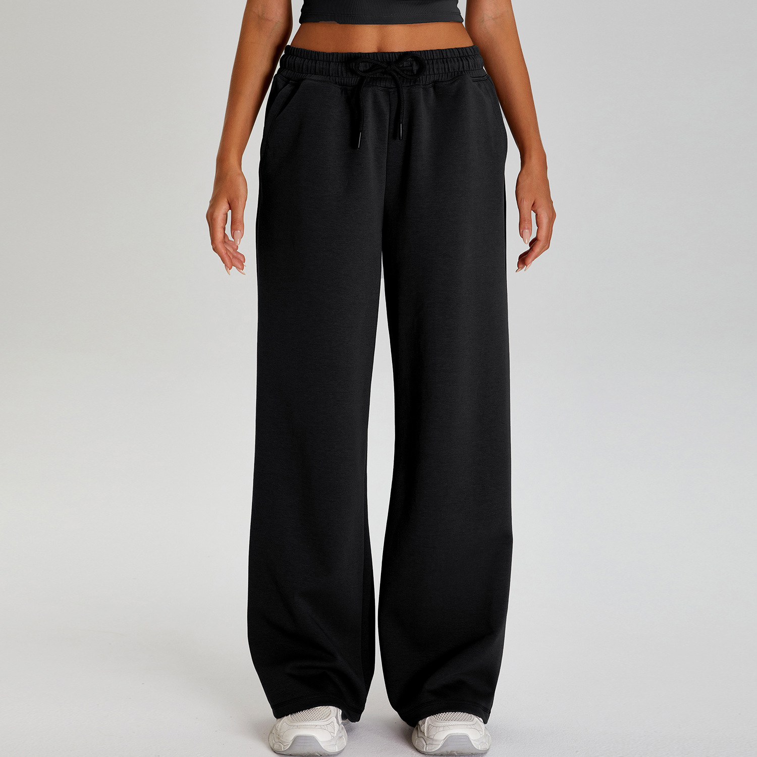 국경 간 새로운 캐주얼 올 매치 와이드 레그 바지 여성 야외 스포츠 Elasto Drawstring 바지 느슨한 요가 피트니스 바지