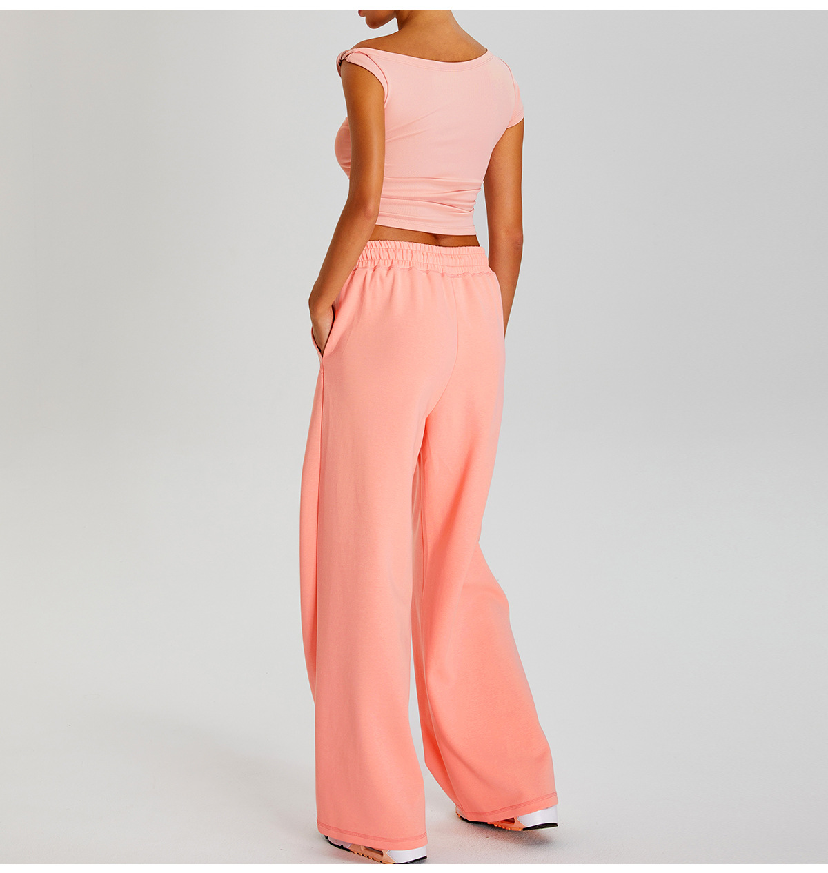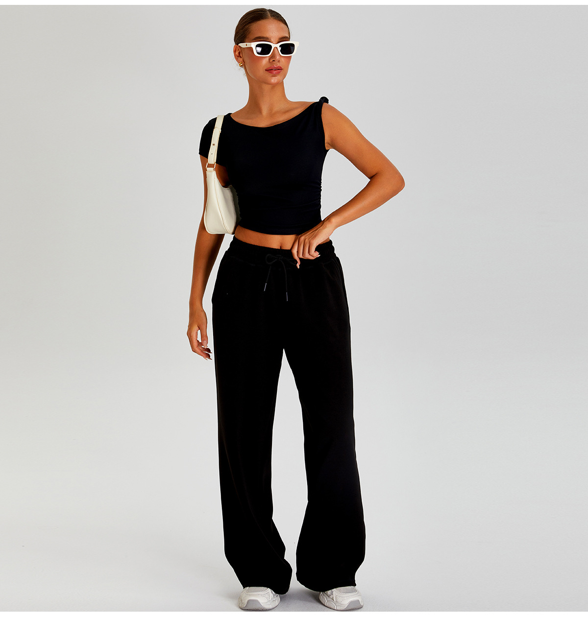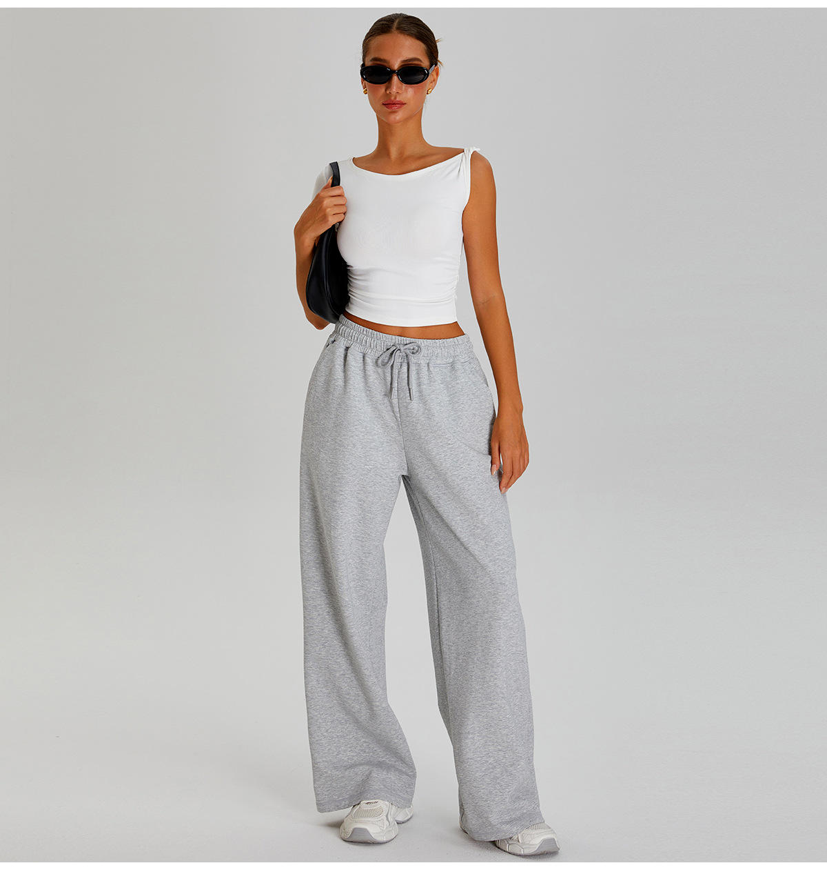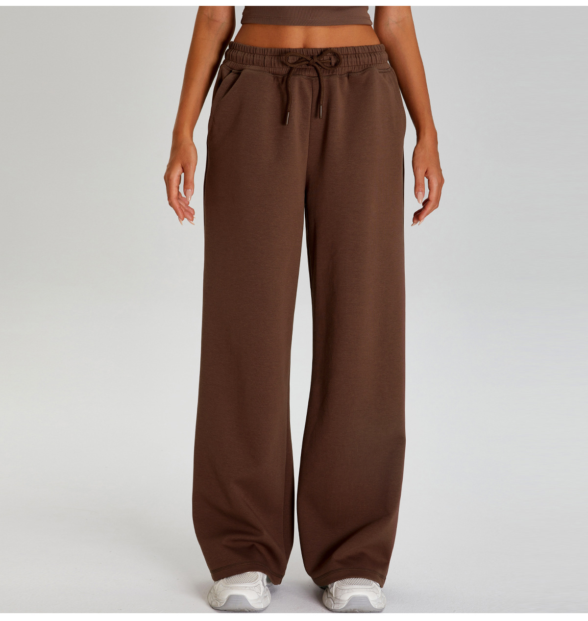 국경 간 새로운 캐주얼 올 매치 와이드 레그 바지 여성 야외 스포츠 Elasto Drawstring 바지 느슨한 요가 피트니스 바지