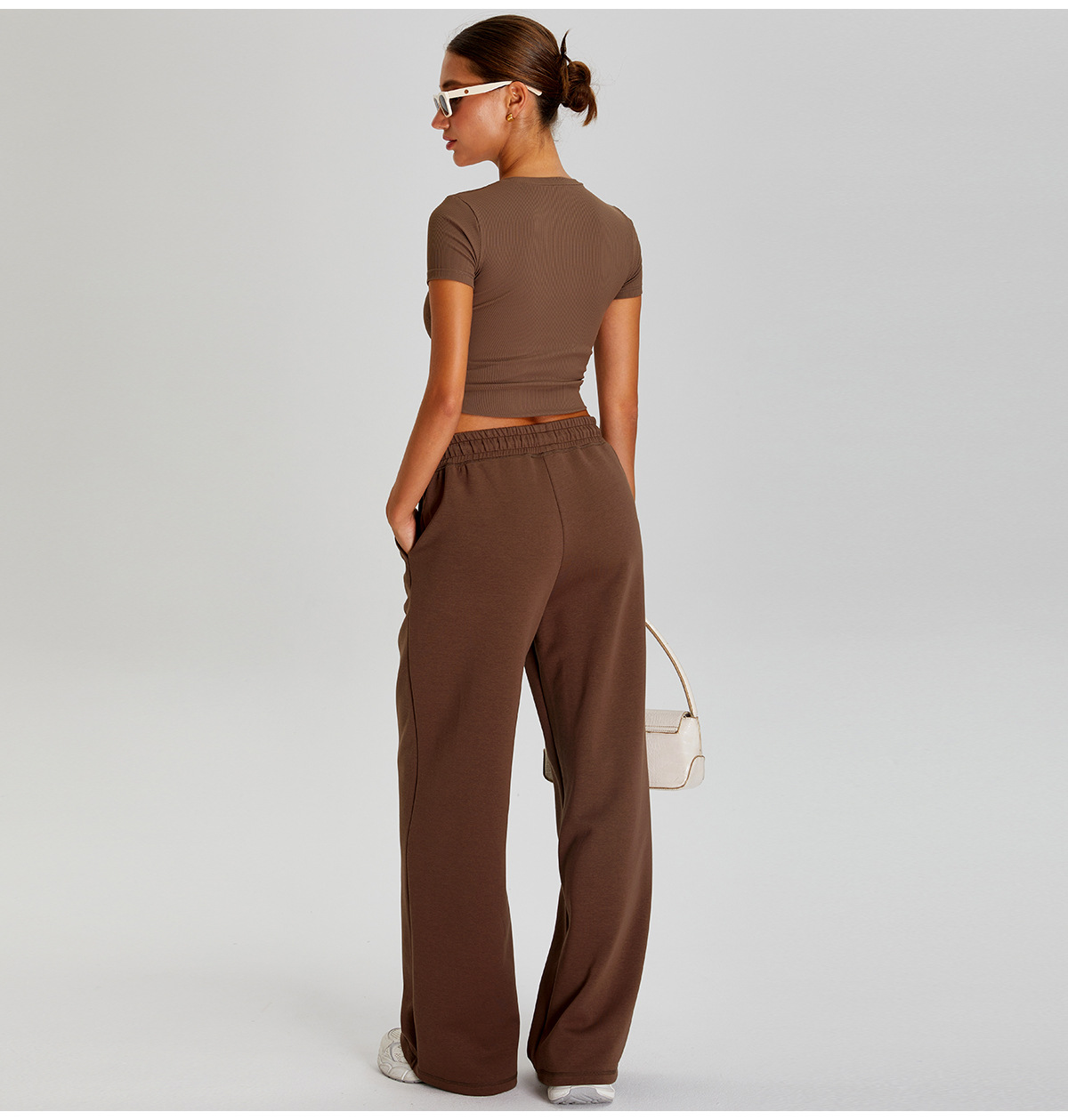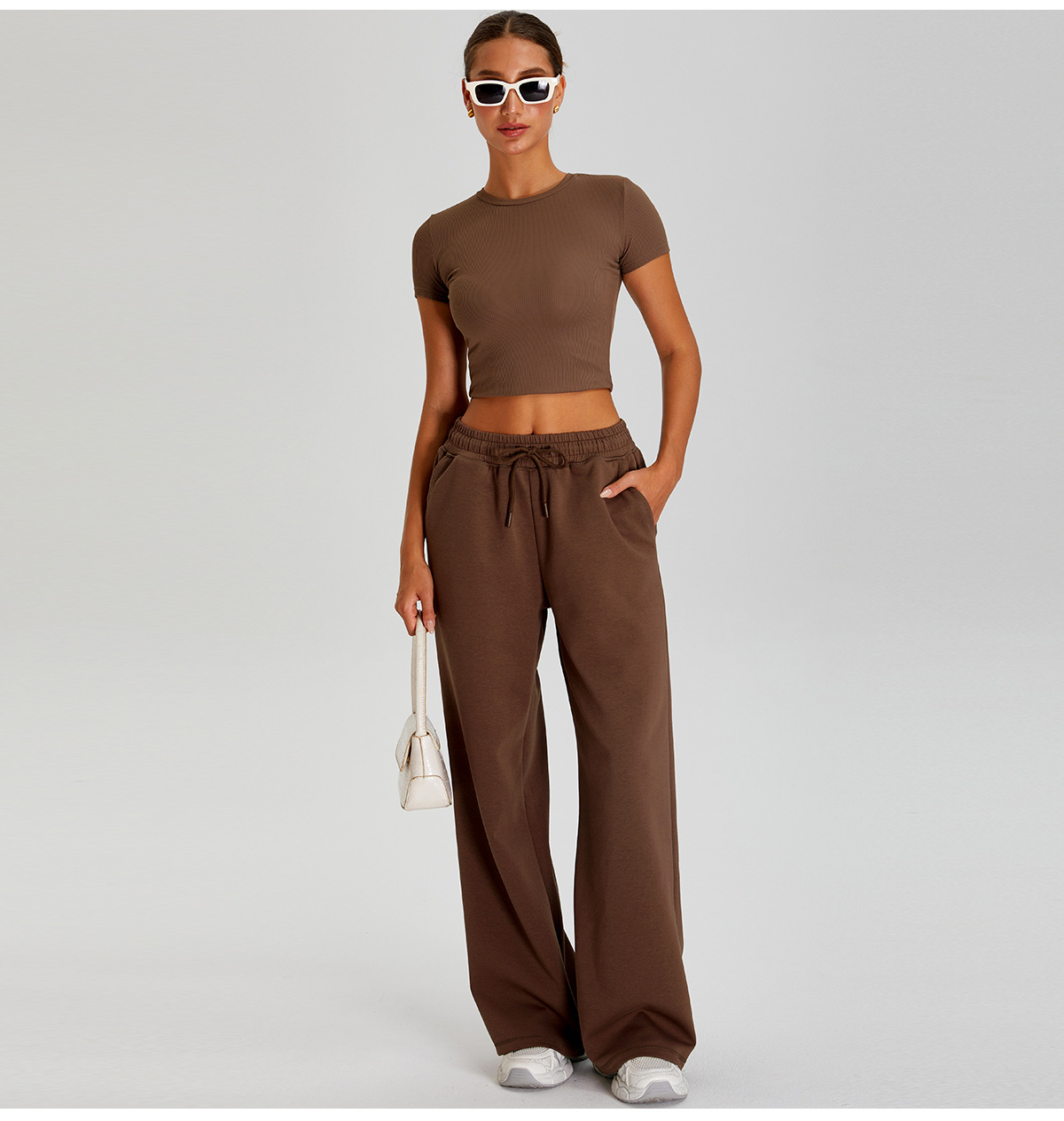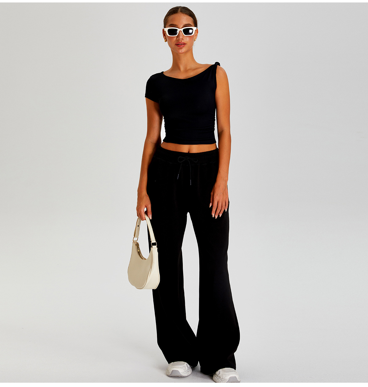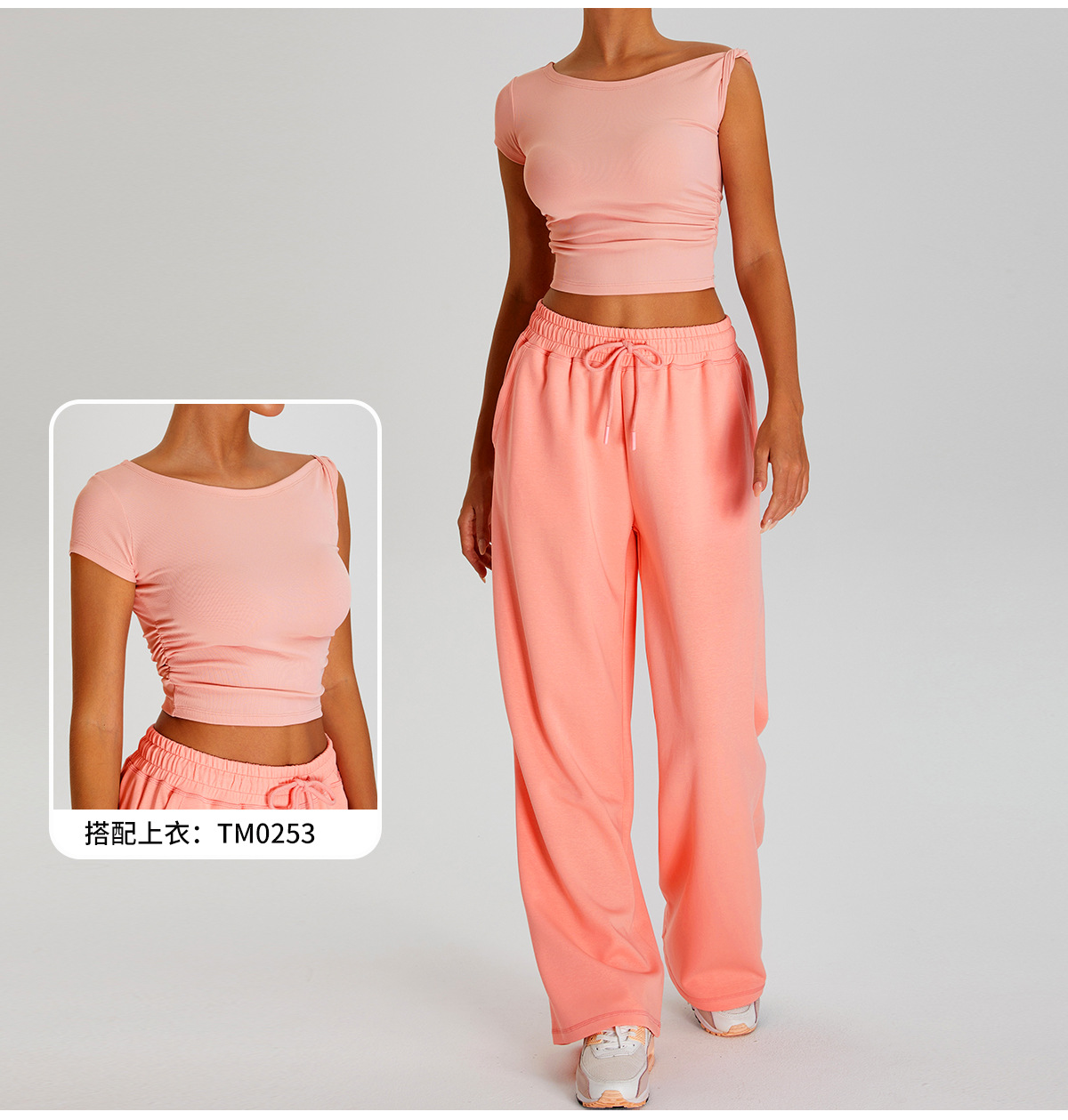 국경 간 새로운 캐주얼 올 매치 와이드 레그 바지 여성 야외 스포츠 Elasto Drawstring 바지 느슨한 요가 피트니스 바지