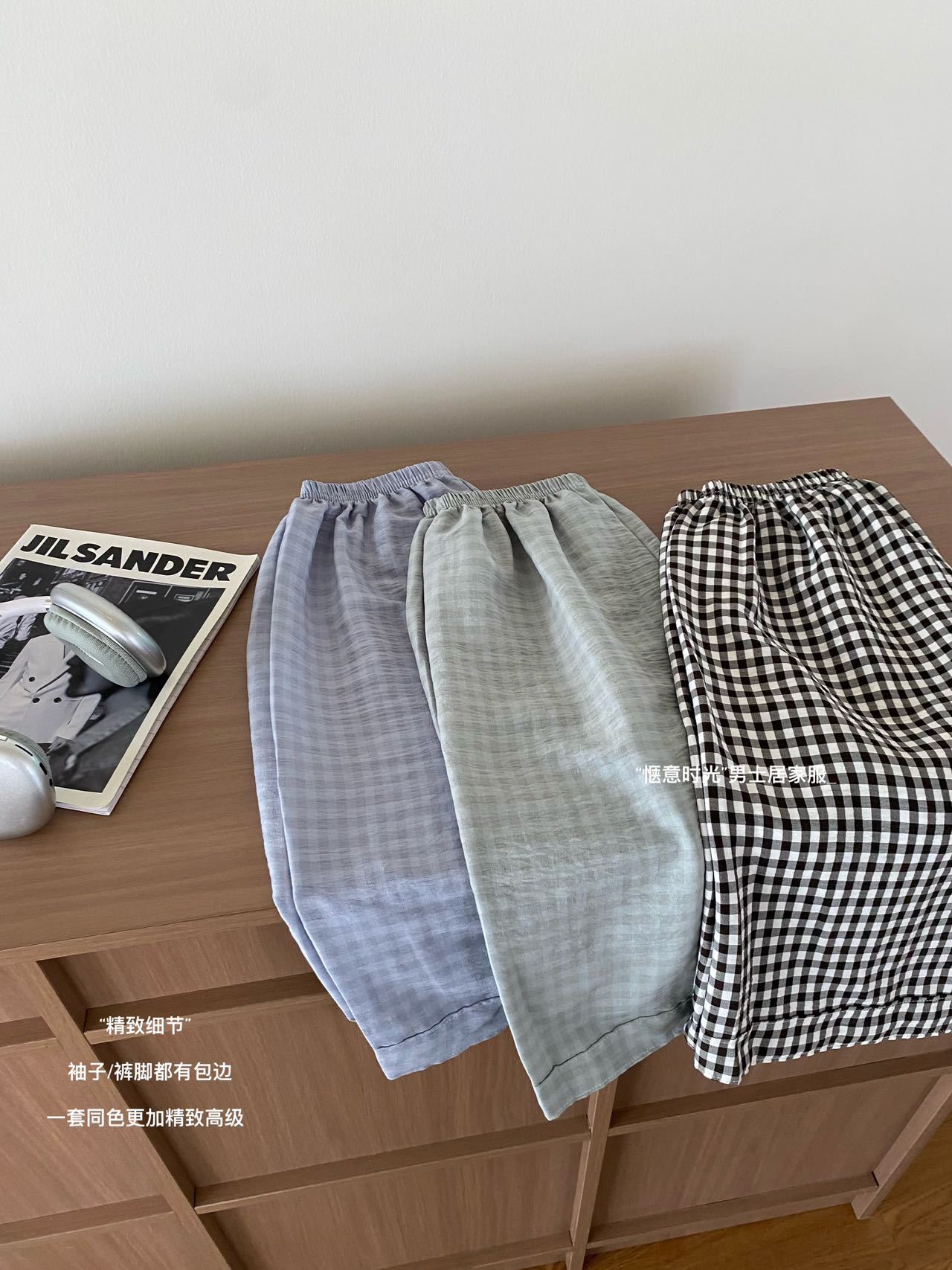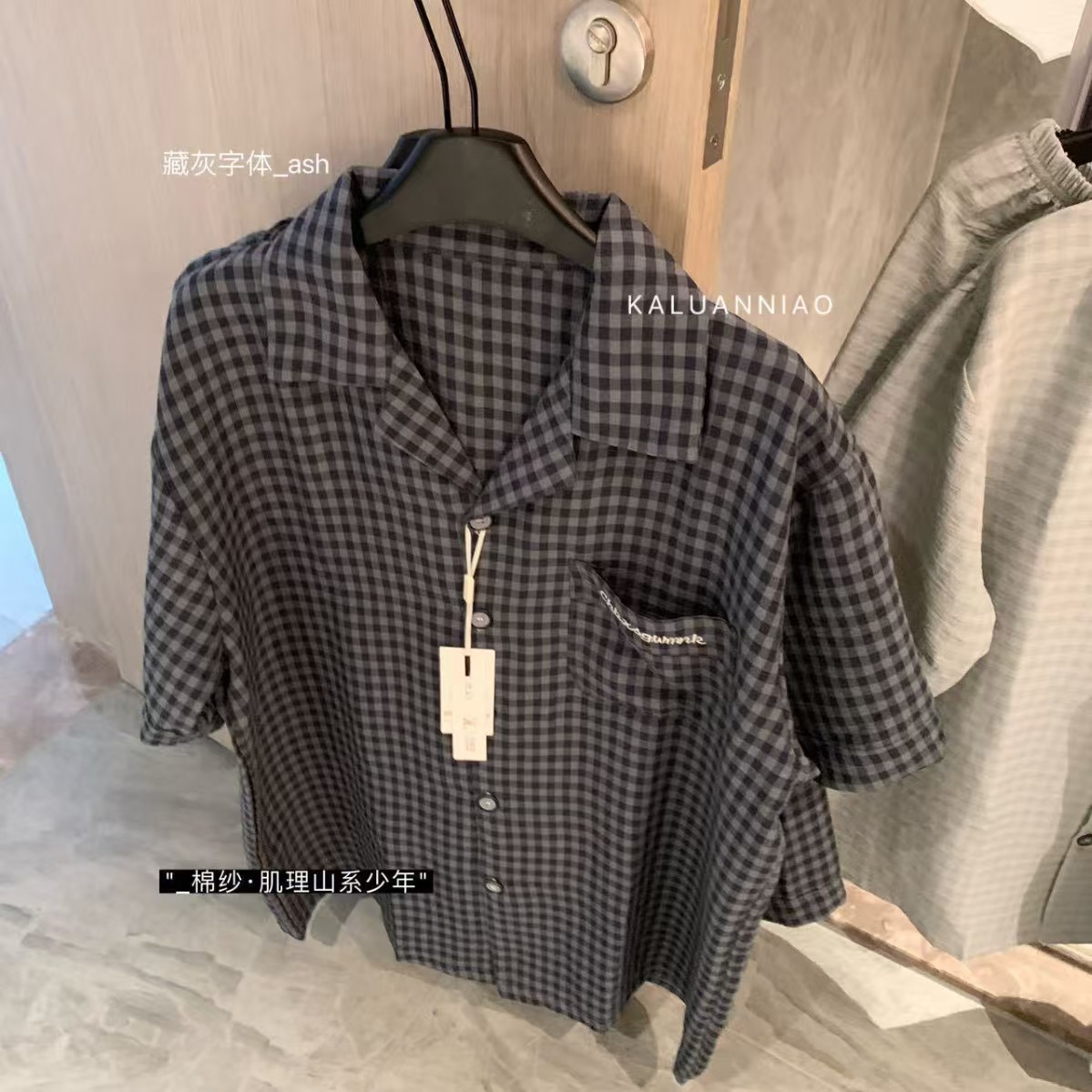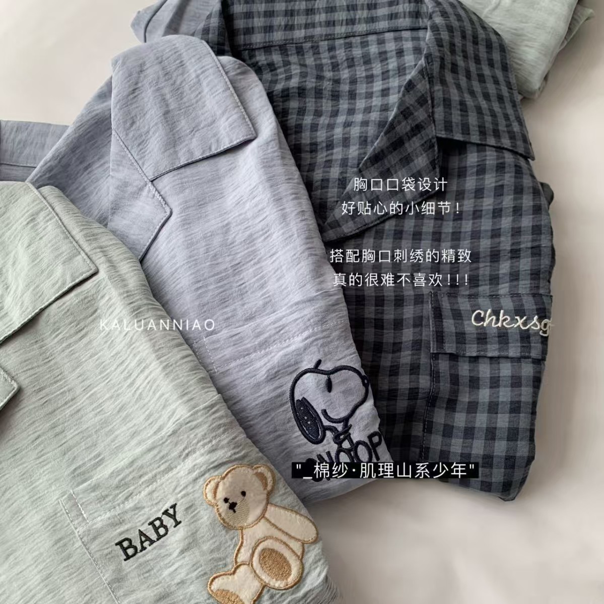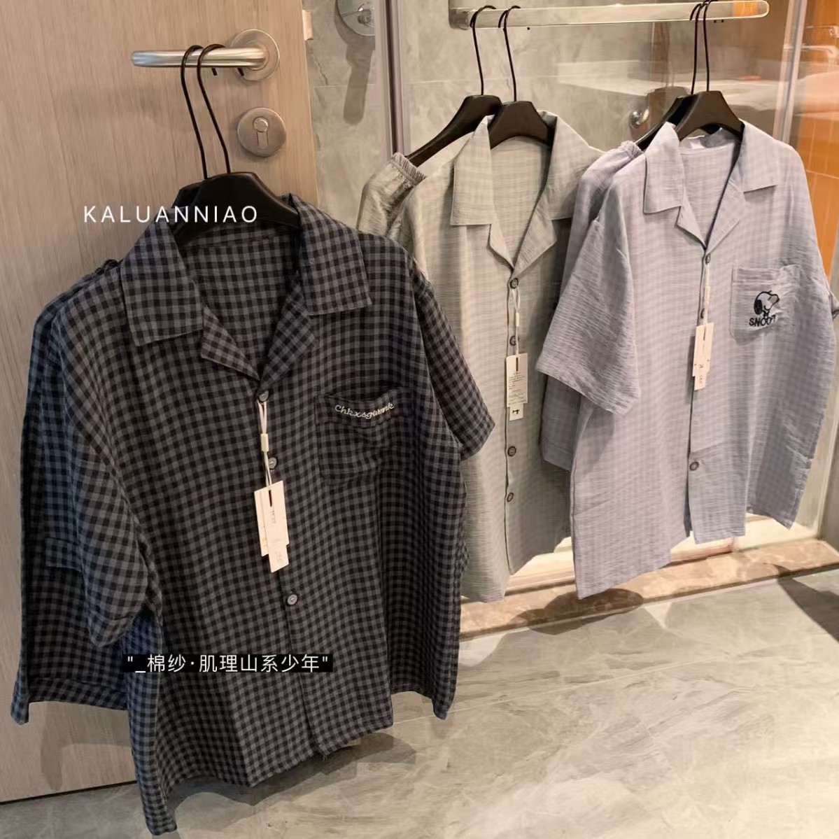 KALUANNIAO 면사 질감 마운틴 스타일 주니어 6619 # 반팔 반바지 남성용 홈웨어 투피스 파자마스토어 가기