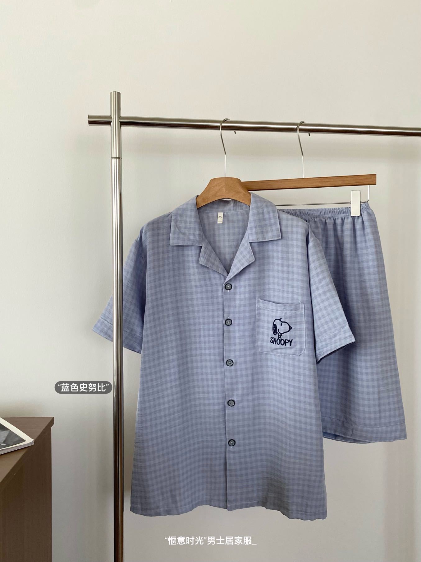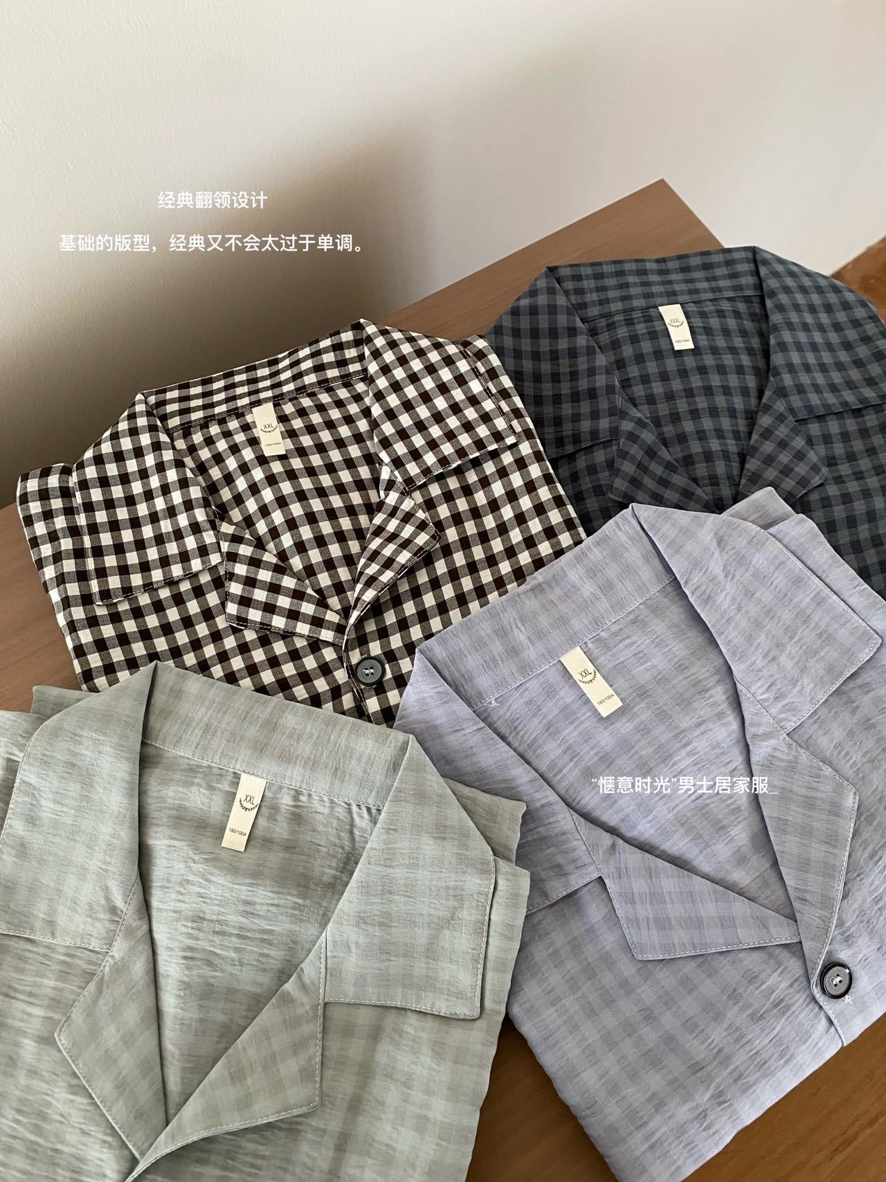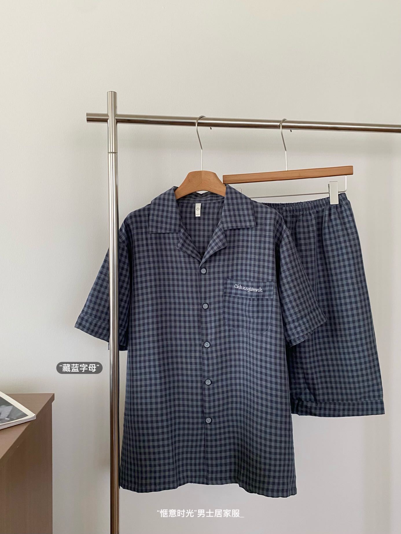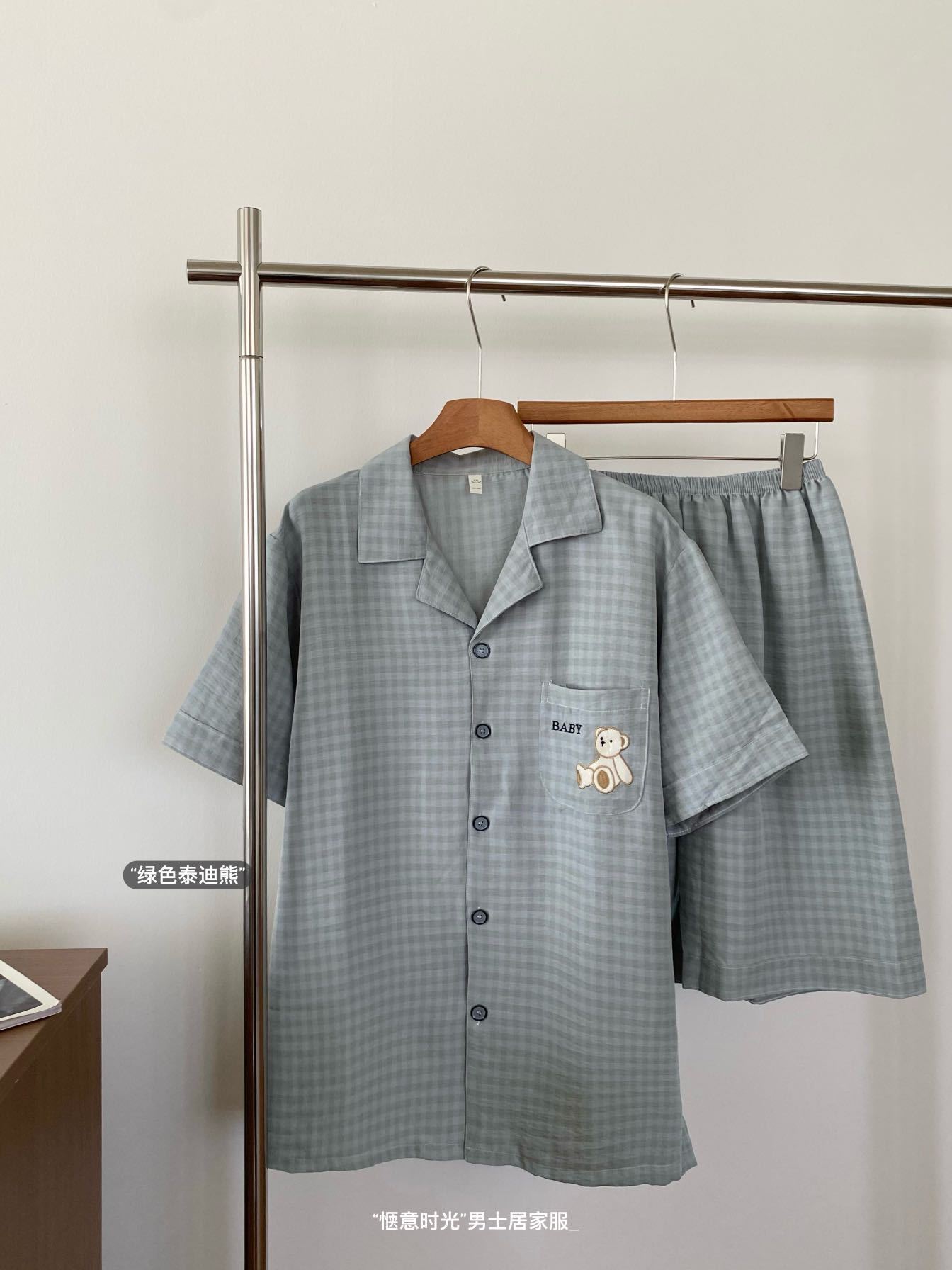 KALUANNIAO 면사 질감 마운틴 스타일 주니어 6619 # 반팔 반바지 남성용 홈웨어 투피스 파자마