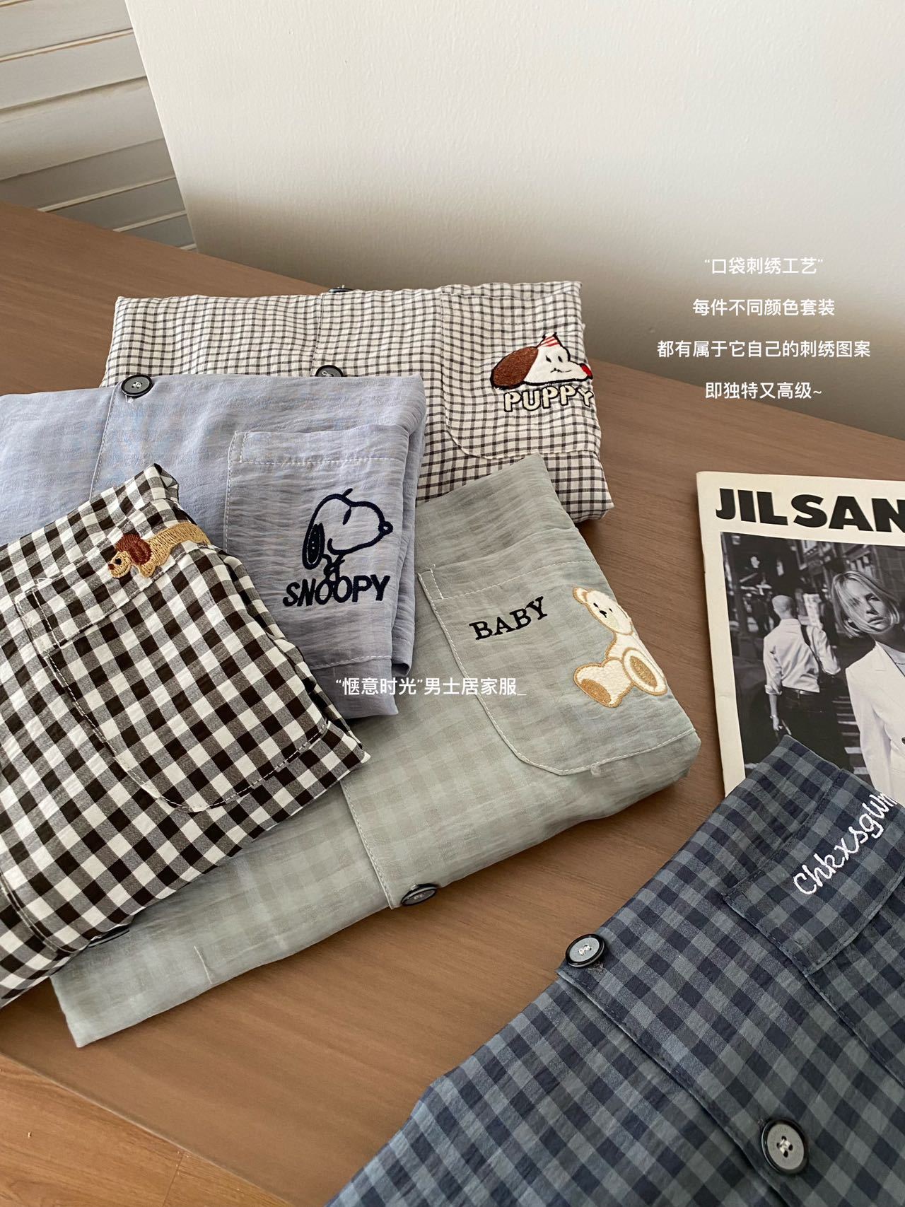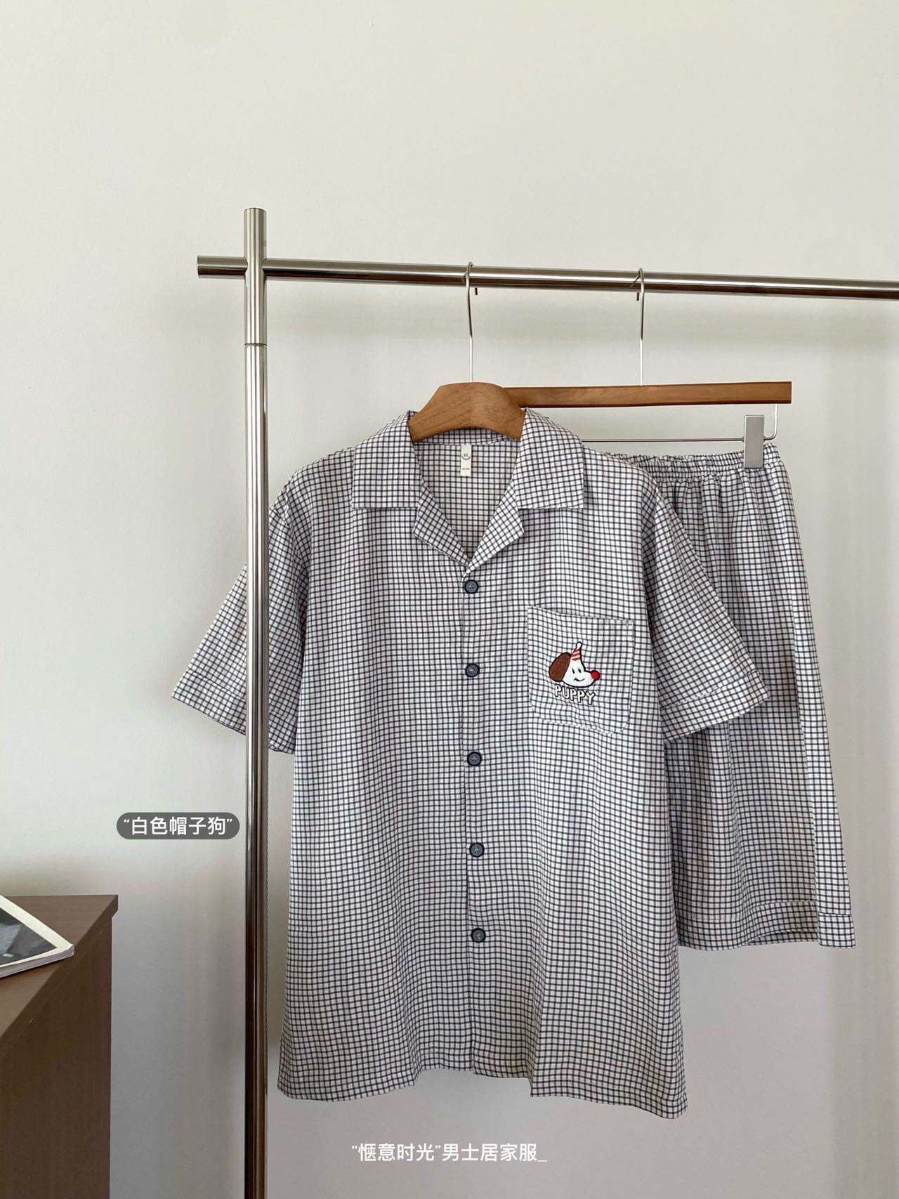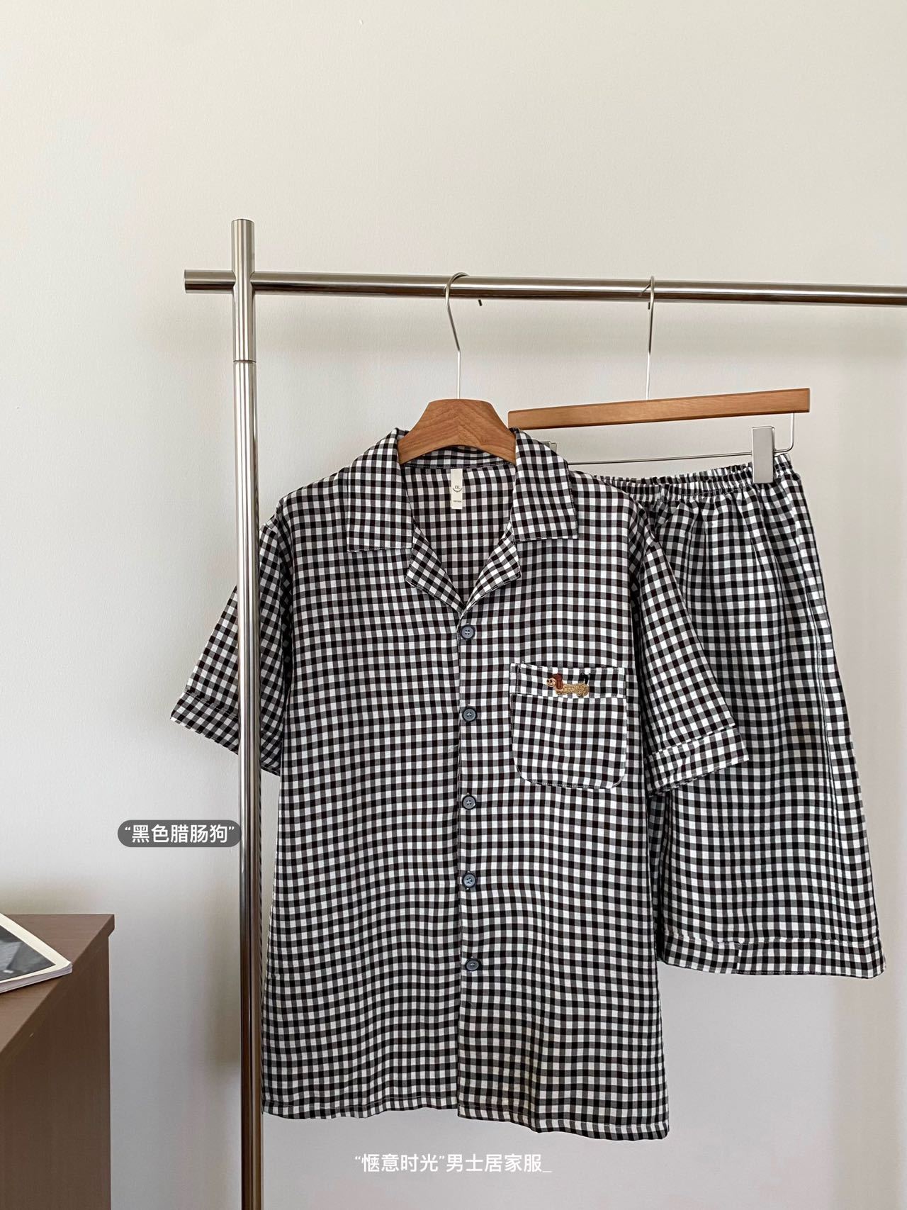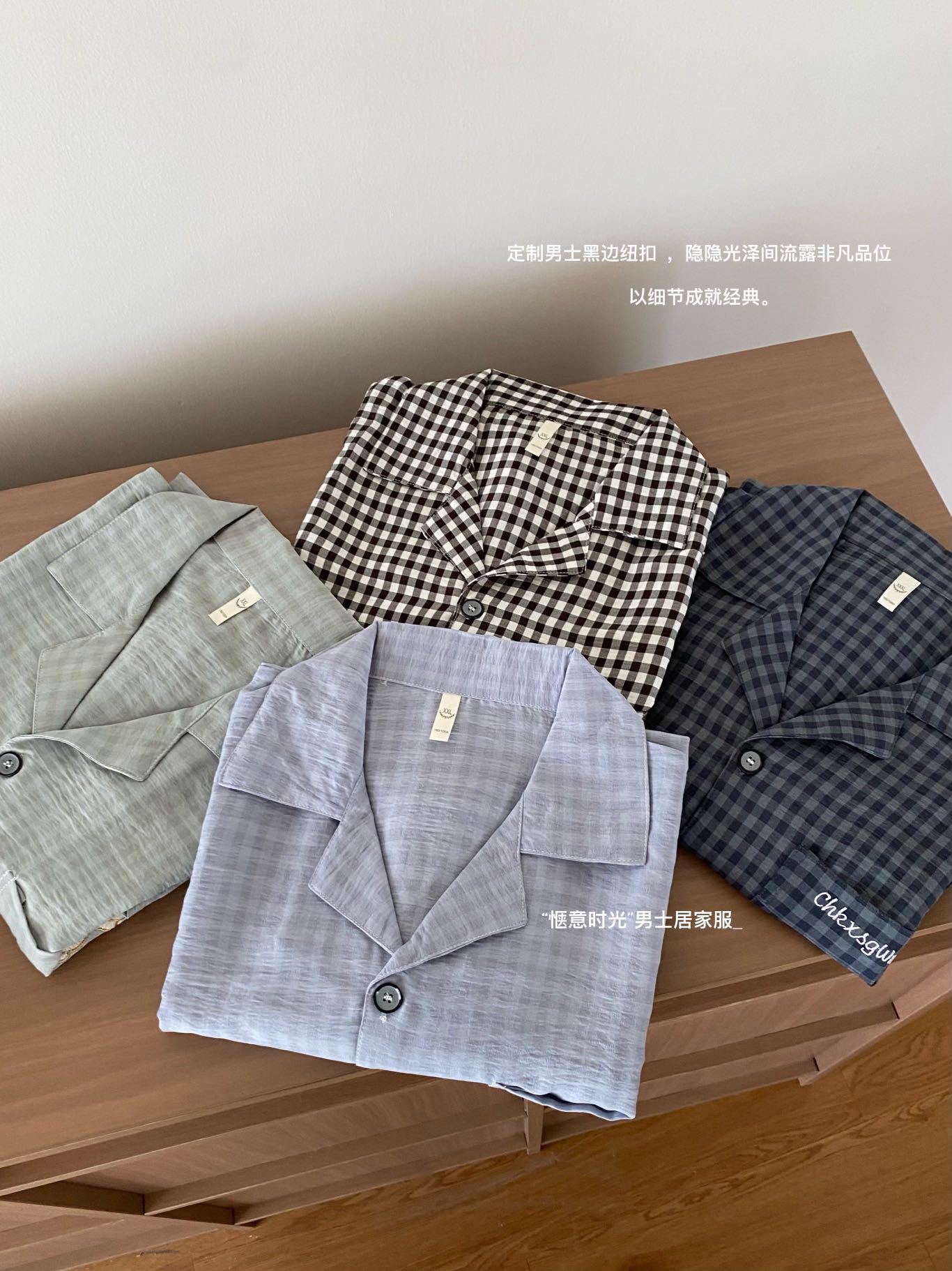 KALUANNIAO 면사 질감 마운틴 스타일 주니어 6619 # 반팔 반바지 남성용 홈웨어 투피스 파자마