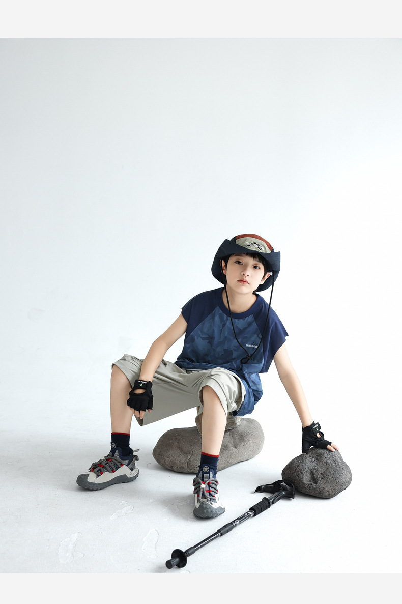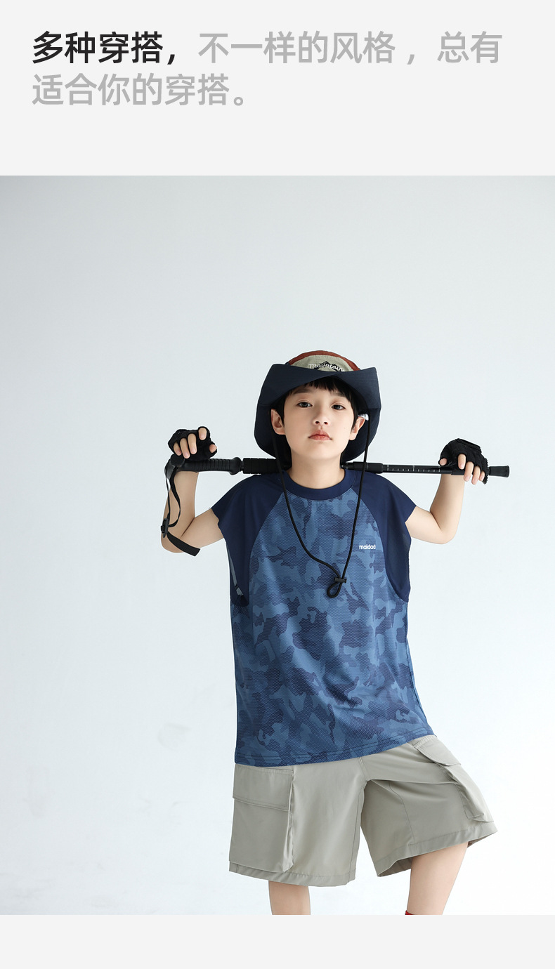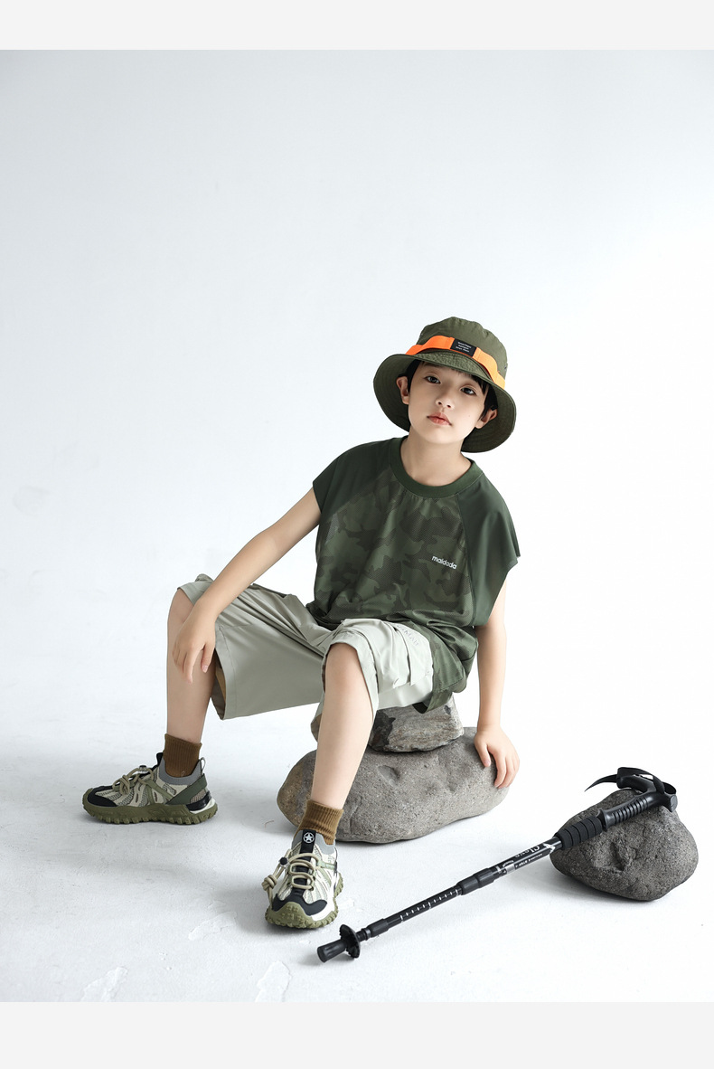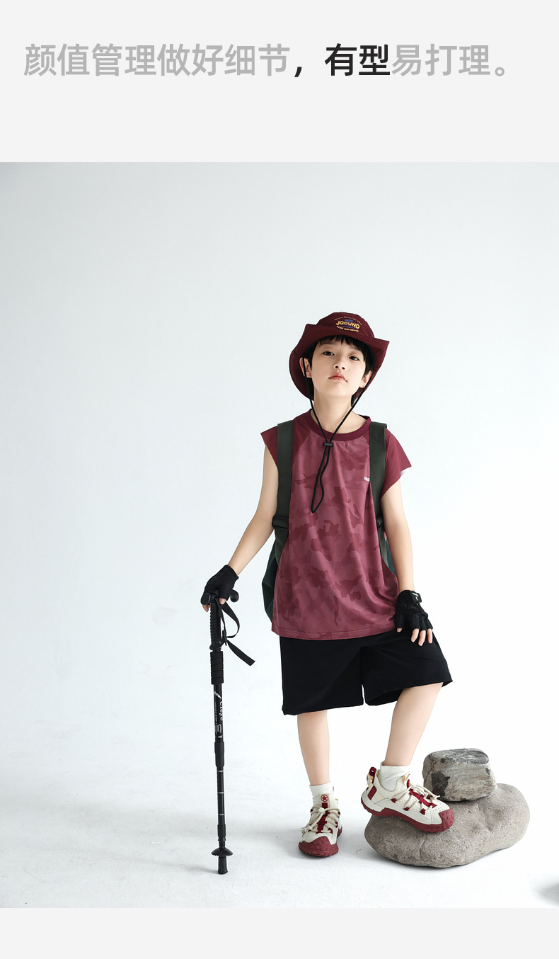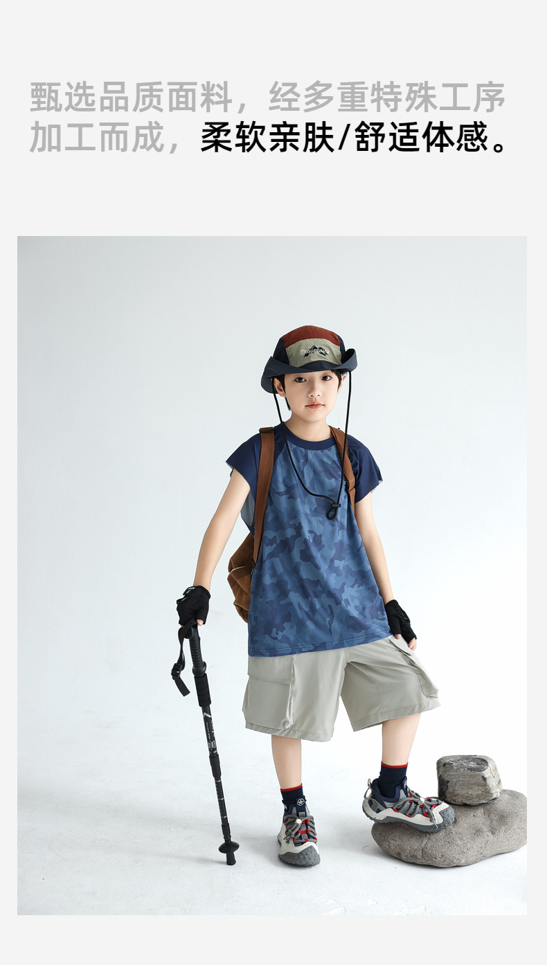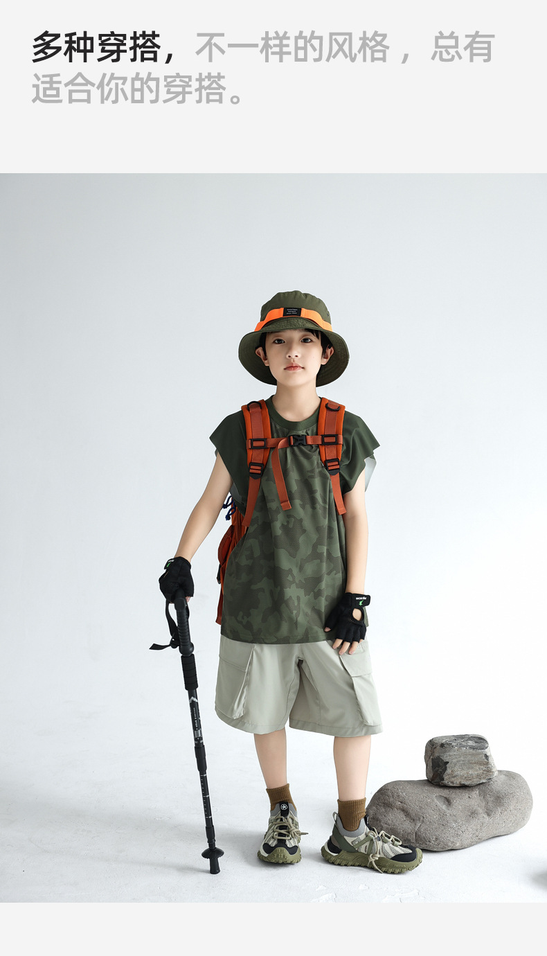 트렌디 한 위장 소년 시원한 속건성 스포츠 조끼 2025 여름 통기성 메쉬 어린이 민소매 티셔츠 도매스토어 가기