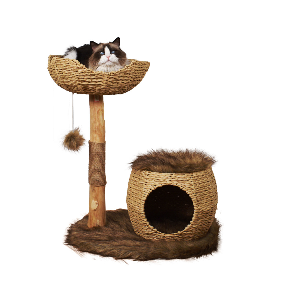 제조업체는 다묘 가족을 위한 원목 기둥과 두꺼운 푹신한 플러시 소재의 안정적인 캣트리, 고양이 점프대, 일체형 고양이 클라이밍 프레임을 공급합니다.