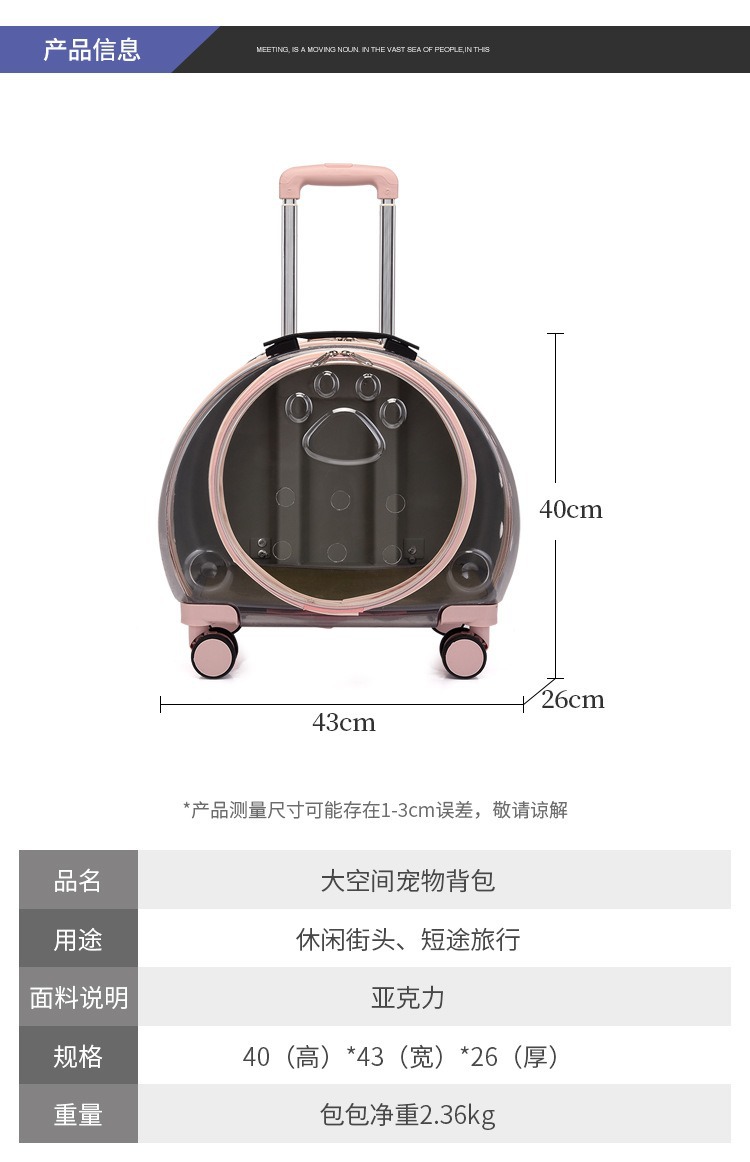투명한 애완동물 트롤리 캐리어, 고양이 가방, 외출시 편리한 애완동물 가방, 버블 박스, 휴대용 우주 캡슐, 애완견 외출 배낭