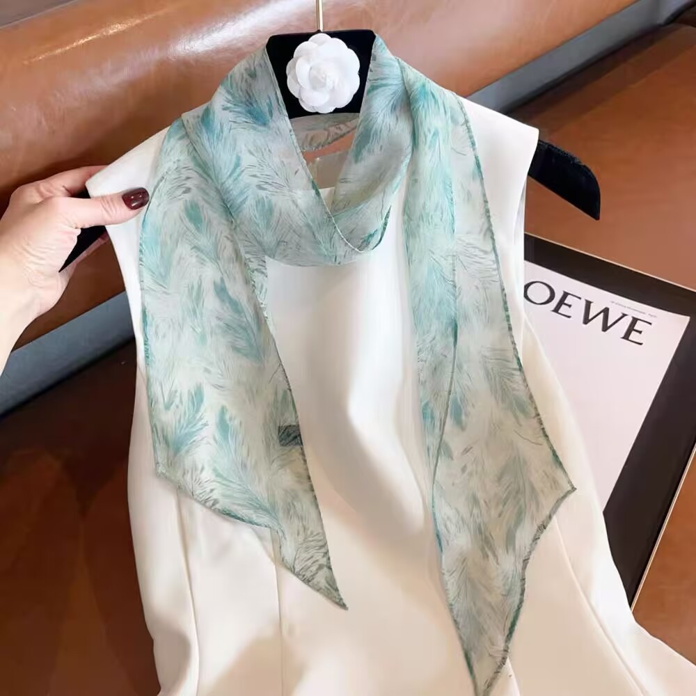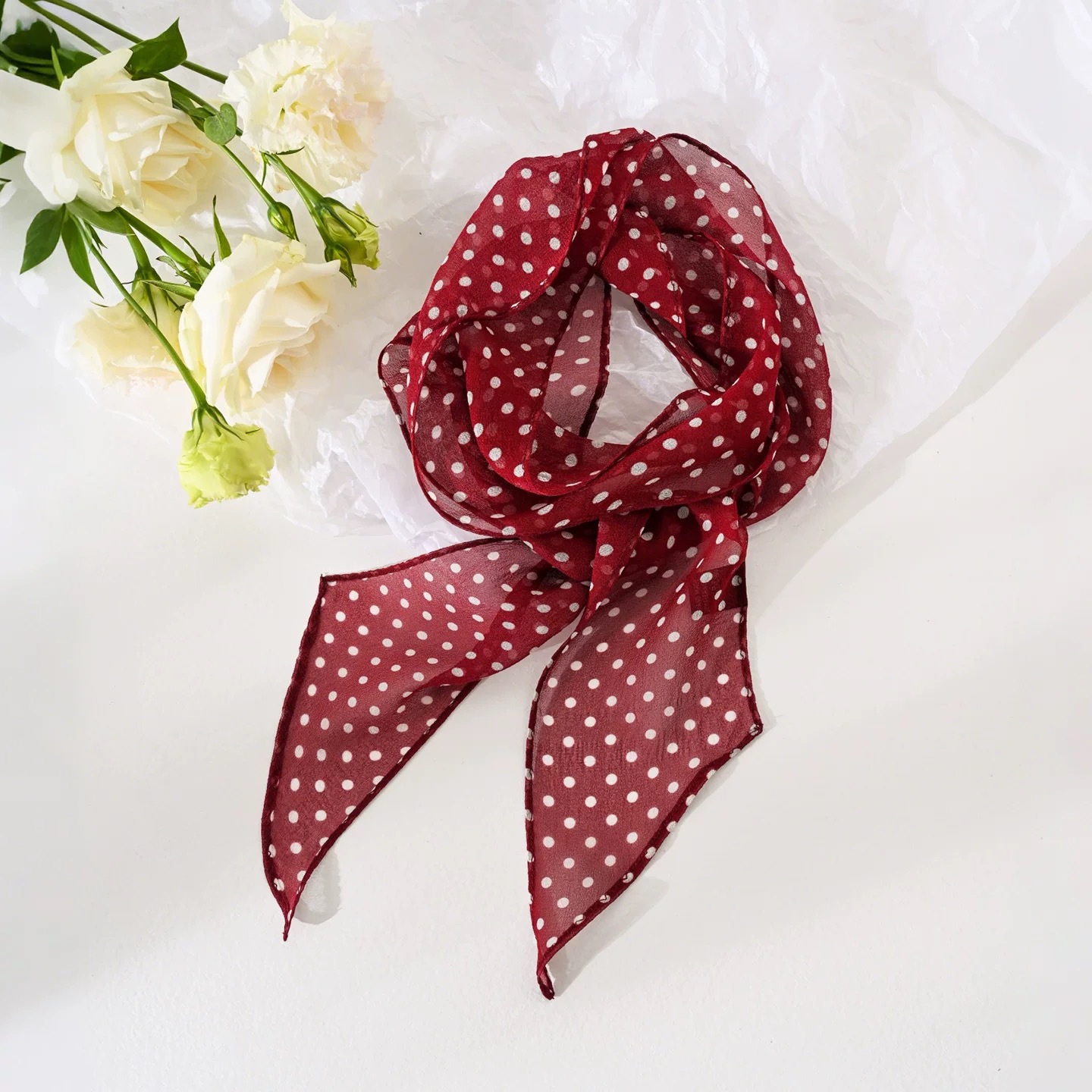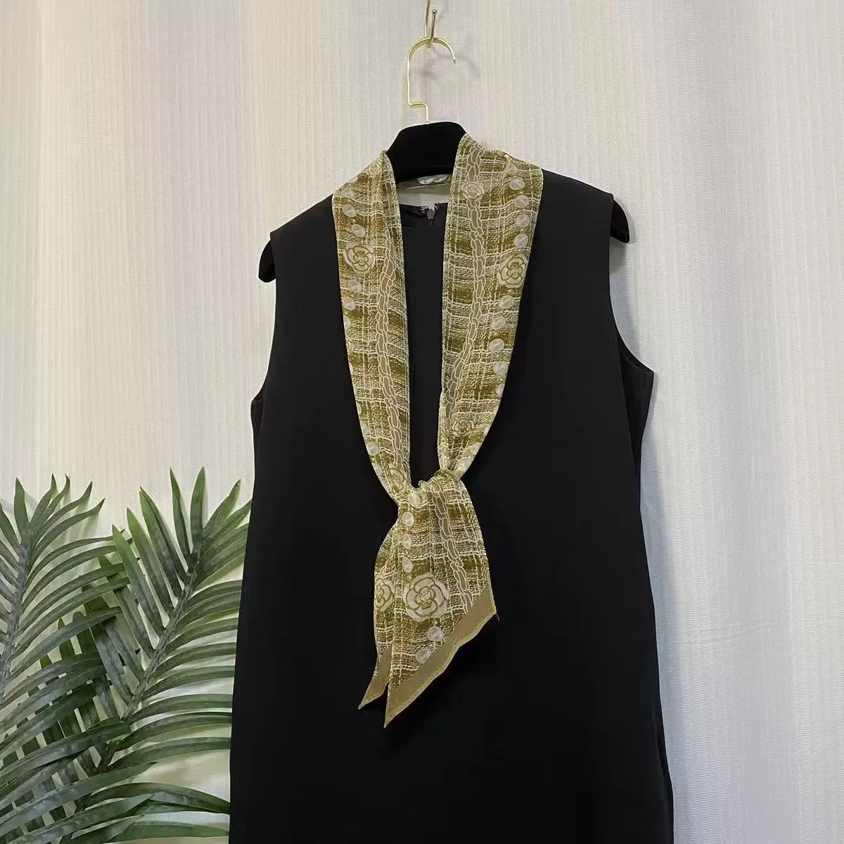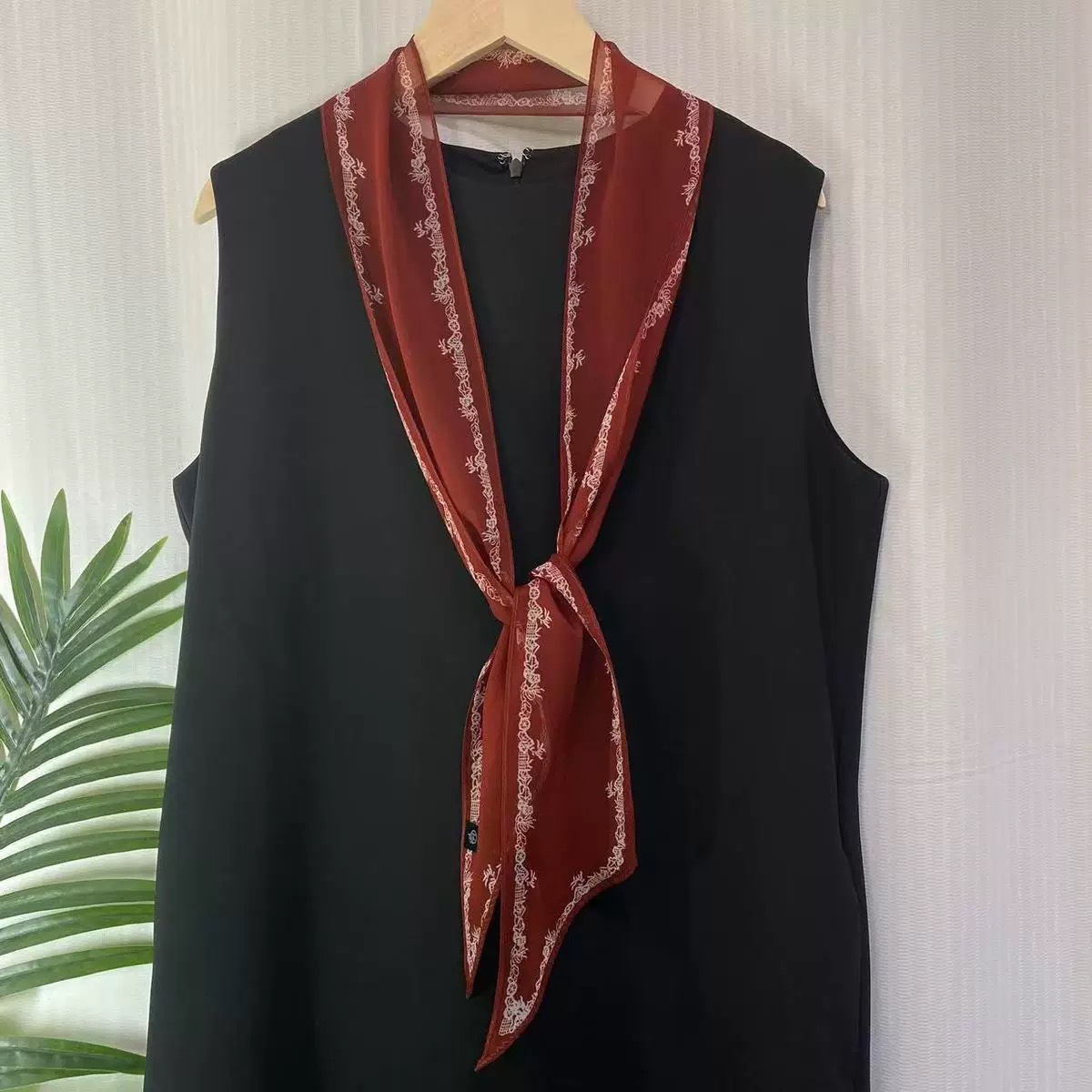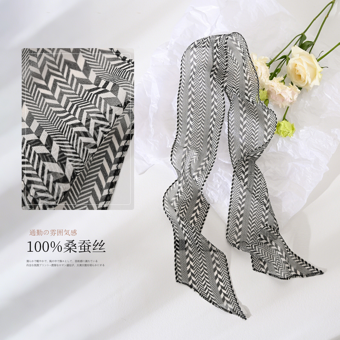 여름 상큼하고 통기성이 좋은 얇은 실크 스카프 100% 뽕나무 실크 숨겨진 체크 무늬 조젯 스트립 스커트가 있는 여성용 작은 스카프