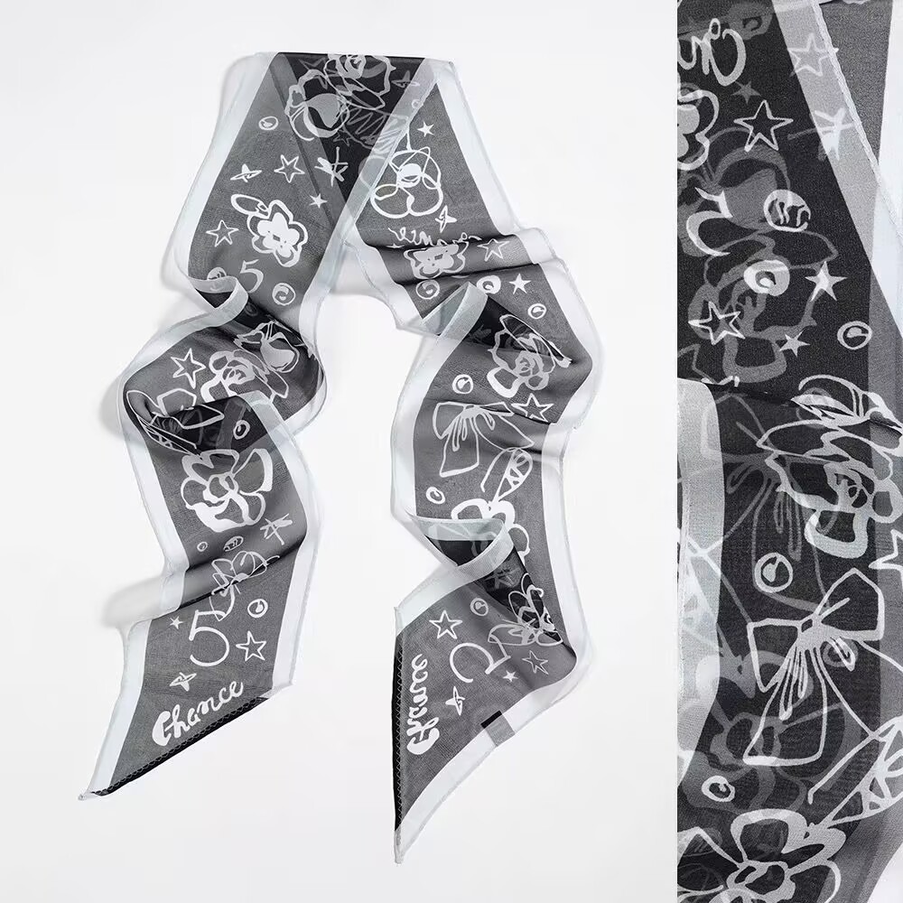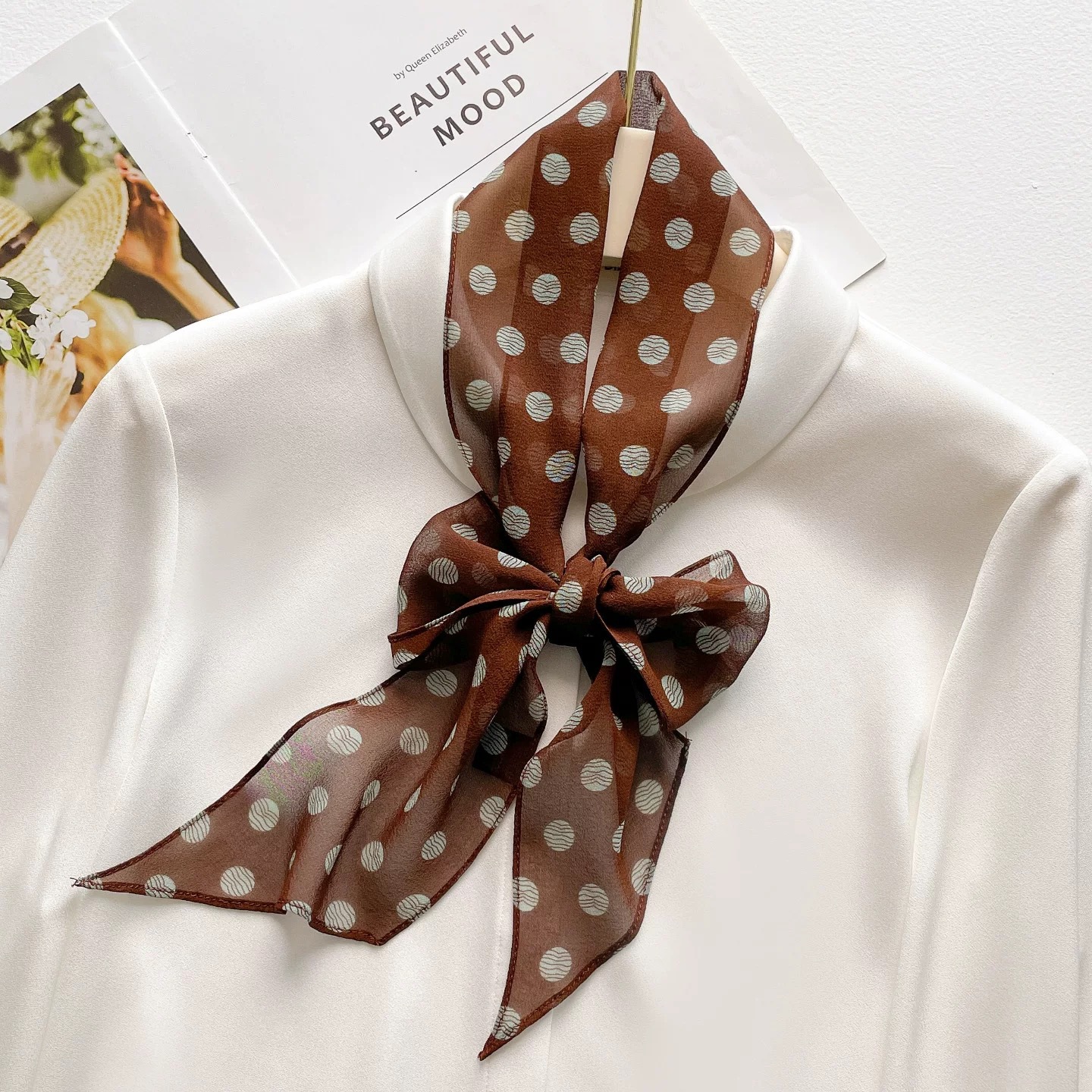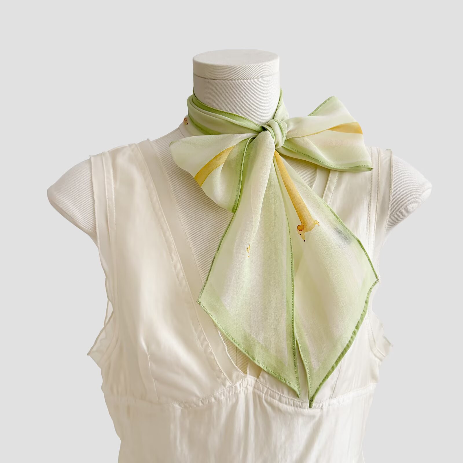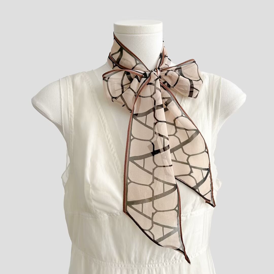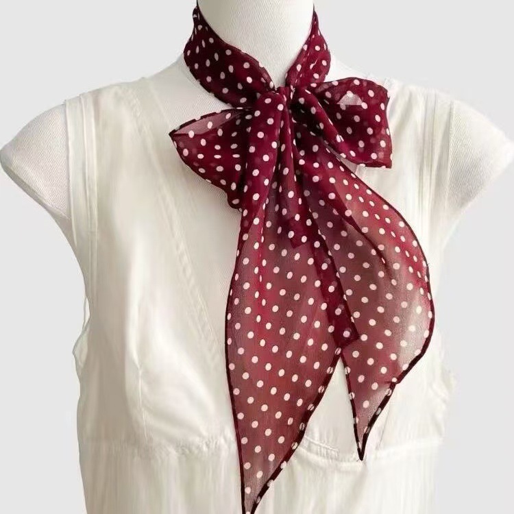 여름 상큼하고 통기성이 좋은 얇은 실크 스카프 100% 뽕나무 실크 숨겨진 체크 무늬 조젯 스트립 스커트가 있는 여성용 작은 스카프