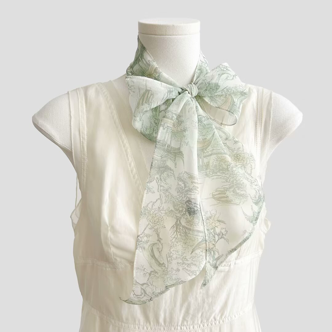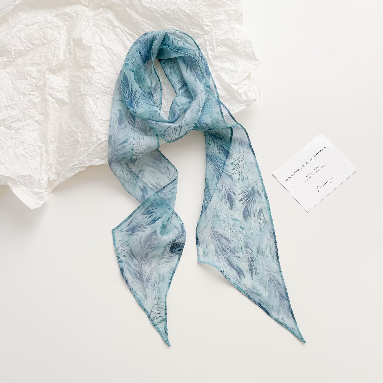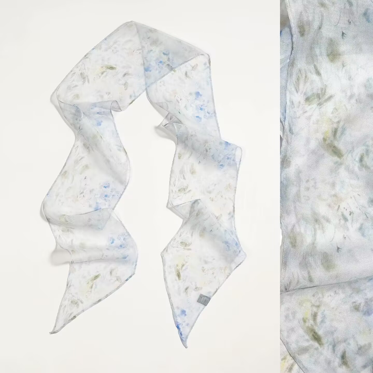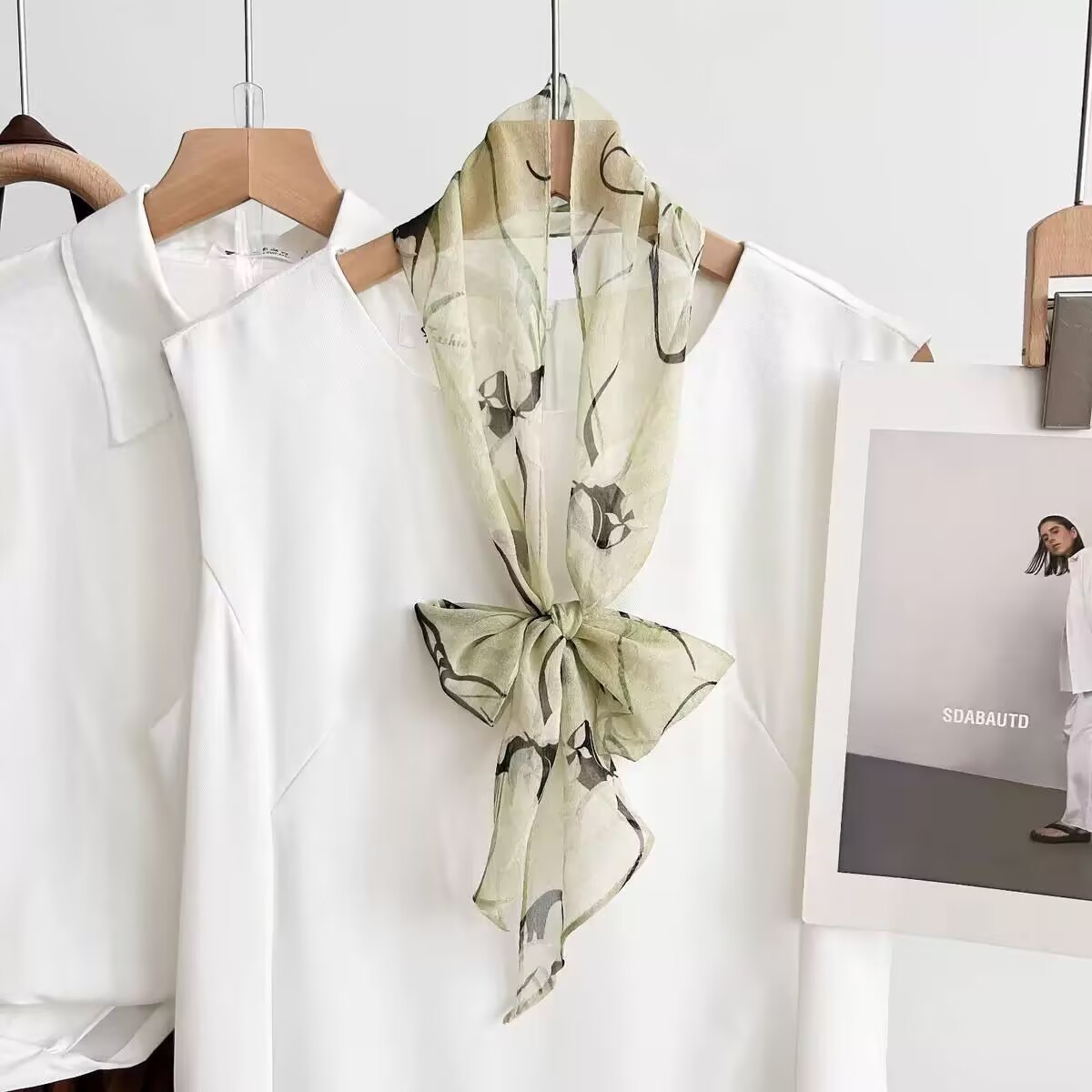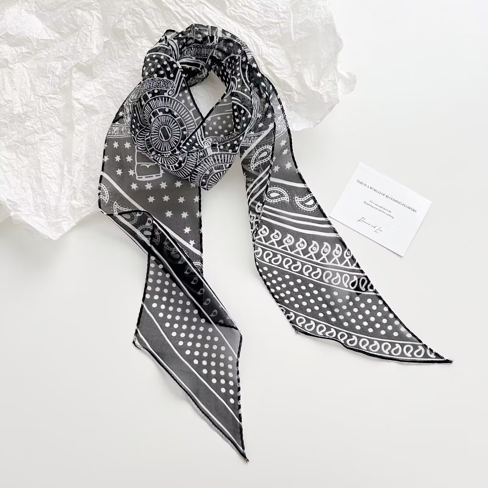 여름 상큼하고 통기성이 좋은 얇은 실크 스카프 100% 뽕나무 실크 숨겨진 체크 무늬 조젯 스트립 스커트가 있는 여성용 작은 스카프