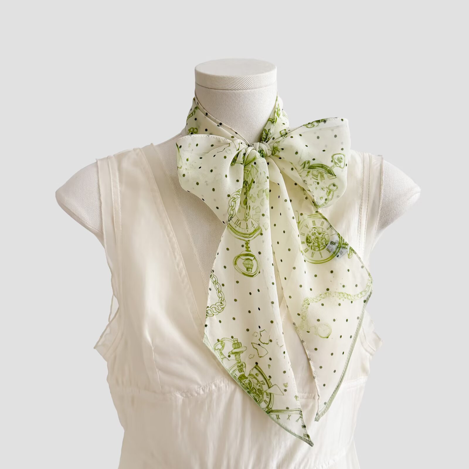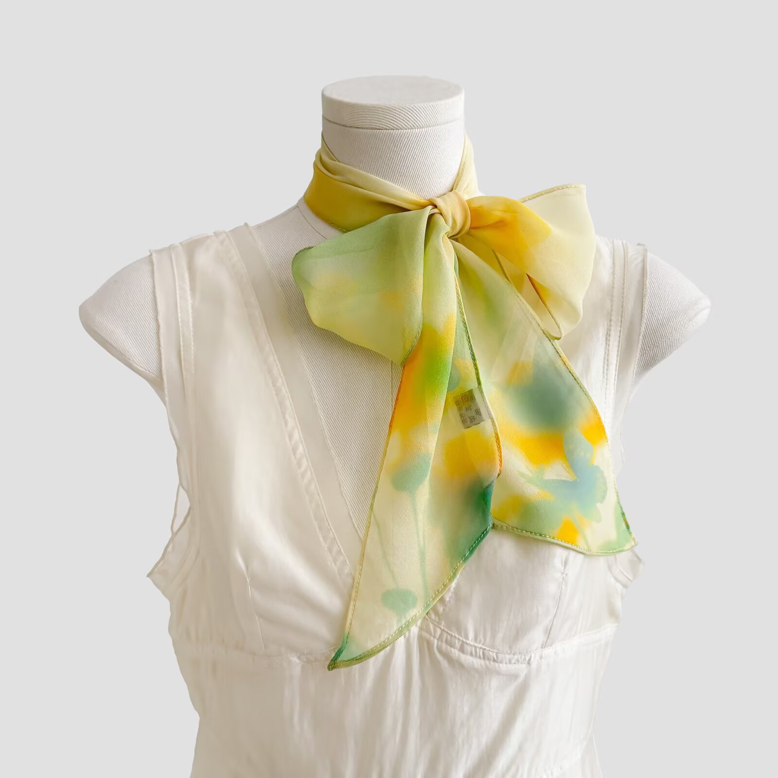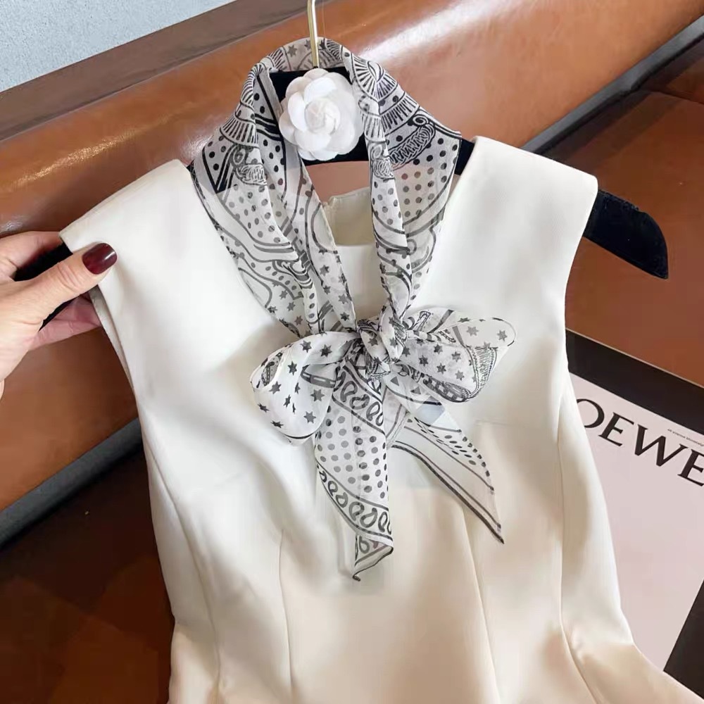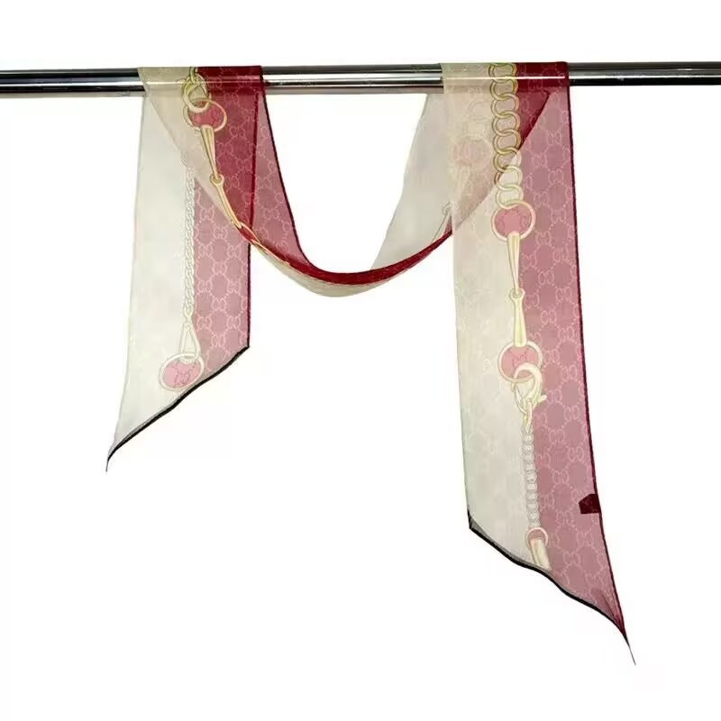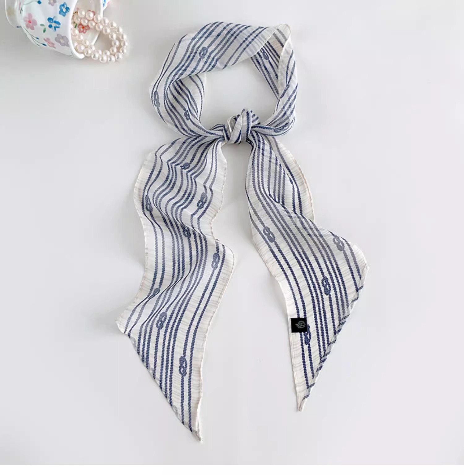 여름 상큼하고 통기성이 좋은 얇은 실크 스카프 100% 뽕나무 실크 숨겨진 체크 무늬 조젯 스트립 스커트가 있는 여성용 작은 스카프