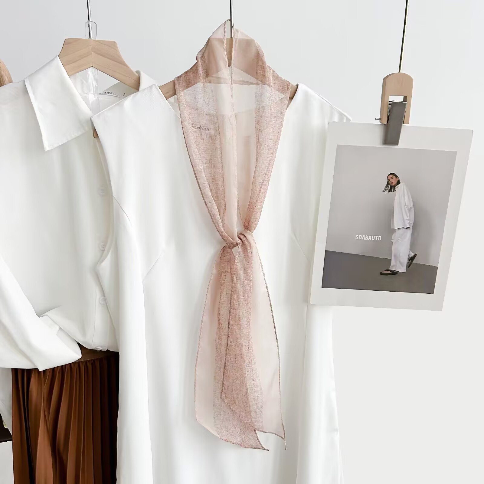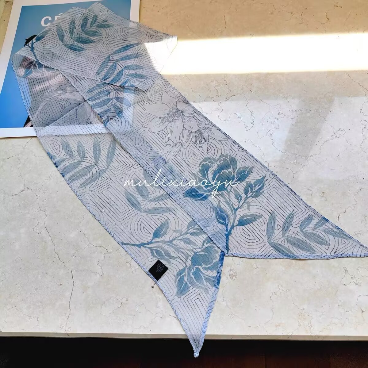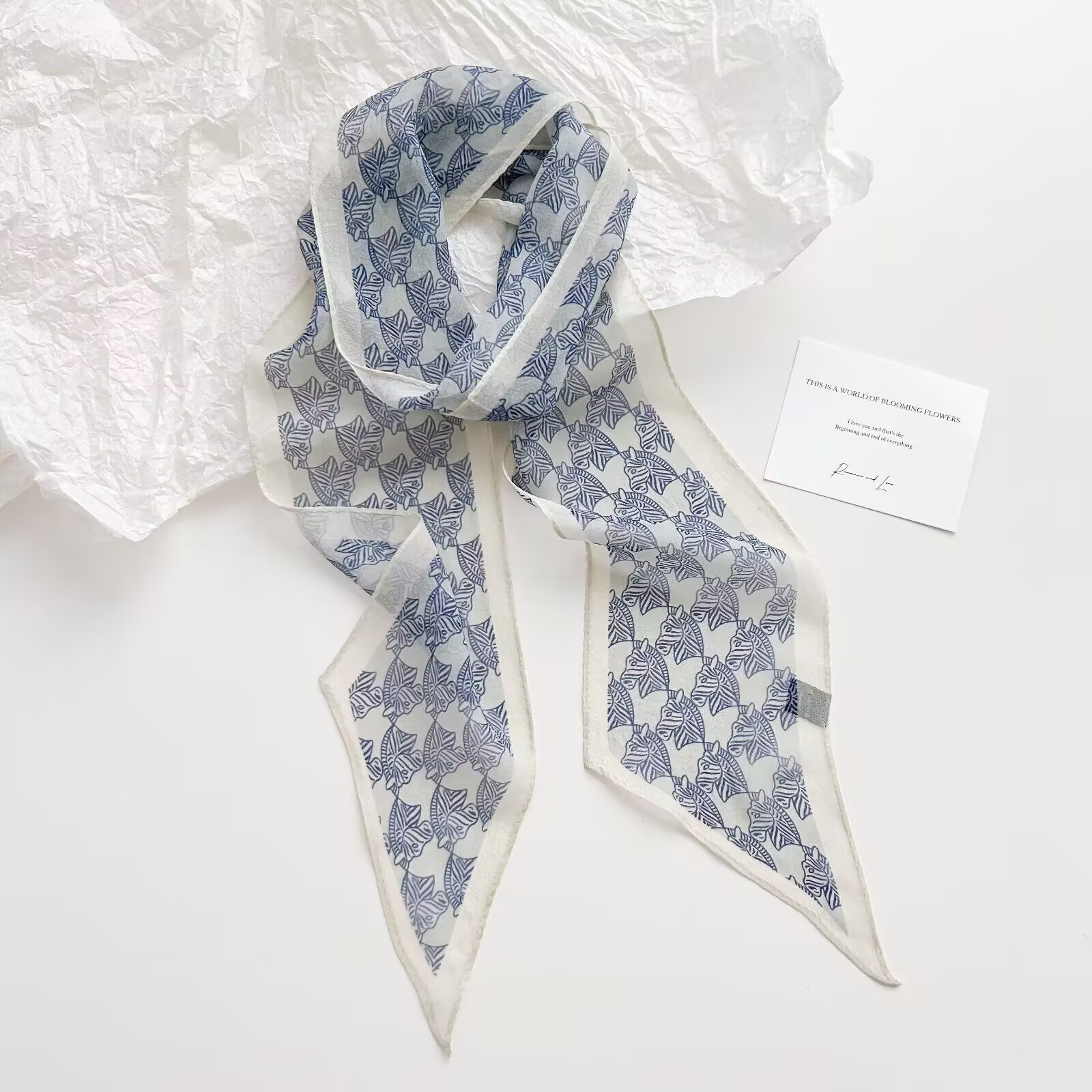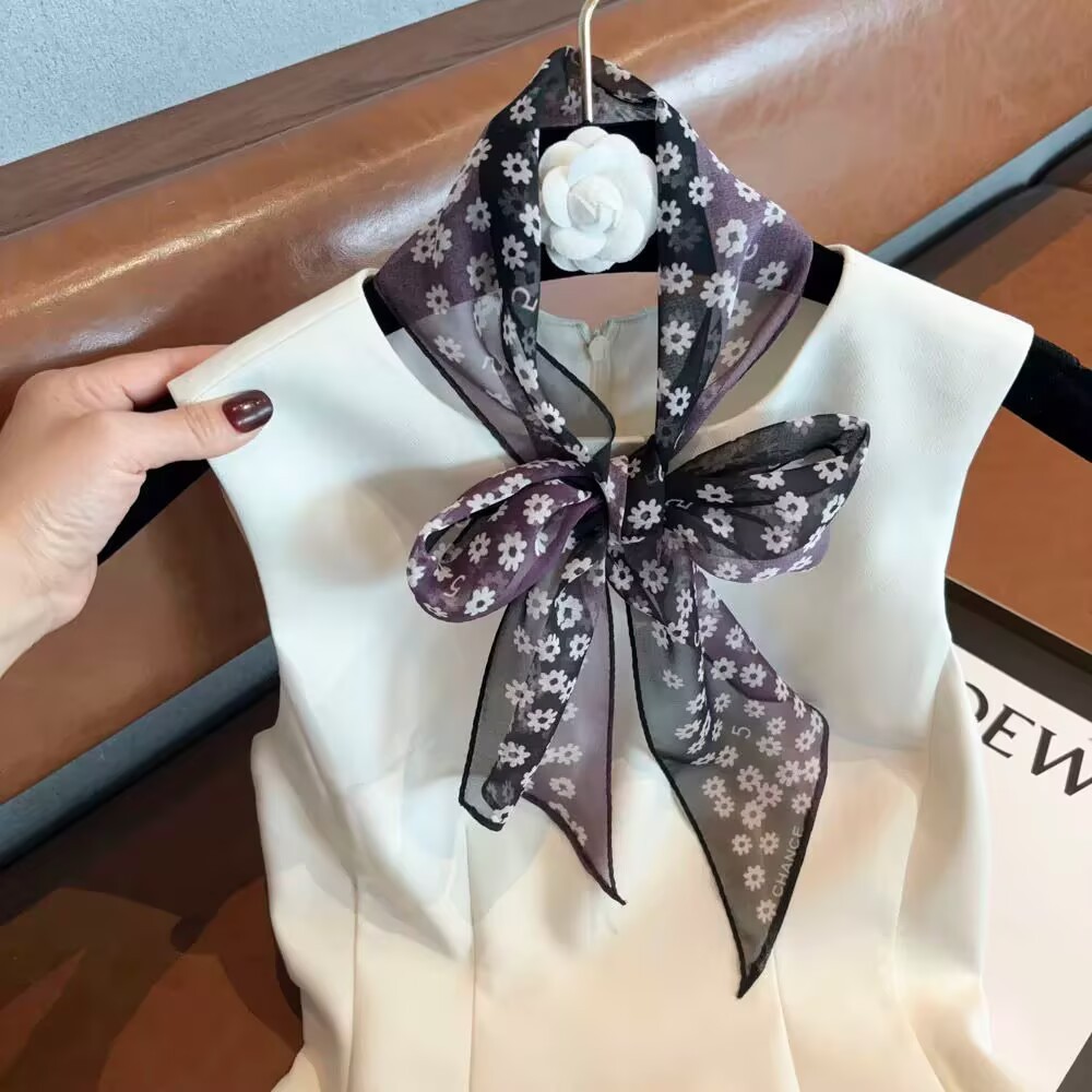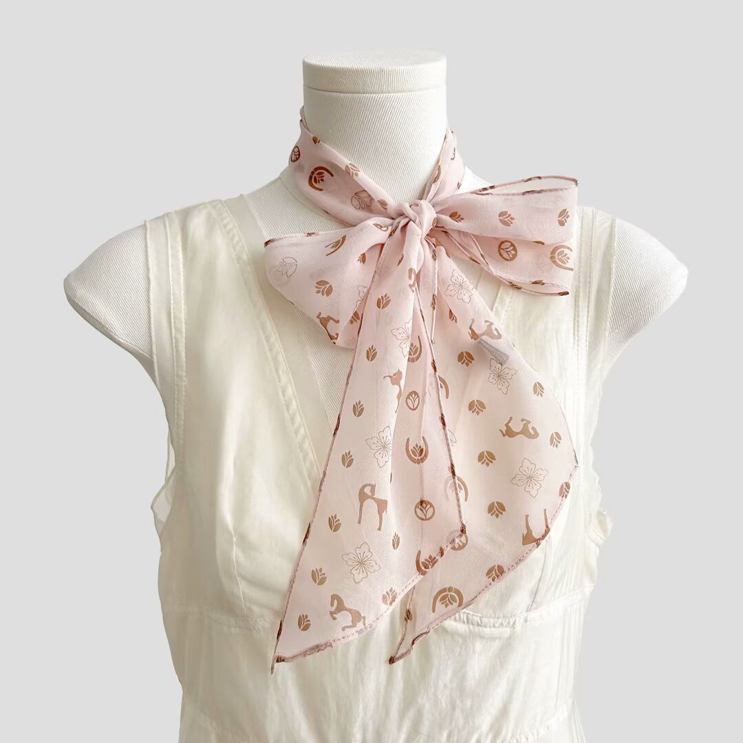 여름 상큼하고 통기성이 좋은 얇은 실크 스카프 100% 뽕나무 실크 숨겨진 체크 무늬 조젯 스트립 스커트가 있는 여성용 작은 스카프