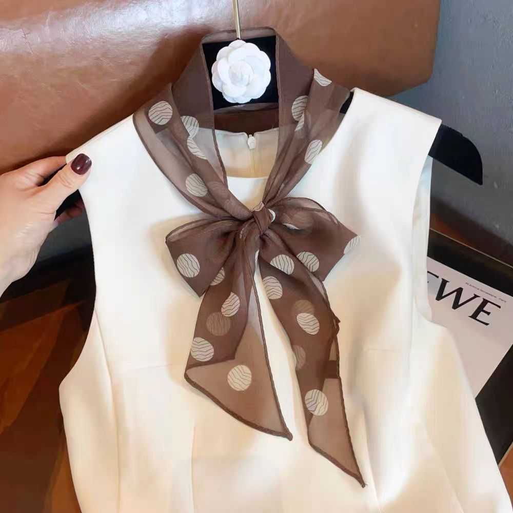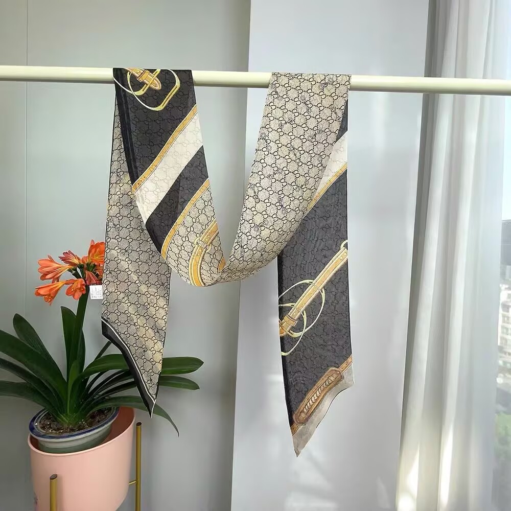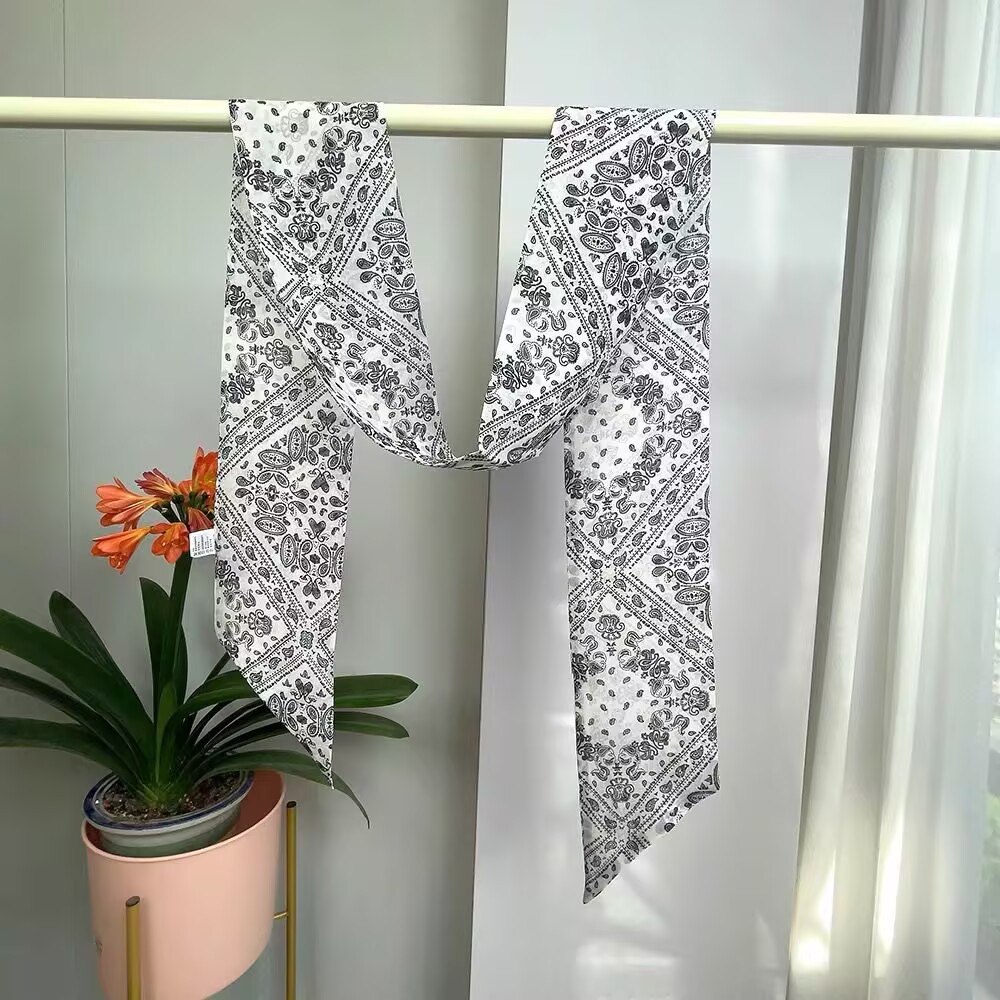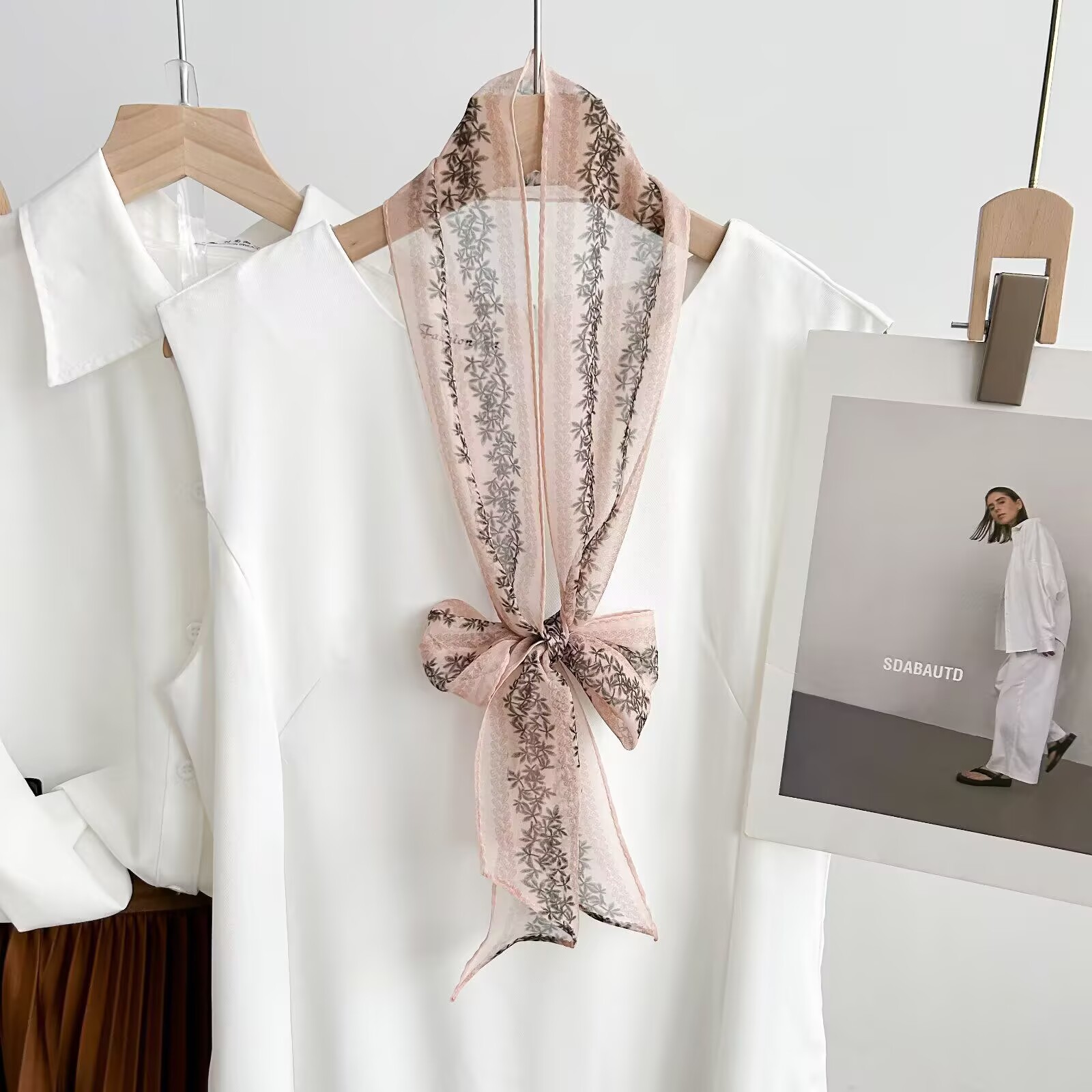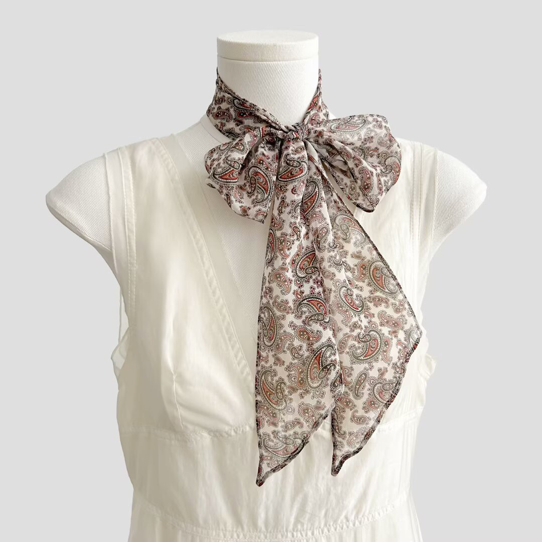 여름 상큼하고 통기성이 좋은 얇은 실크 스카프 100% 뽕나무 실크 숨겨진 체크 무늬 조젯 스트립 스커트가 있는 여성용 작은 스카프