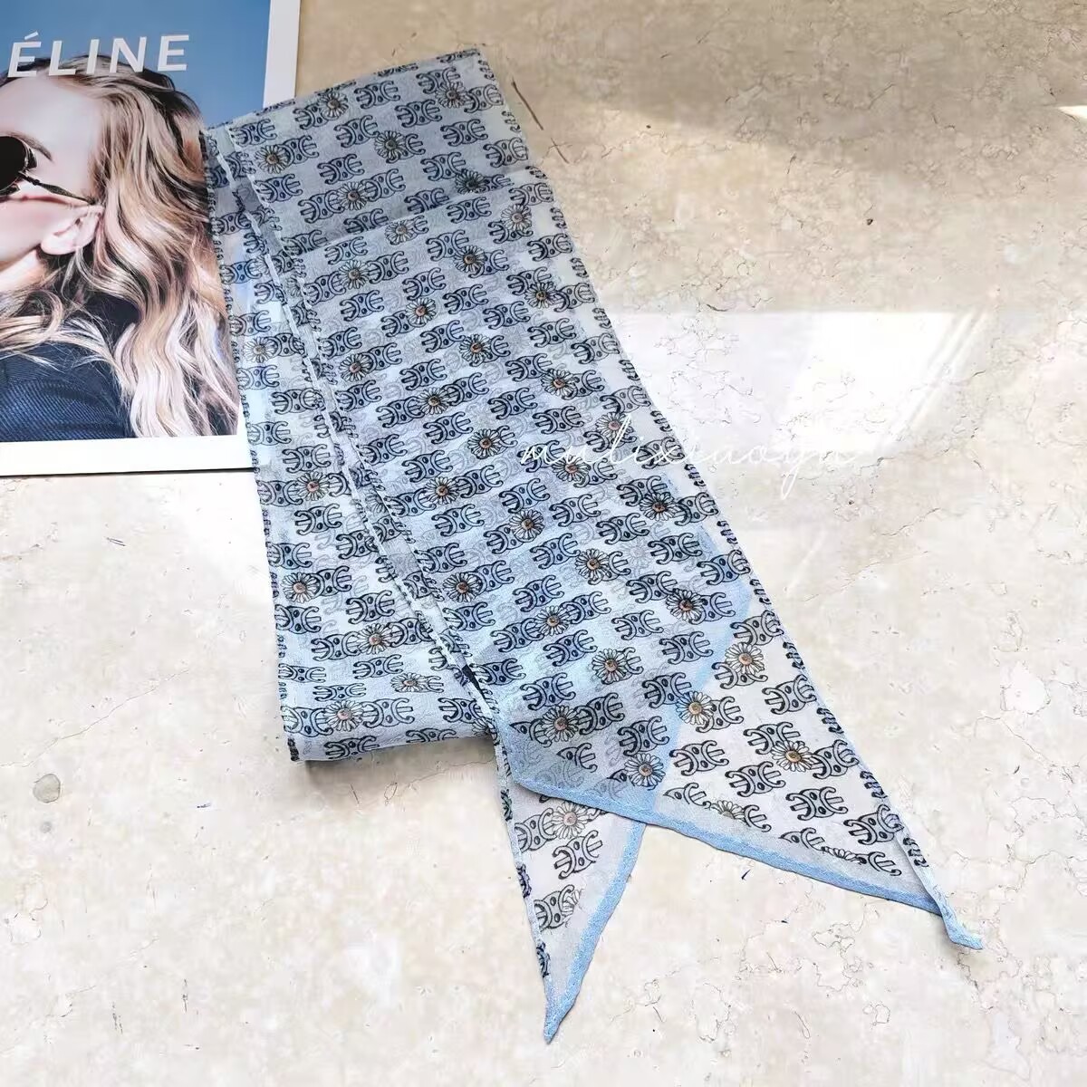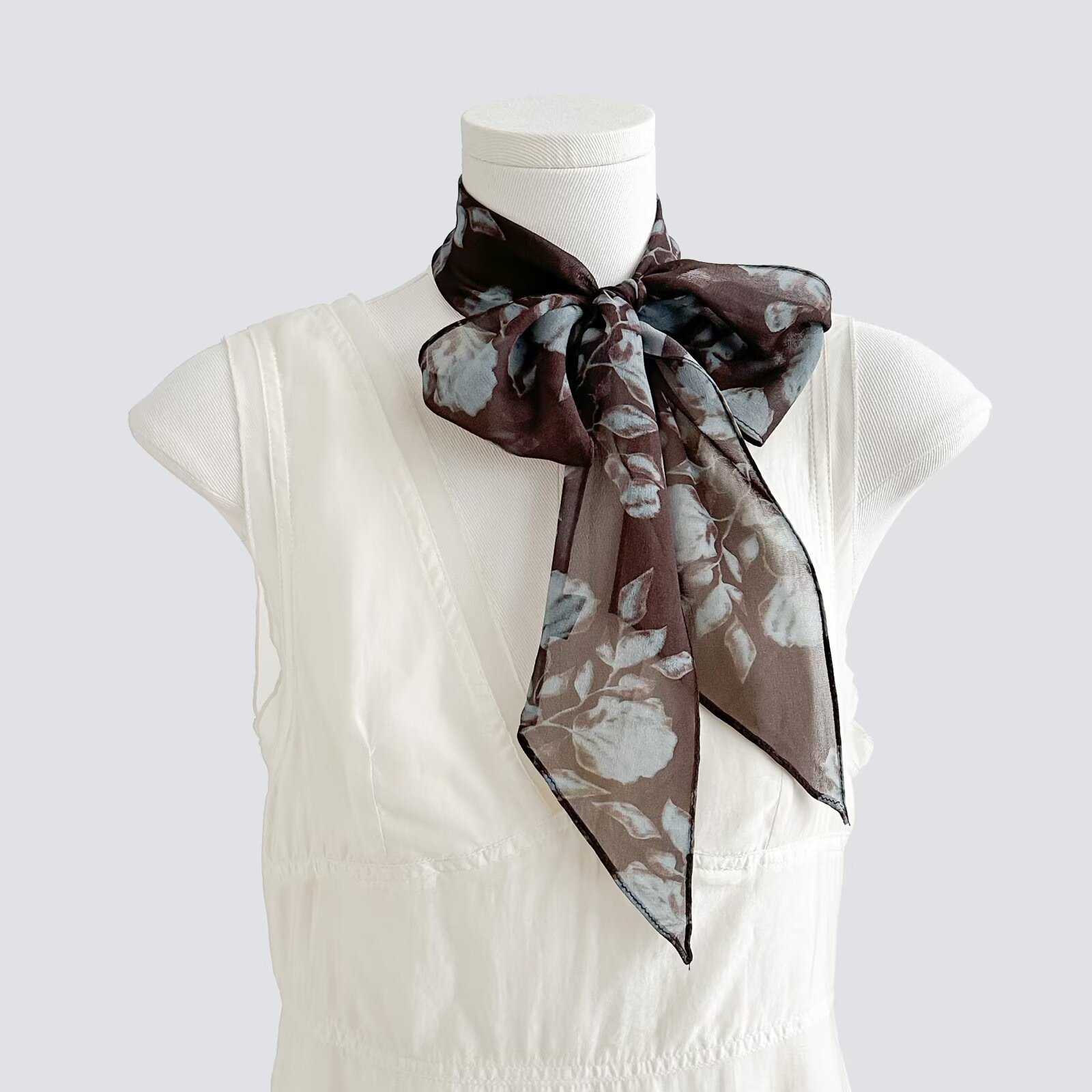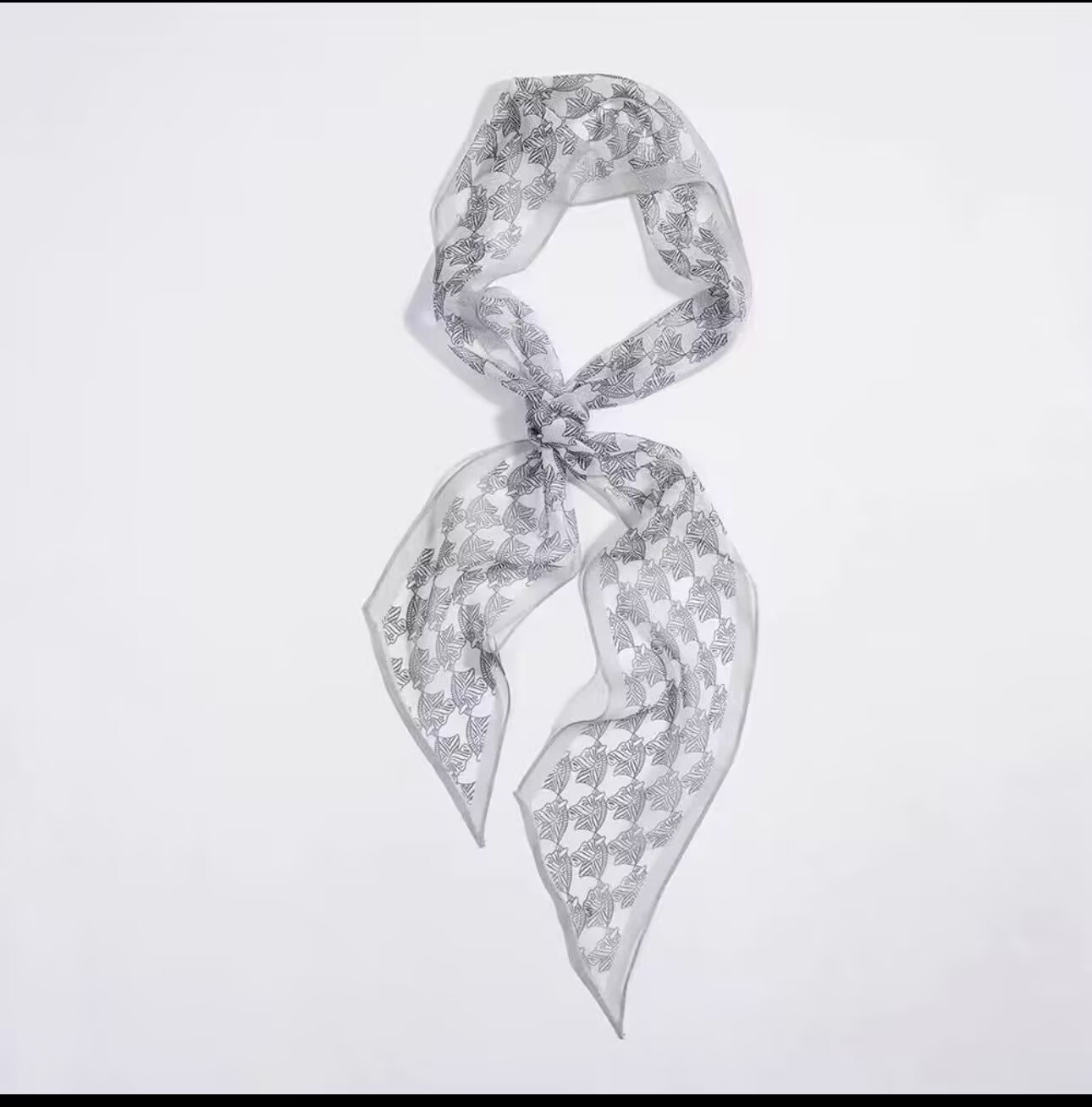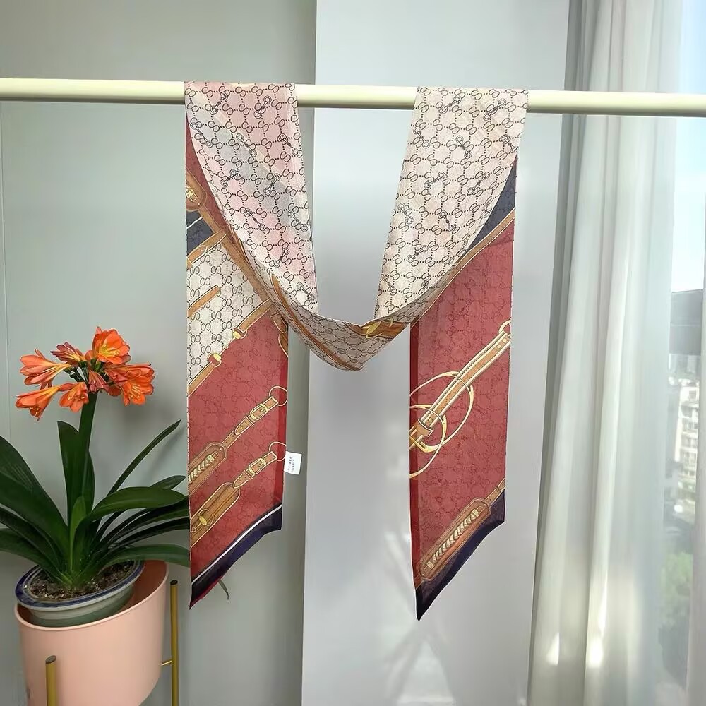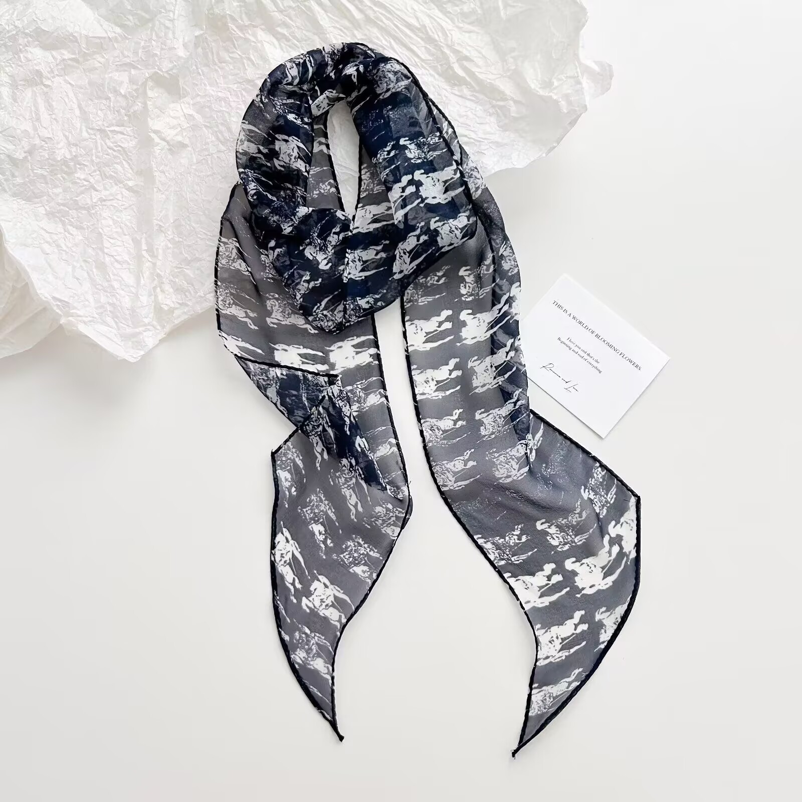 여름 상큼하고 통기성이 좋은 얇은 실크 스카프 100% 뽕나무 실크 숨겨진 체크 무늬 조젯 스트립 스커트가 있는 여성용 작은 스카프