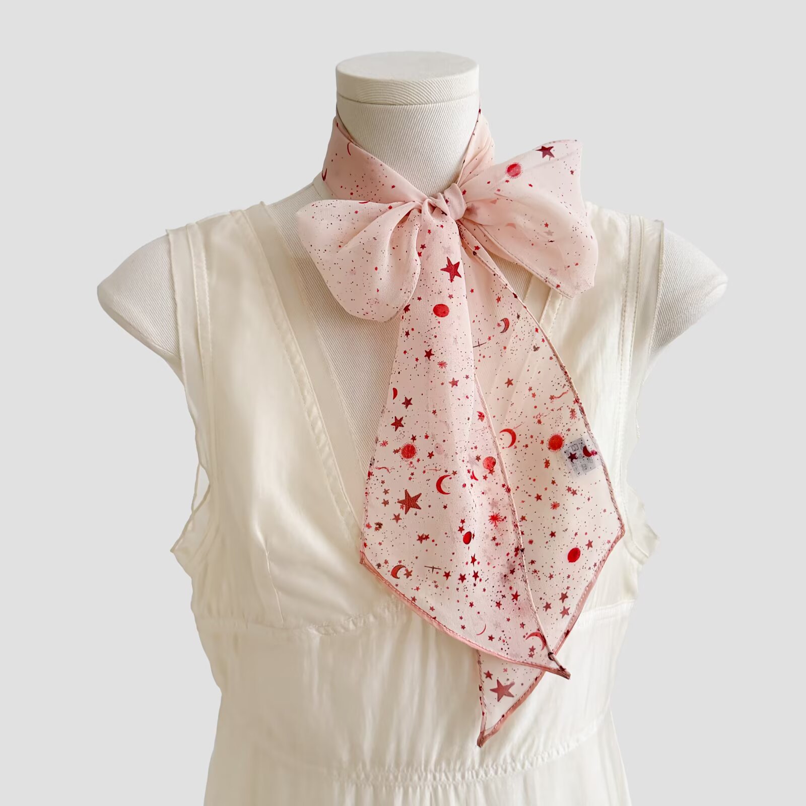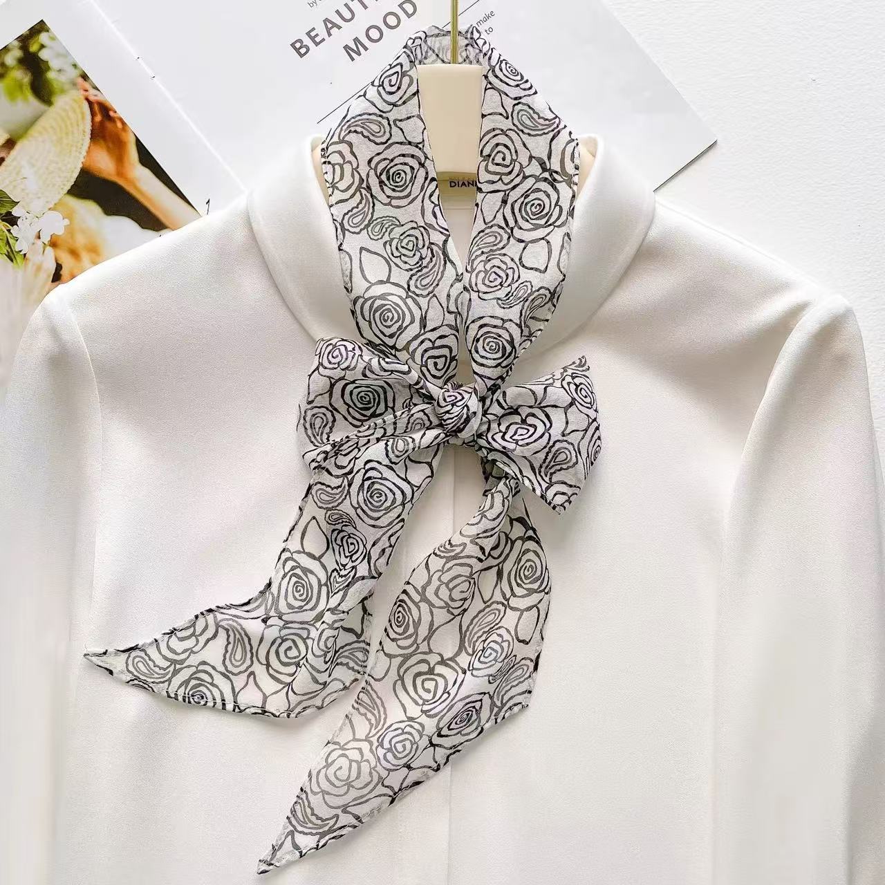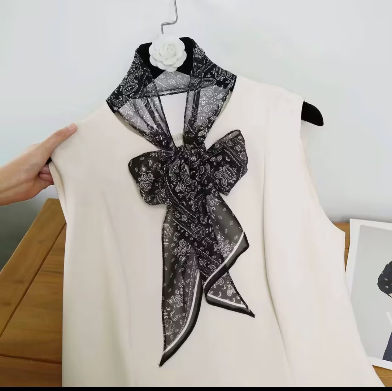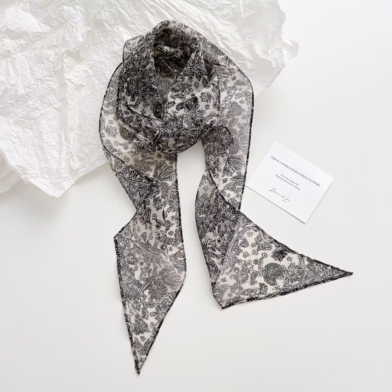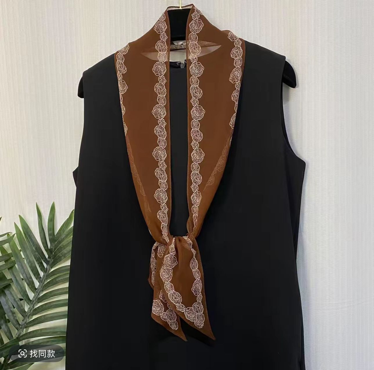 여름 상큼하고 통기성이 좋은 얇은 실크 스카프 100% 뽕나무 실크 숨겨진 체크 무늬 조젯 스트립 스커트가 있는 여성용 작은 스카프