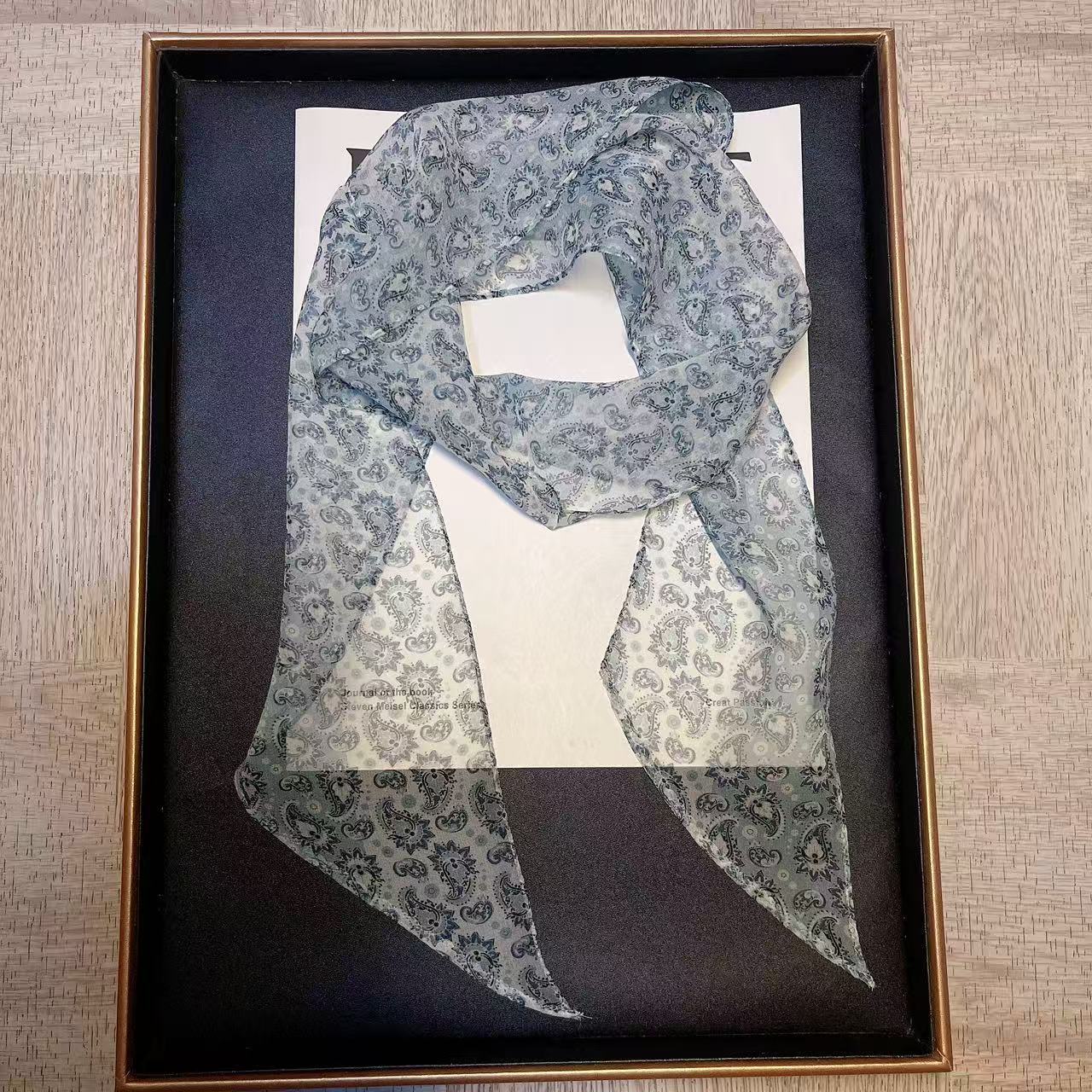 여름 상큼하고 통기성이 좋은 얇은 실크 스카프 100% 뽕나무 실크 숨겨진 체크 무늬 조젯 스트립 스커트가 있는 여성용 작은 스카프스토어 가기