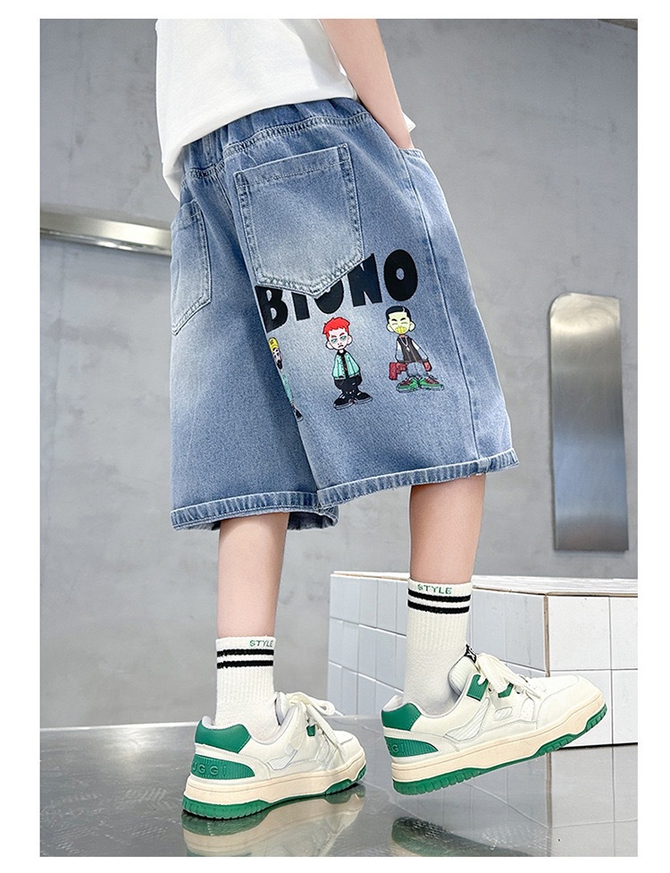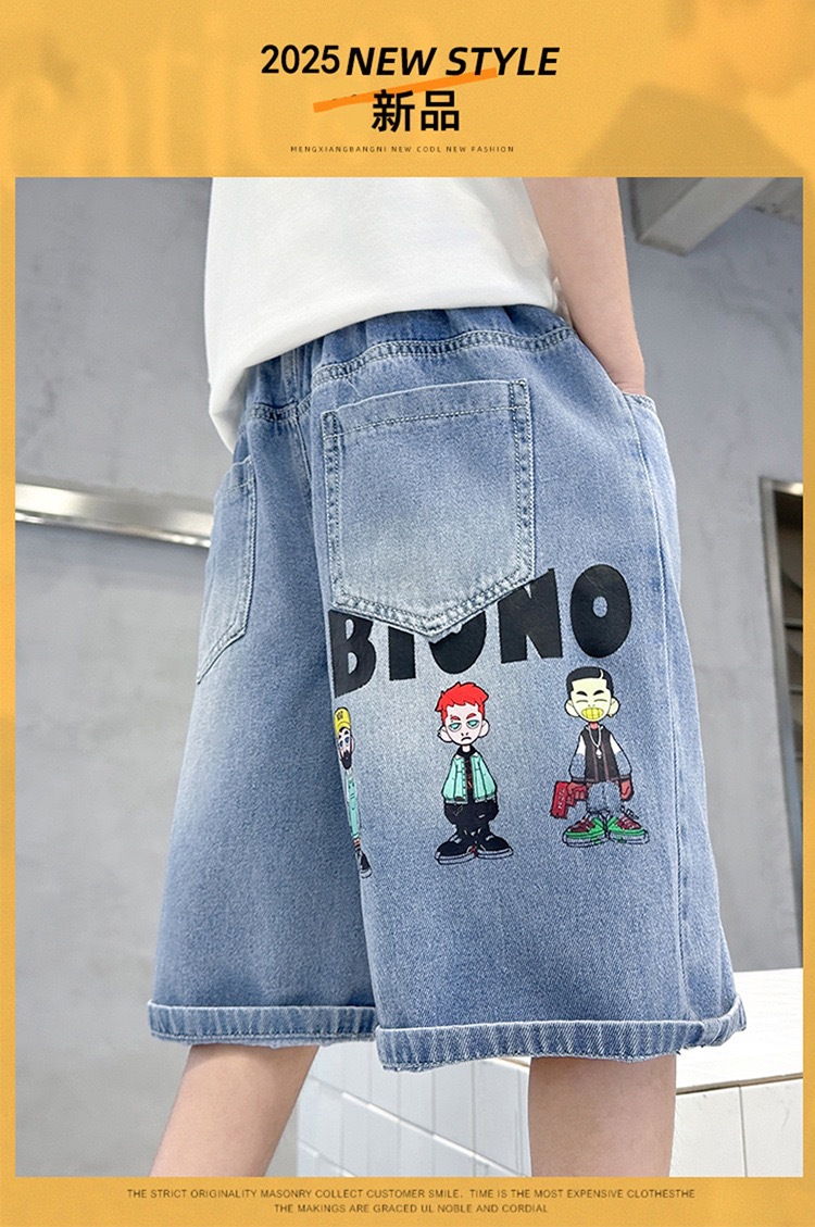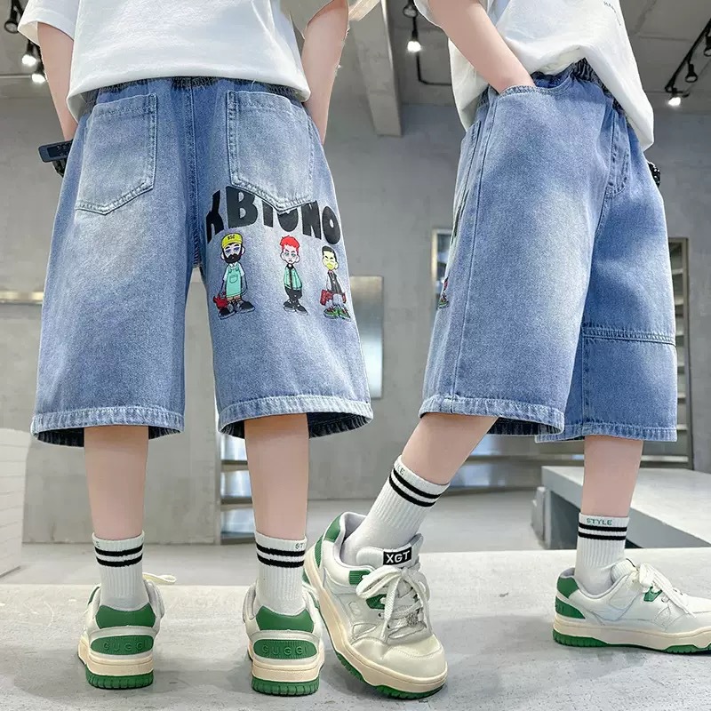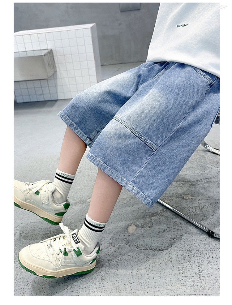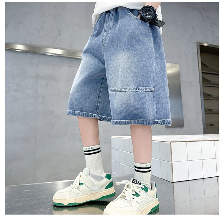 소년 여름 반바지 2025 새로운 큰 어린이 여름 얇은 소년 중간 바지 어린이 데님 5 점 바지 겉옷