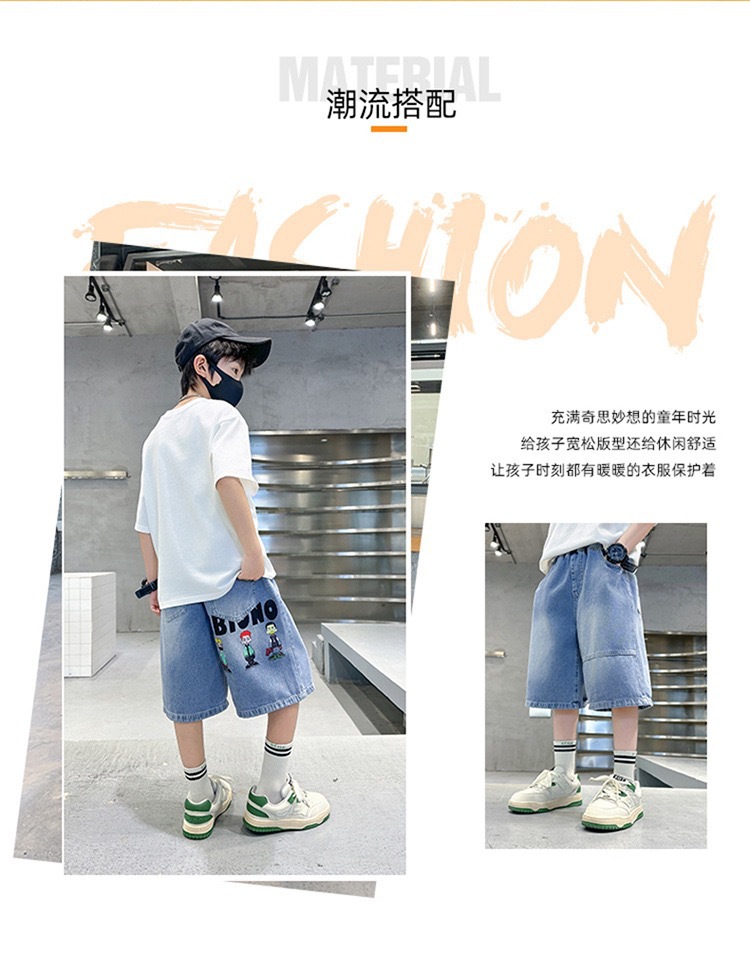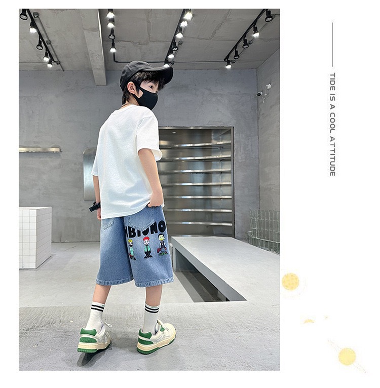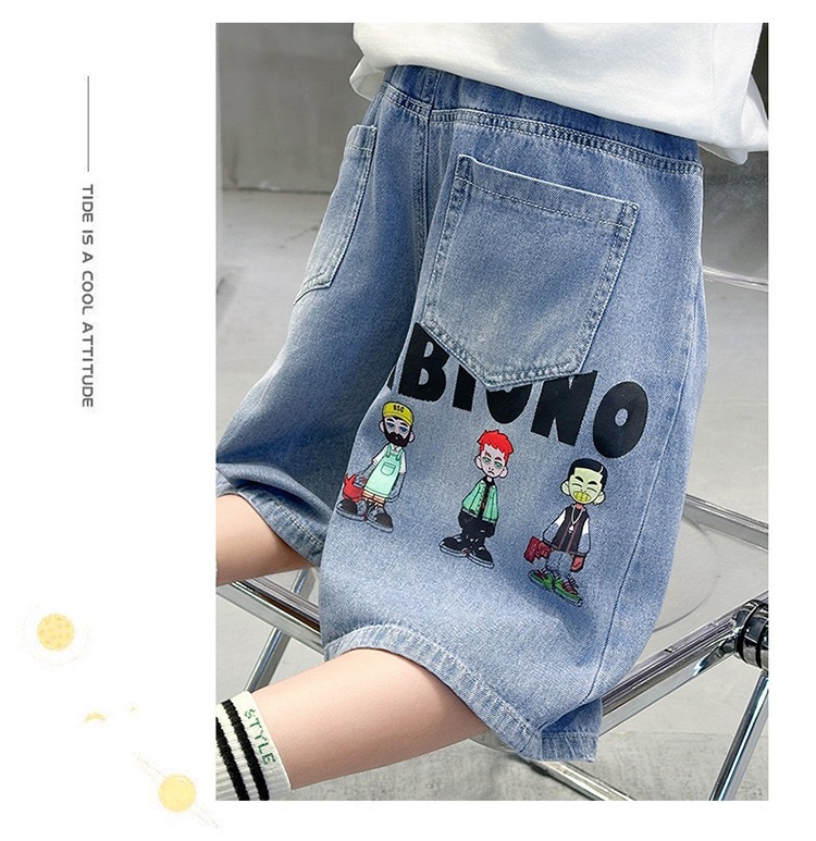소년 여름 반바지 2025 새로운 큰 어린이 여름 얇은 소년 중간 바지 어린이 데님 5 점 바지 겉옷스토어 가기