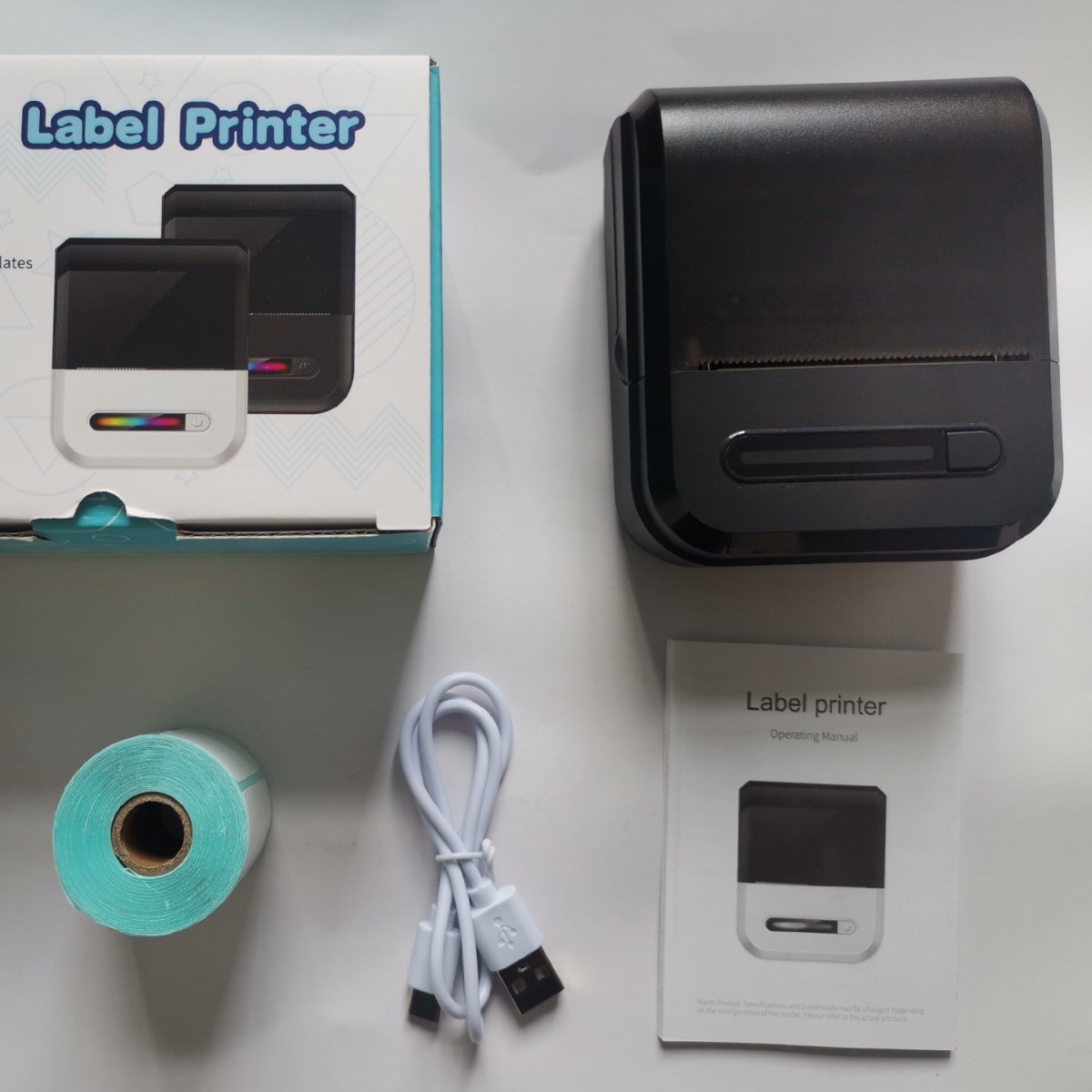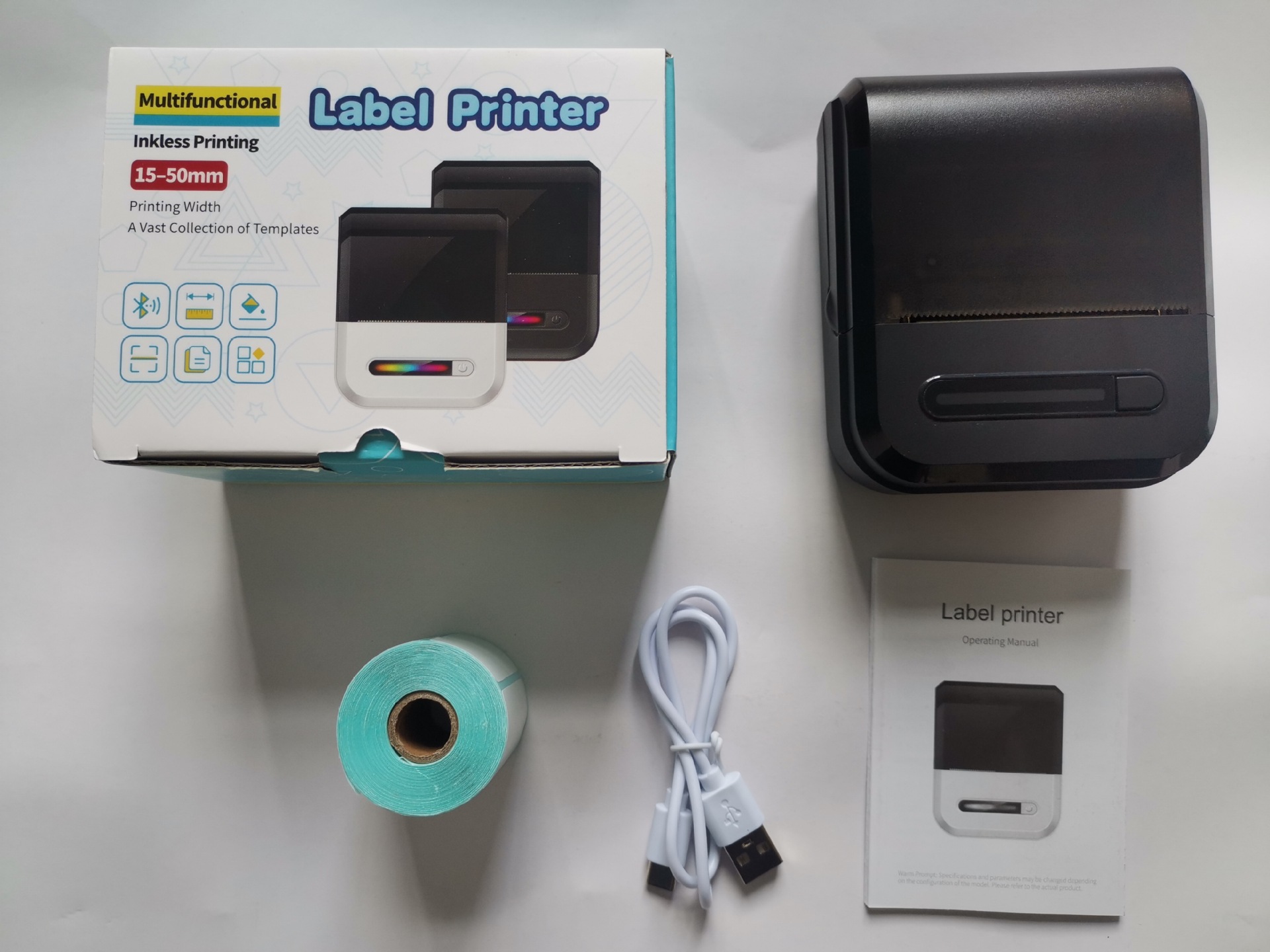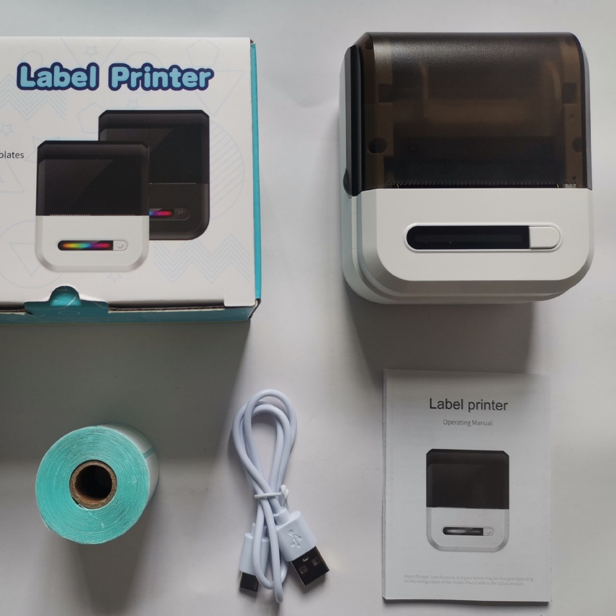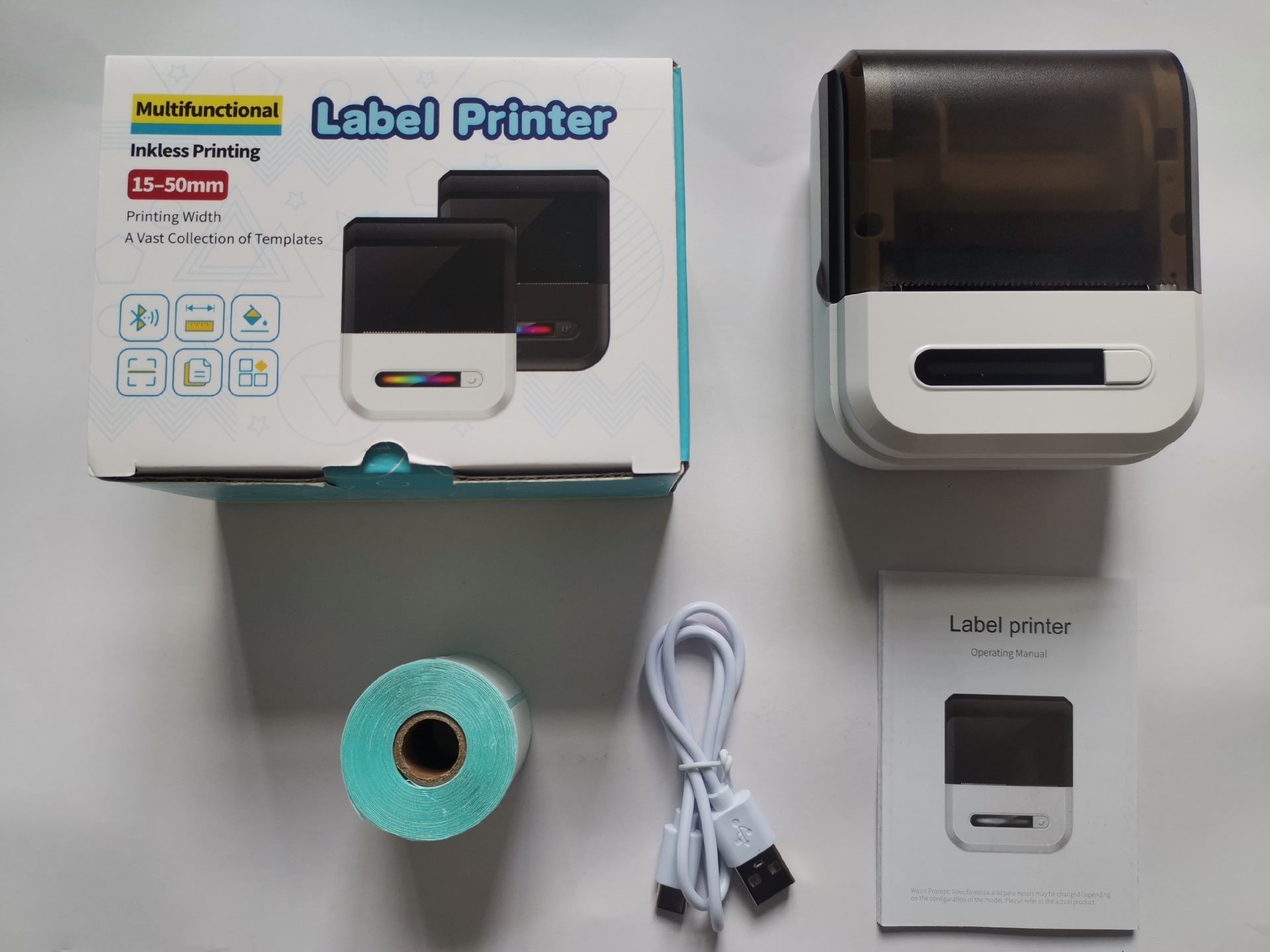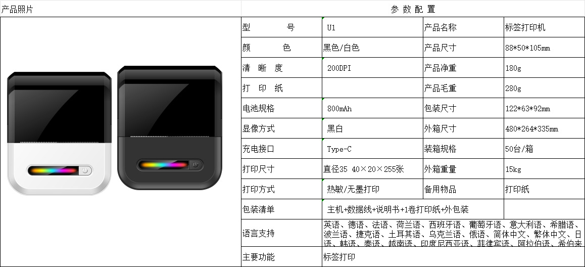 出厂标配:主机+1卷标签纸+充电线+多国语言说明书