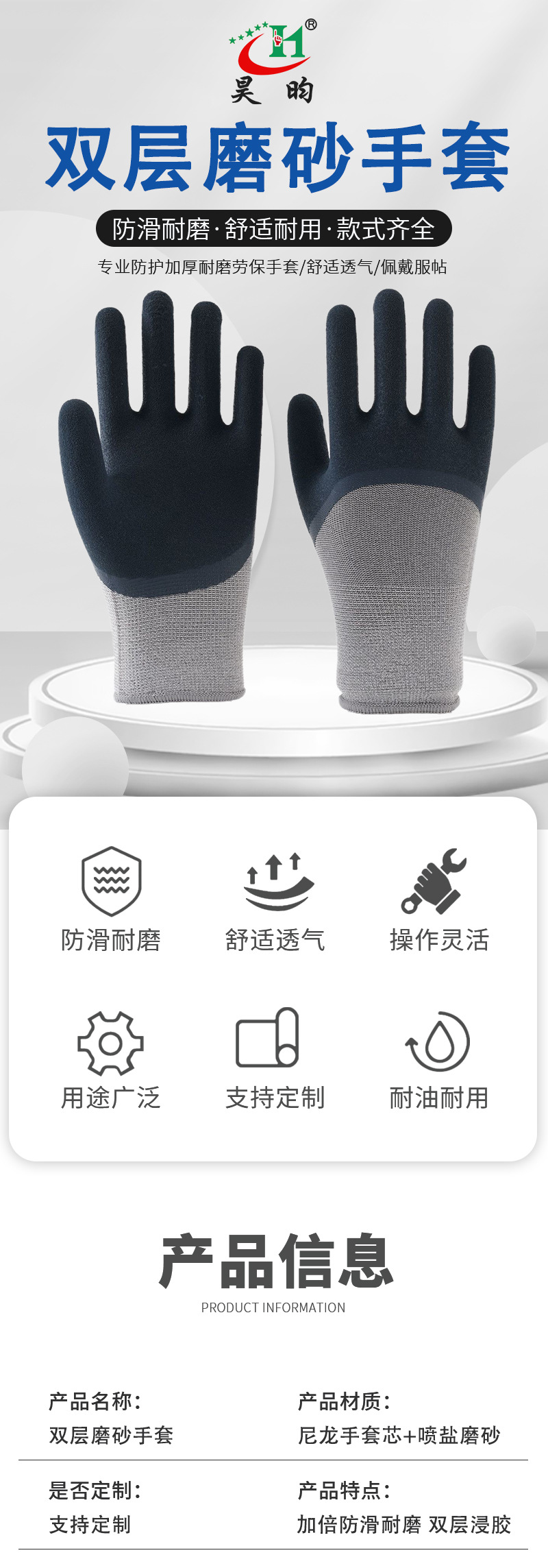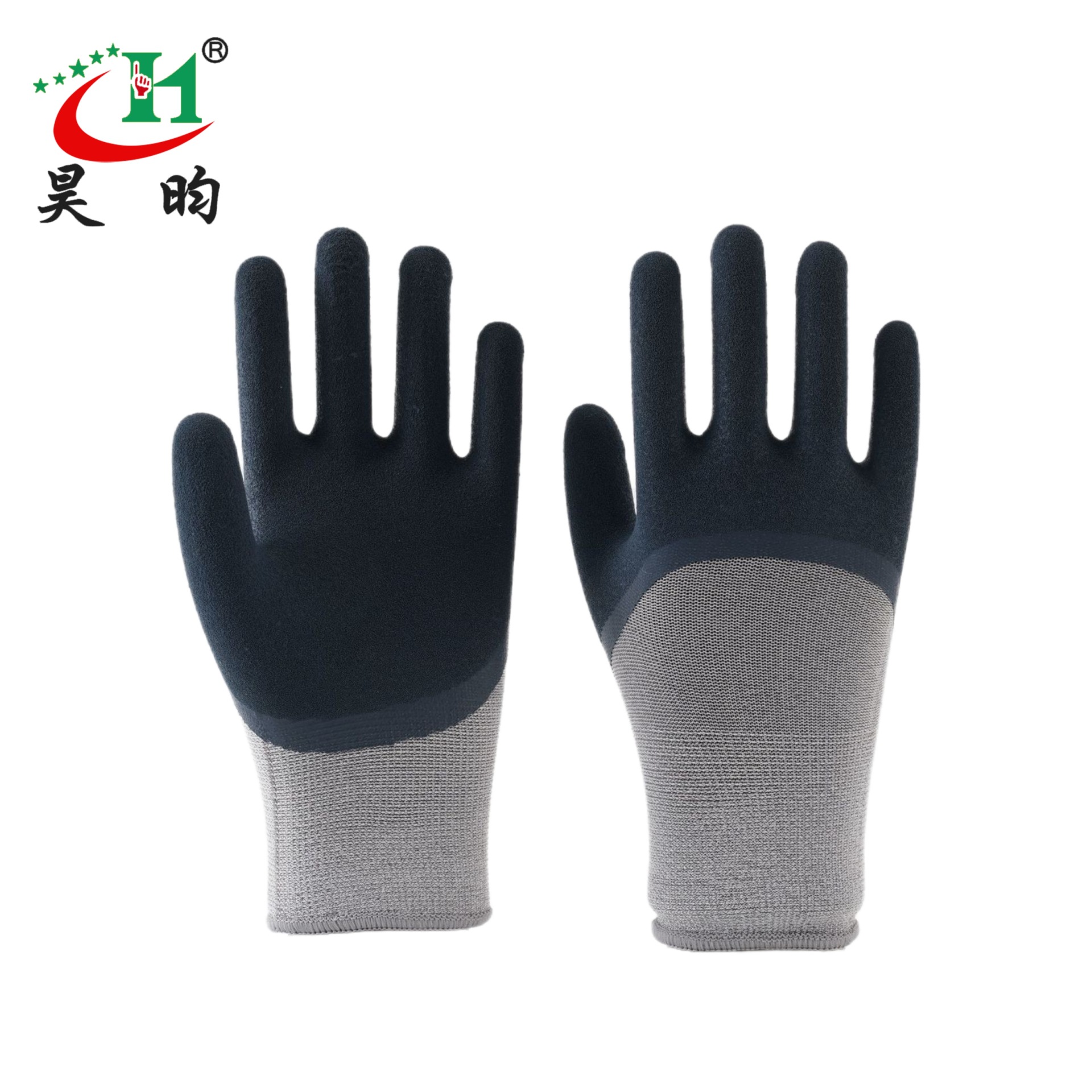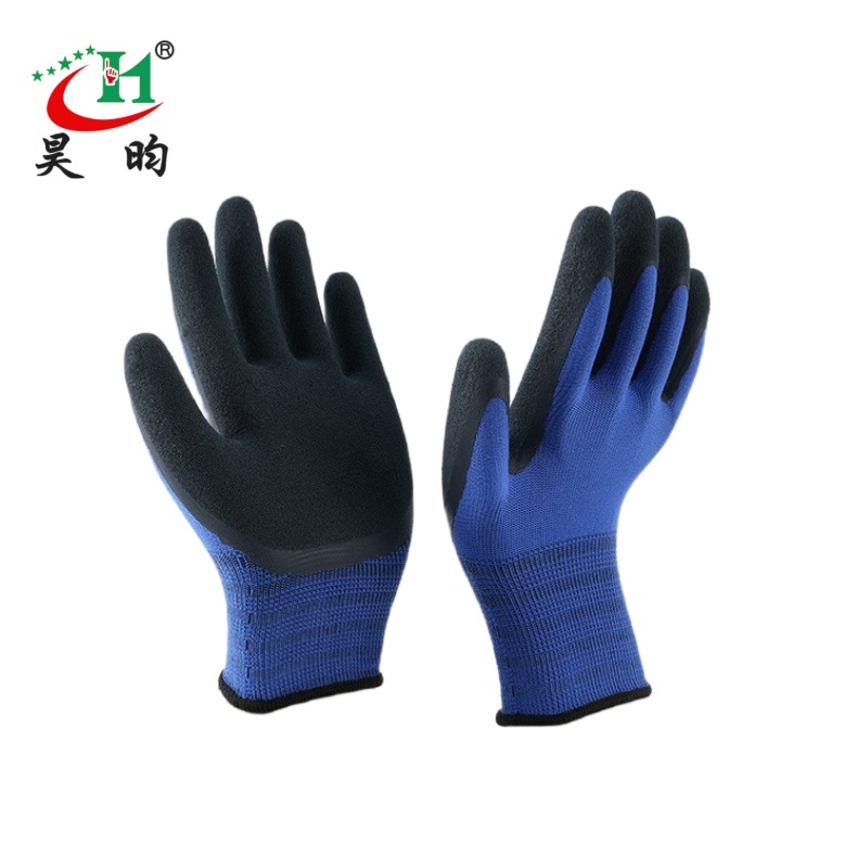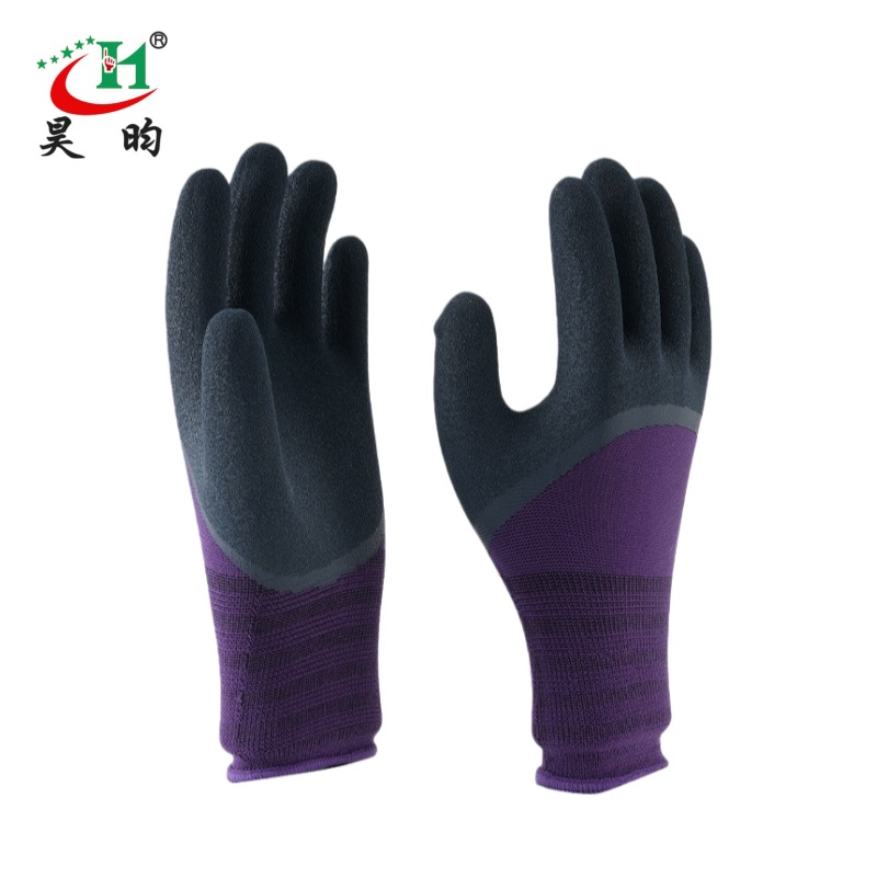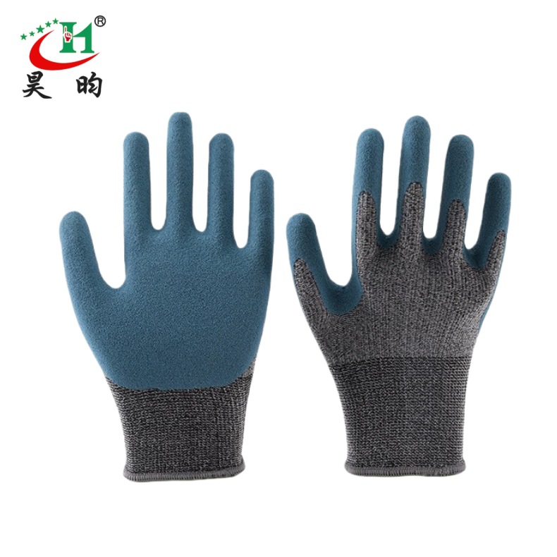 노동 보호 장갑, 소금 스프레이 처리된 무광택 이중층 고무 코팅, 미끄럼 방지, 내마모성, 부드럽고 편안한 작업용 장갑, 펑크 방지, 내구성