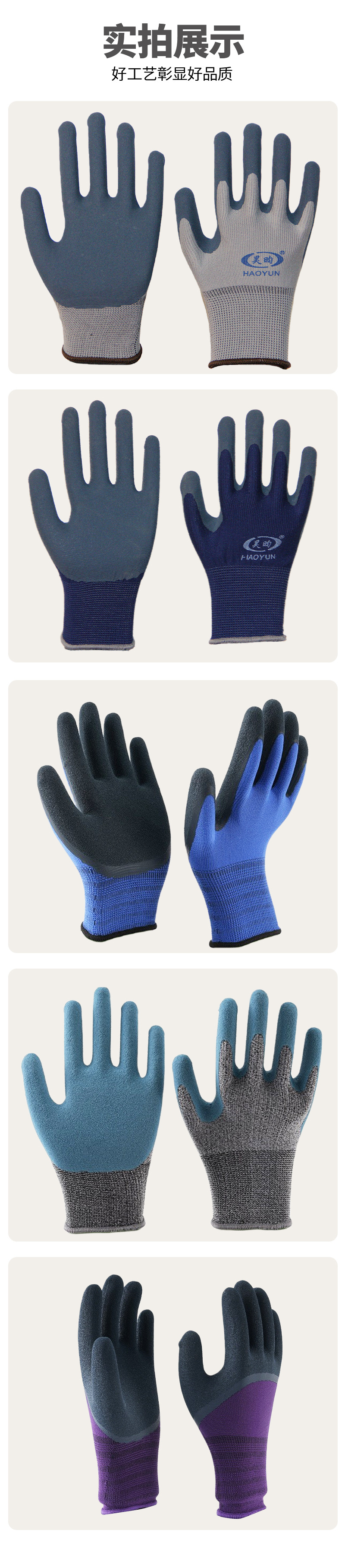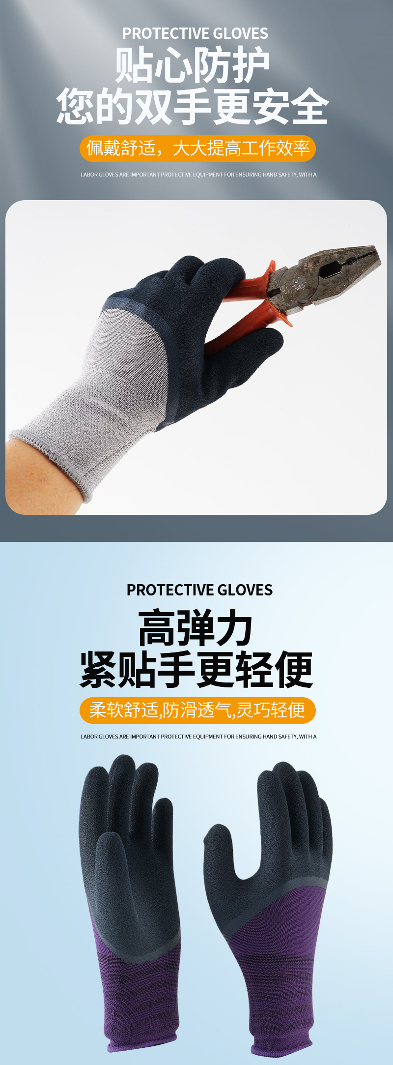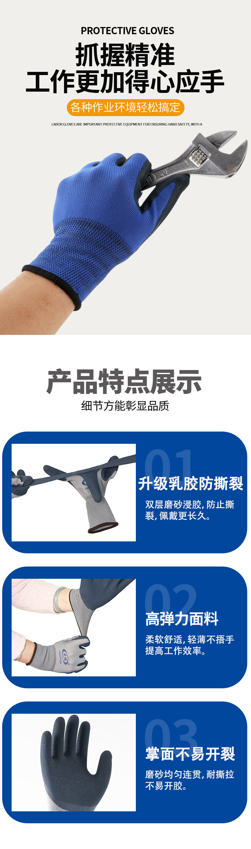 노동 보호 장갑, 소금 스프레이 처리된 무광택 이중층 고무 코팅, 미끄럼 방지, 내마모성, 부드럽고 편안한 작업용 장갑, 펑크 방지, 내구성