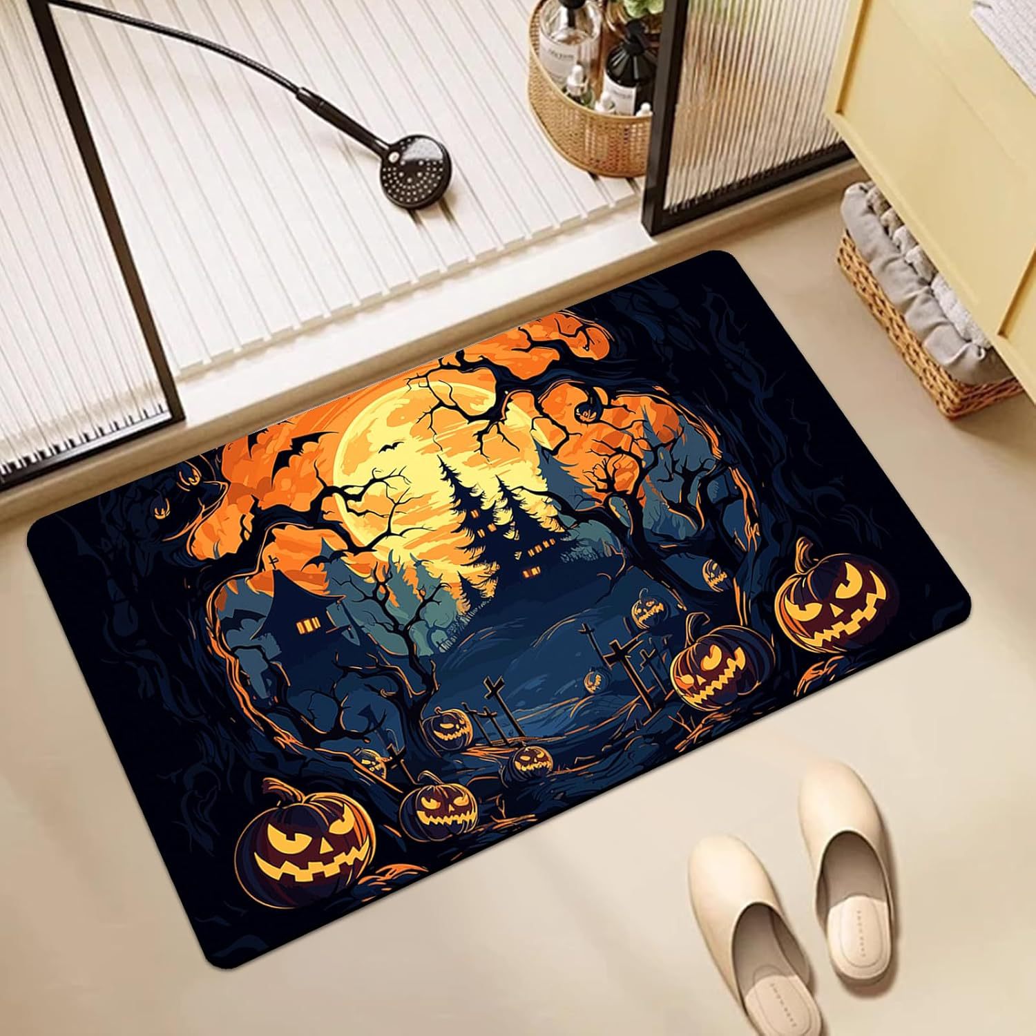 할로윈 시리즈 바닥 매트, 욕실 공포 장식 바닥 매트, 현관 문 매트, 내마모성, 먼지 방지 및 관리가 쉬운 바닥 매트스토어 가기