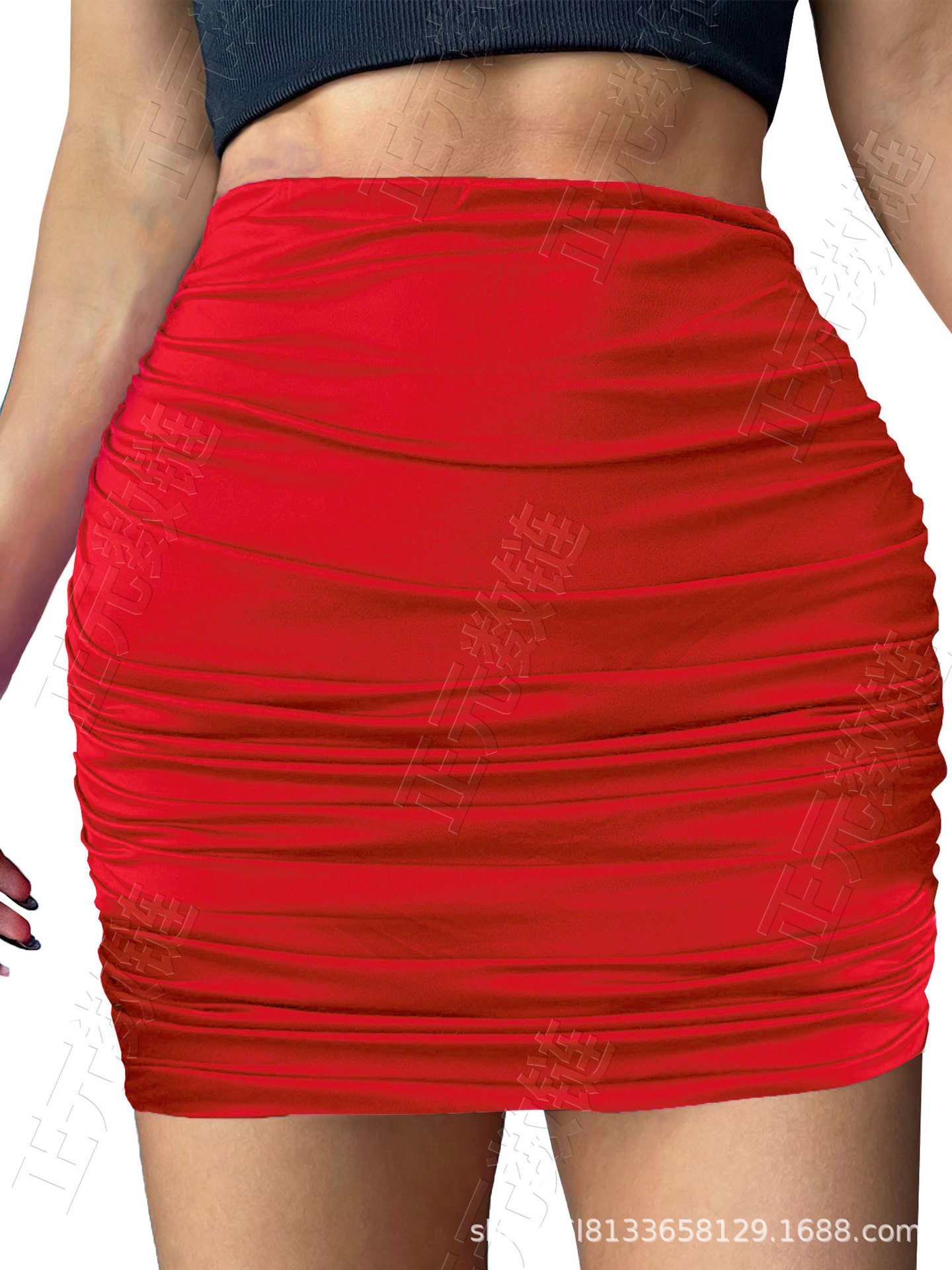 아마존 해외직구 알리익스프레스 유럽 및 미국 여성용 주름 단색 섹시 타이트 미니 스커트 섹시한 핫걸 스타일