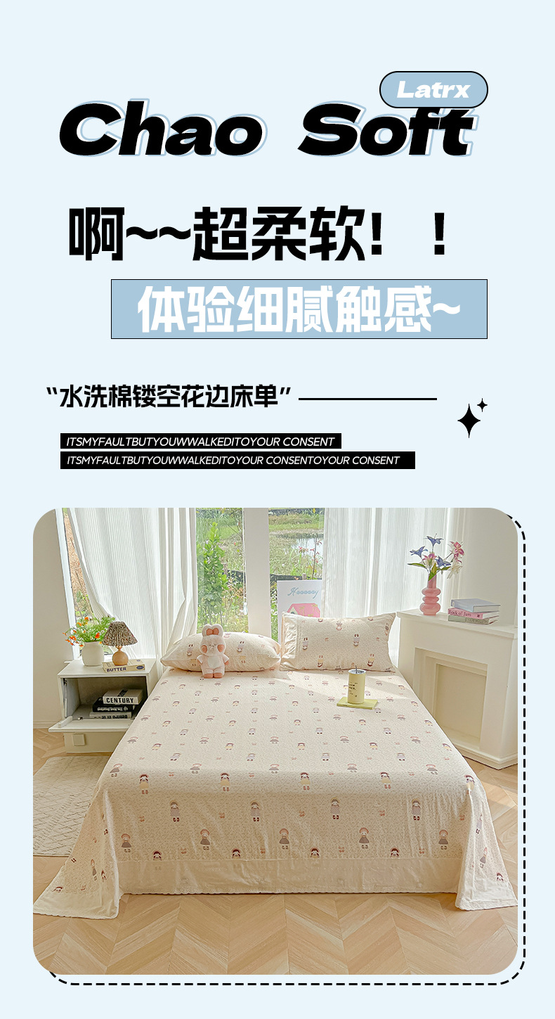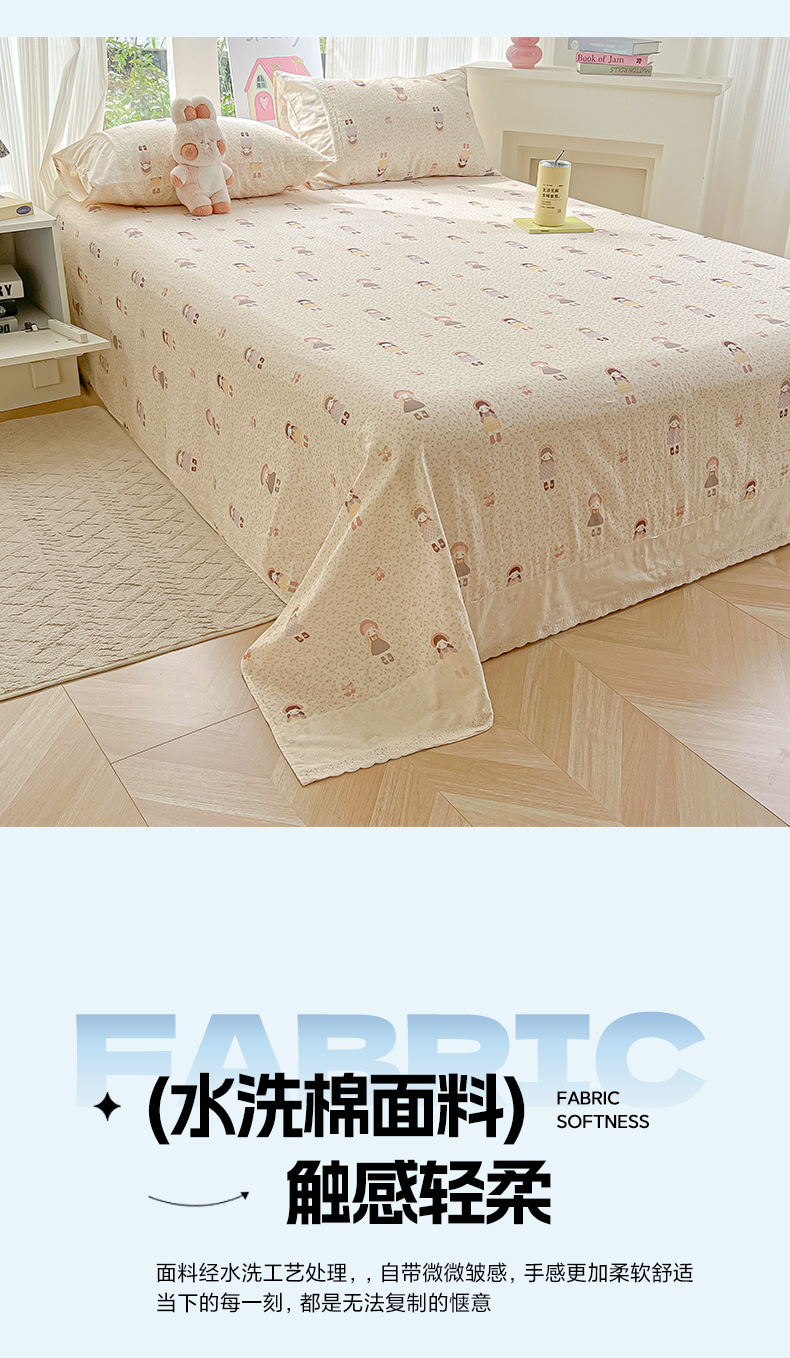 클래스 A 레이스 공주 스타일 레이스 워시 코튼 침대 시트 싱글 피스 학생 기숙사 싱글 및 더블 침대 시트 베개 커버 3 피스 세트스토어 가기