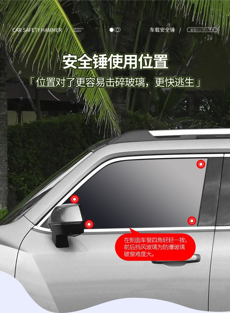【产品特点】:一锤多用安全出行、三合一多功能安全锤