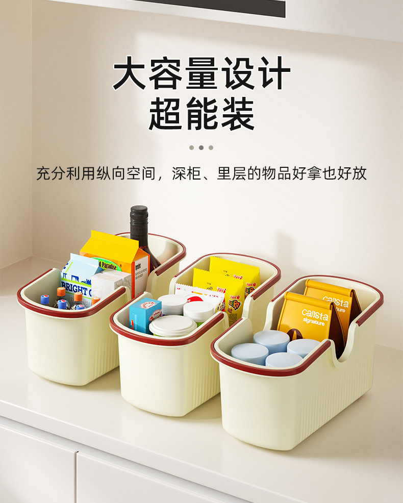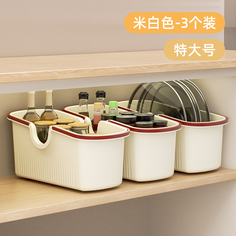 • 손잡이가 있는 초대형 냄비 보관함 바퀴 포함 [오프화이트] [3개 팩]