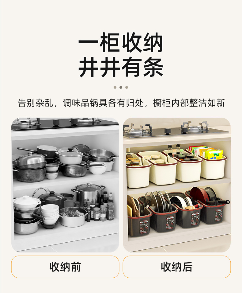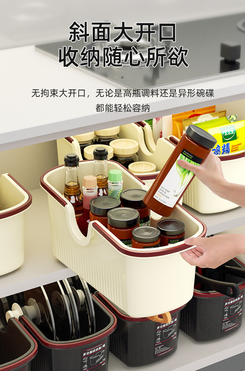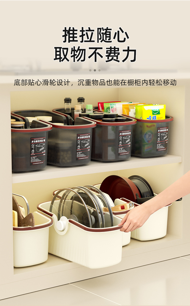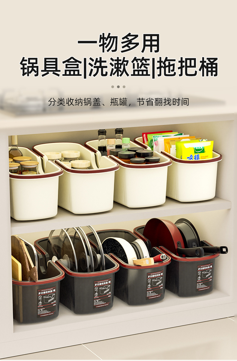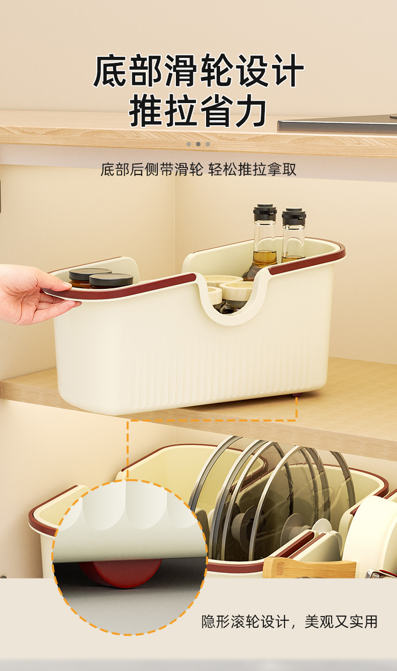 주방 냄비 보관함 냄비 뚜껑 조리기구 정리함(슬라이딩 휠 포함) 싱크대 하부 캐비닛 보관함 다기능 보관함스토어 가기