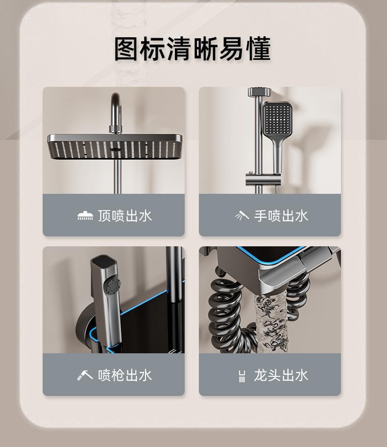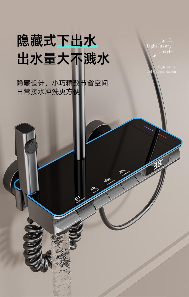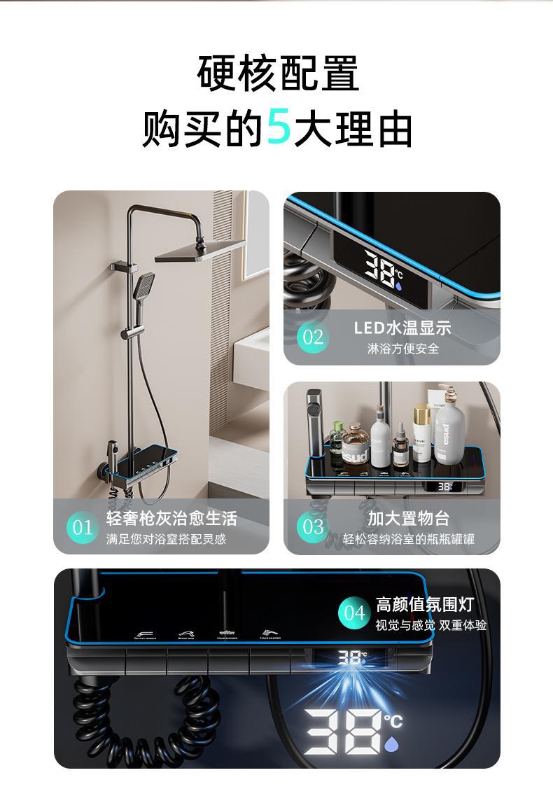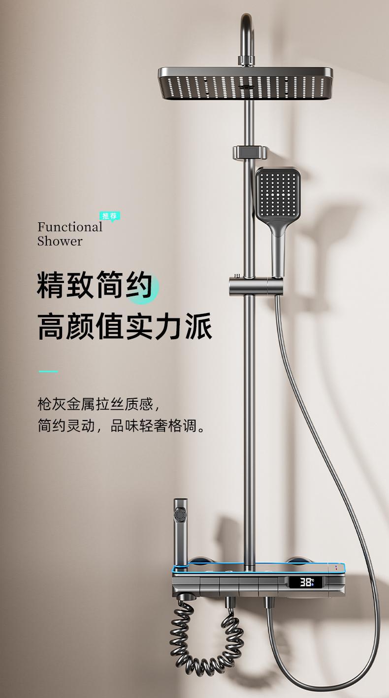 샤워 세트 전체 구리 항온 디지털 디스플레이 건 그레이 샤워 욕실 목욕 공기 부스터 샤워 가정용 샤워스토어 가기