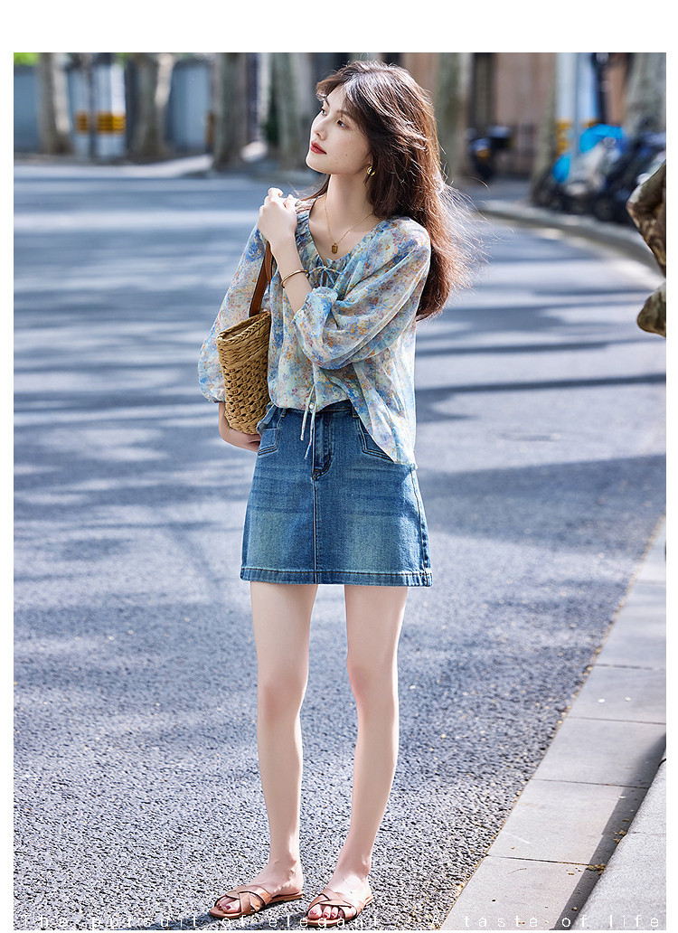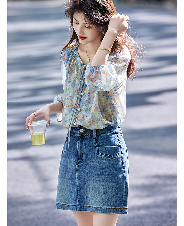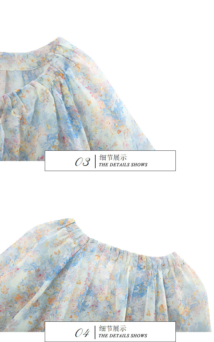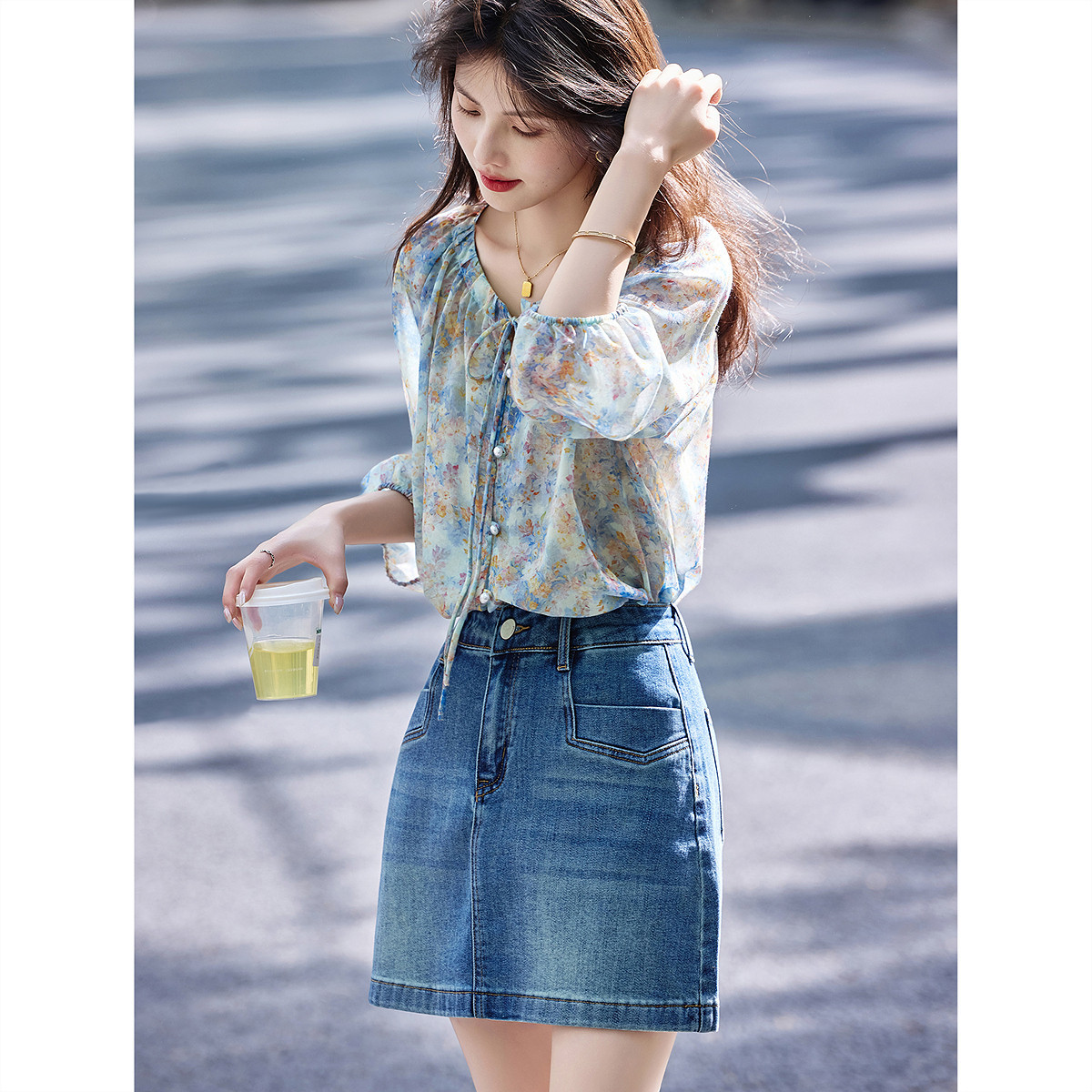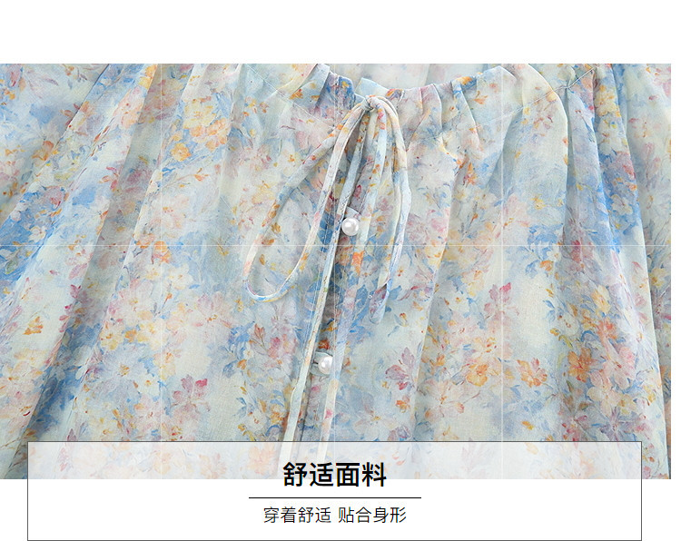 여름 느슨한 슬림 V 넥 세련된 아름다운 그늘 셔츠 최고의 프랑스 꽃 쉬폰 통근 셔츠
