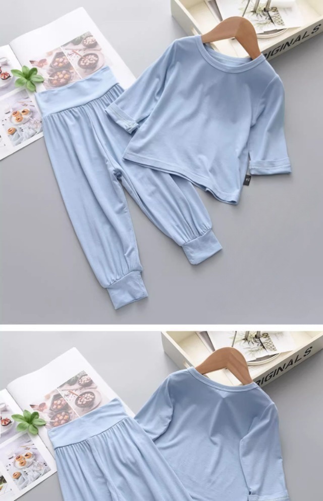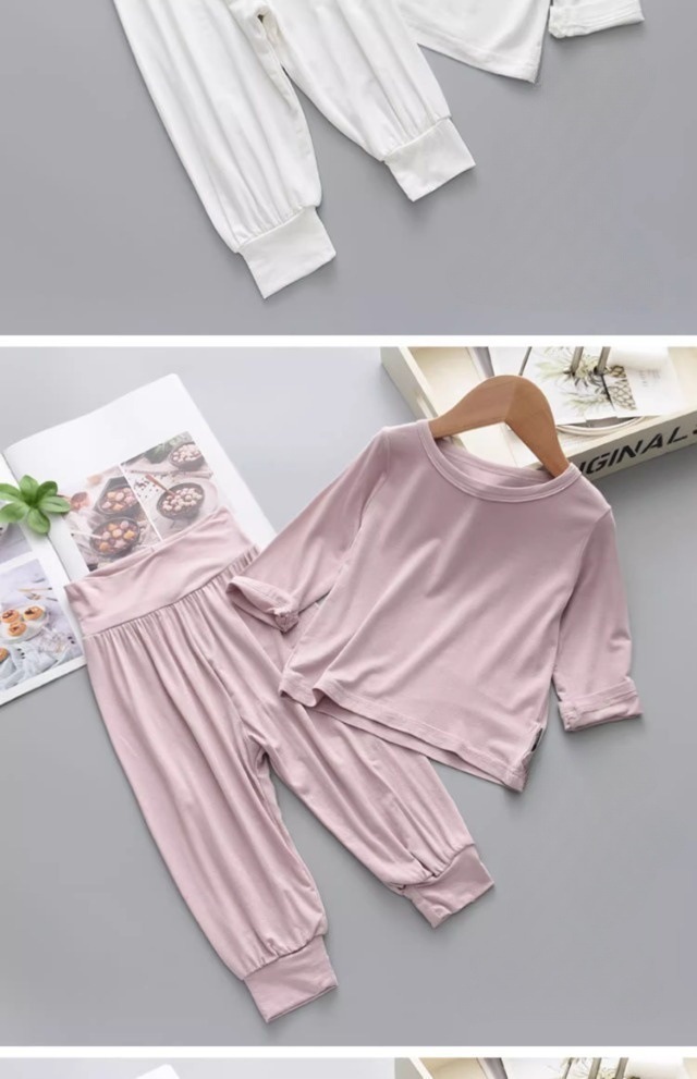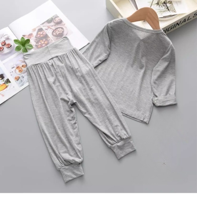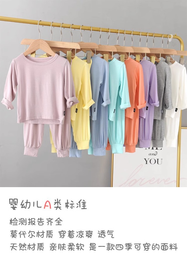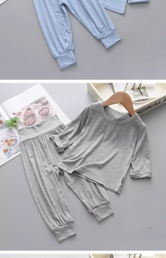 아동용 모달 잠옷, 하이웨이스트 배 보호 홈웨어, 봄, 가을 남아 및 여아용 긴팔 바지 투피스 속옷 세트스토어 가기